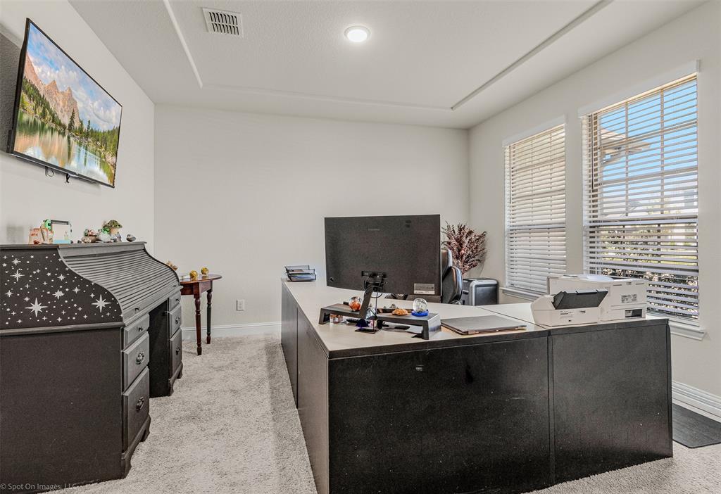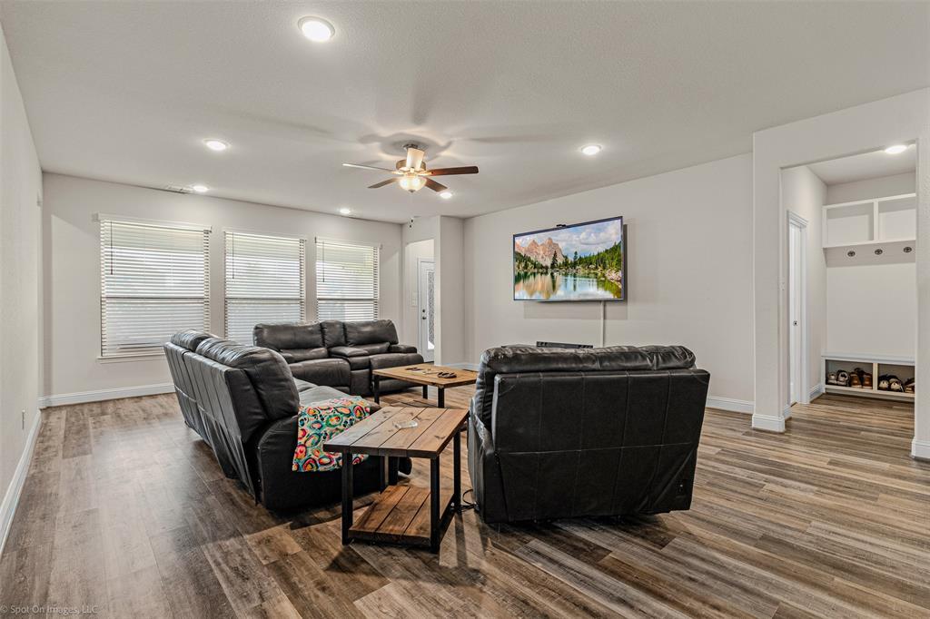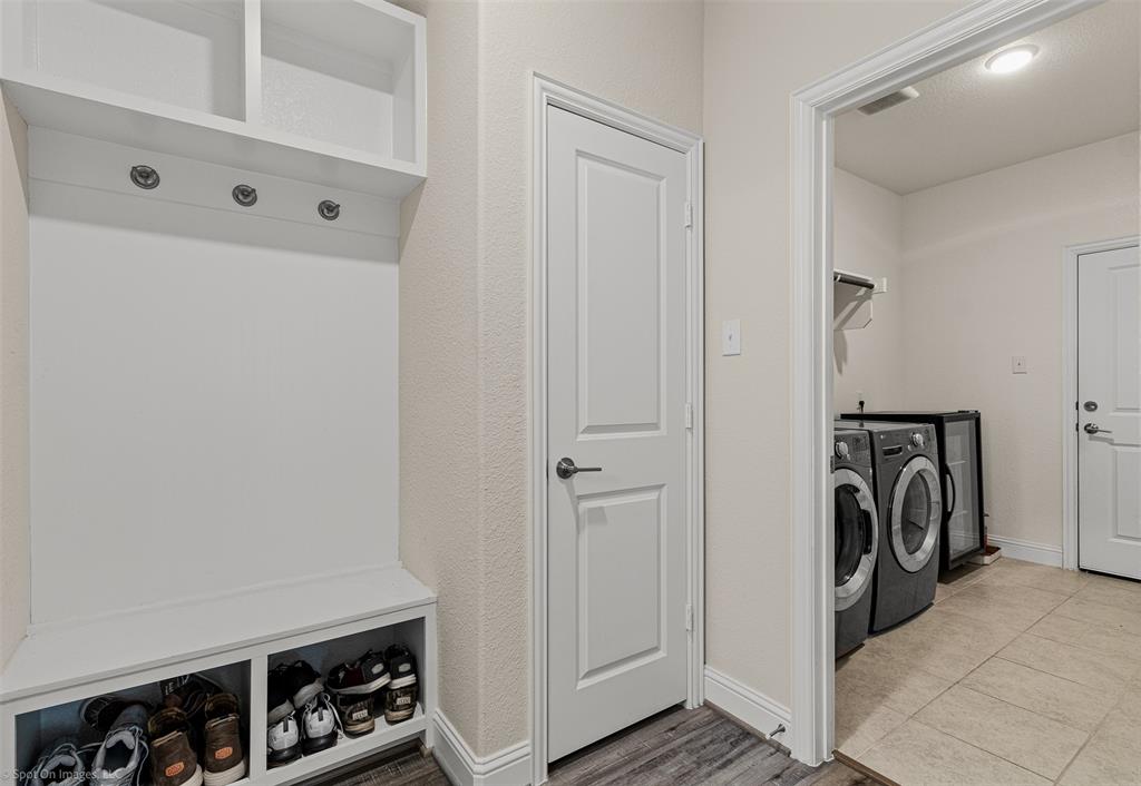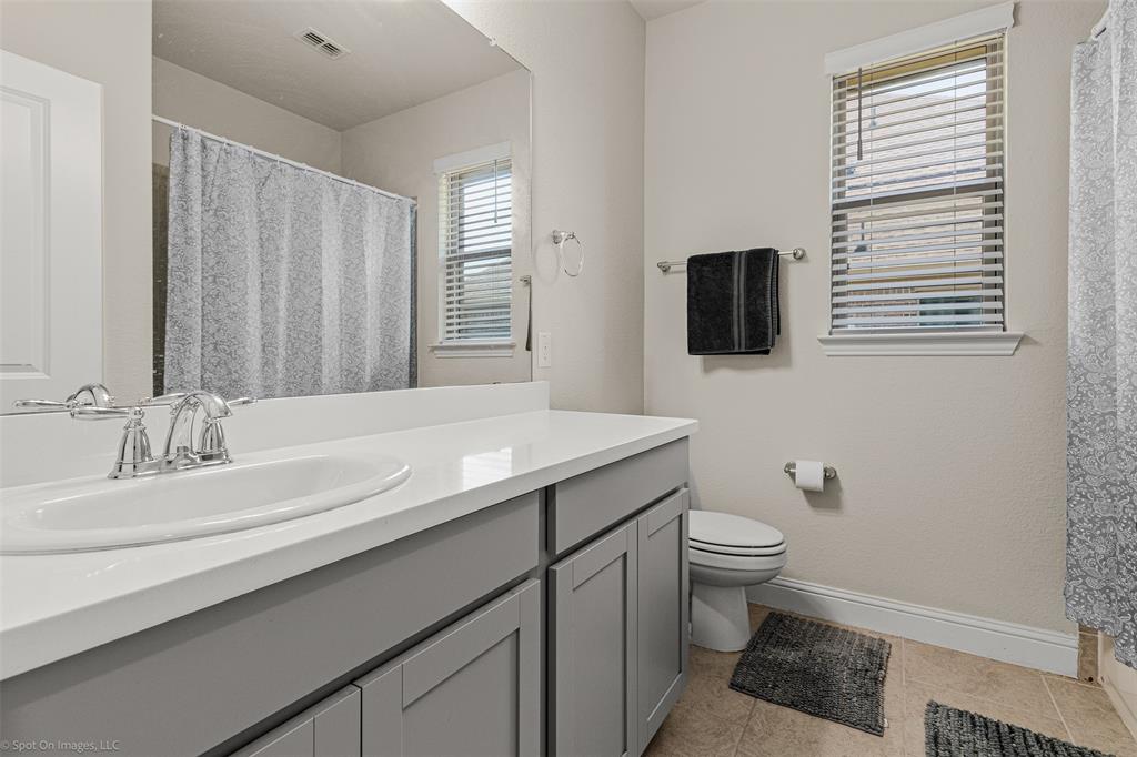 The private primary suite, tucked at the back, features two walk-in closets and a spa-like bath with soaking tub, separate shower, and dual vanities. Two additional bedrooms share a full bath in a split layout. Extras include a full-size utility room with a mud area, a powder bath for guests, and solar panels that generate surplus energy—keeping your bills very low. Just wait until you see the electric bills! Smart home devices include the Central AC Heating app, a no-touch water-saving kitchen faucet, a second full bath with a smart shower head radio, and a Tankless Water Heater.