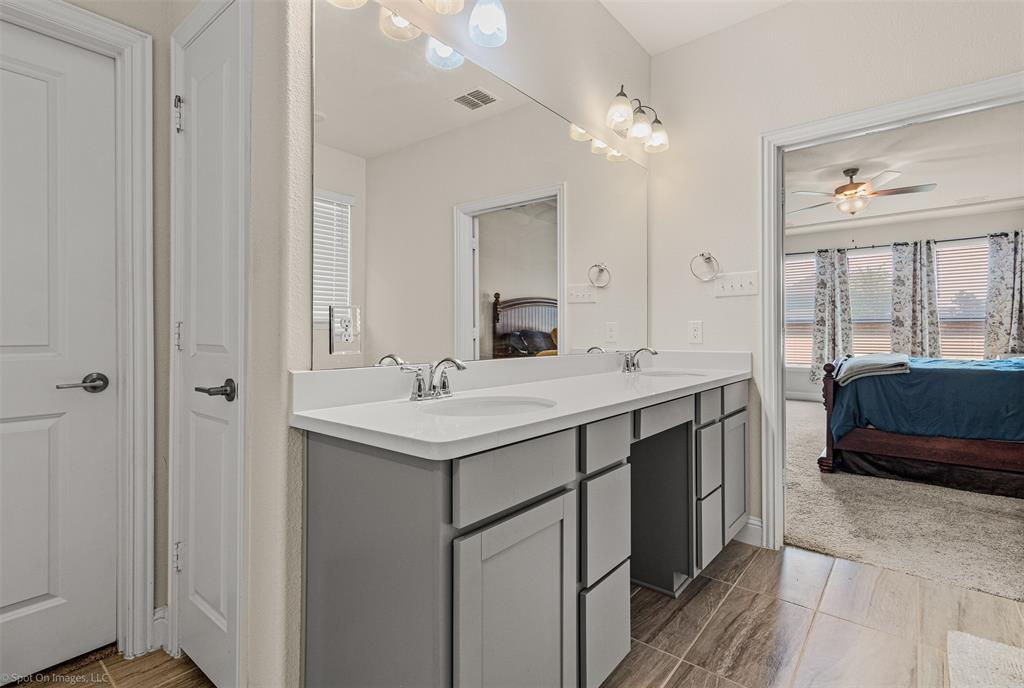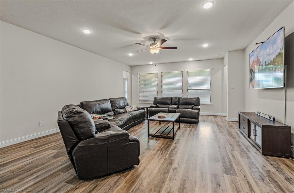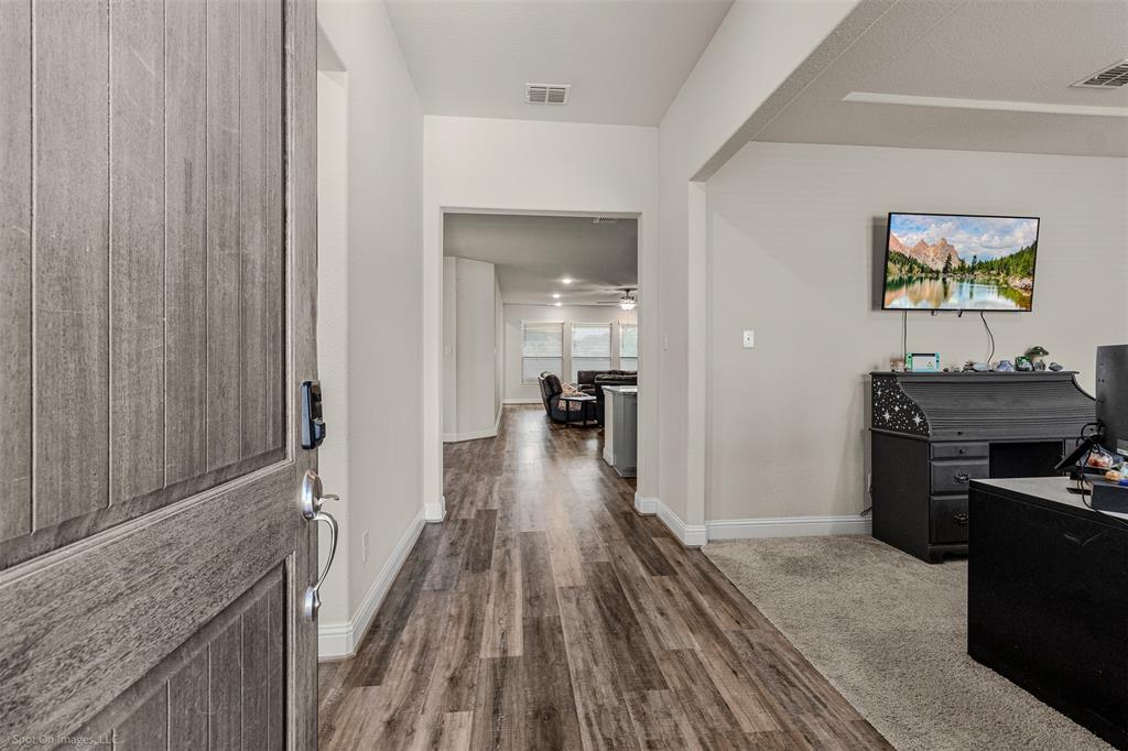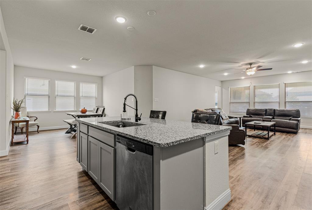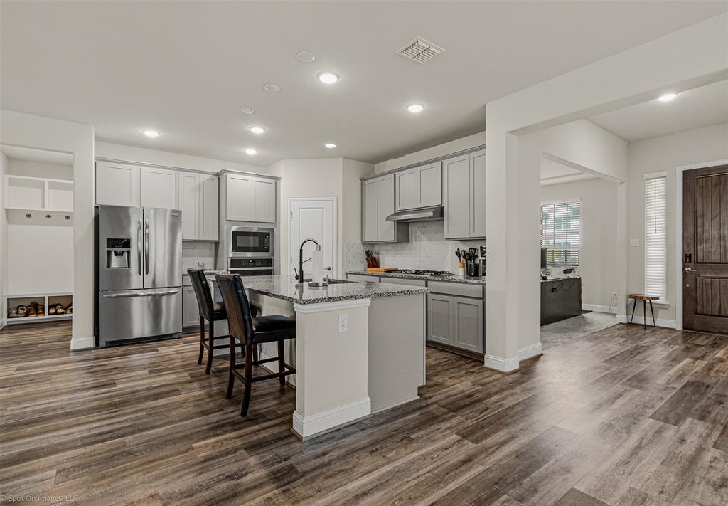 Welcome to this beautiful single-story home featuring 4 bedrooms, 3.5 baths, and a 3-car tandem garage. With the option for a secondary primary suite or in-law quarters, located close to the front door, this layout offers flexibility for modern living. Luxury vinyl plank flooring flows throughout, beginning at the welcoming foyer. At the front of the home, a bedroom with its own full bath and walk-in closet is perfect for guests or extended family. The open-concept design features a gourmet kitchen with built-in stainless steel appliances, granite countertops, and a gas cooktop, all of which open into a spacious living room ideal for gatherings.