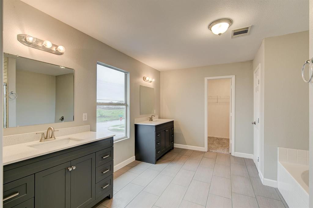 Upstairs, you’ll find four oversized bedrooms, each with walk-in closets—perfect for keeping everything organized. The primary suite is a peaceful retreat with a spa-like bathroom that includes dual vanities, a soaking tub, a stunning tile shower, and a huge walk-in closet.
