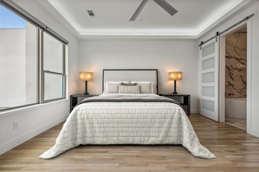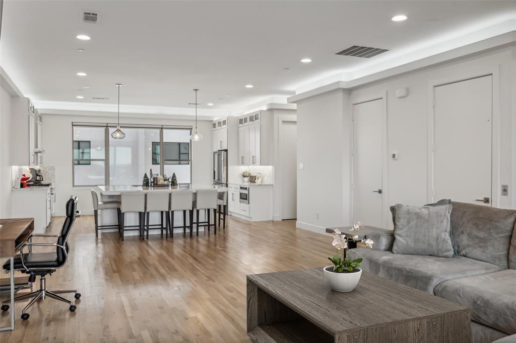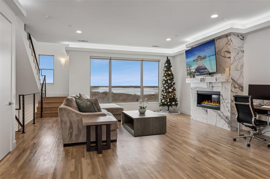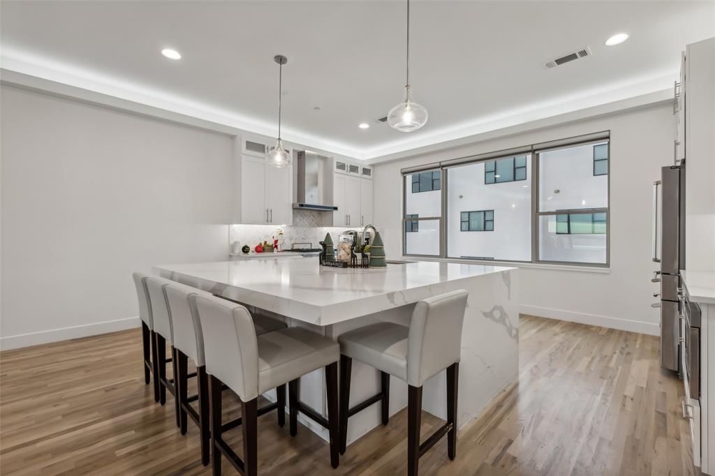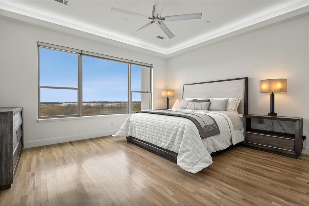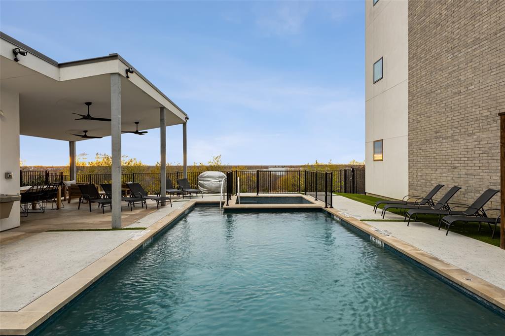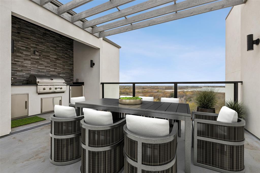 Experience unparalleled luxury and style in this stunning townhome boasting direct lake views and an impressive design. Spanning four levels, this home offers an elevator for convenient access from the ground floor to the breathtaking rooftop deck. The open-concept floorplan is bathed in natural light, enhanced by large, beautiful windows that frame picturesque views and create a bright, airy atmosphere. Each spacious bedroom features a walk-in closet and a private ensuite bathroom, offering comfort and privacy. The serene primary suite is a true retreat with a spa-like bathroom and a walk-in closet with custom built-ins. The fourth level steals the show with an expansive rooftop patio featuring a built-in outdoor kitchen, perfect for entertaining or relaxing while enjoying panoramic lake vistas. Additional highlights include a 2-car attached garage and proximity to nearby walking trails, blending convenience and outdoor living. Relax & unwind at the community pool. Don’t miss this rare opportunity to call this extraordinary property HOME!
