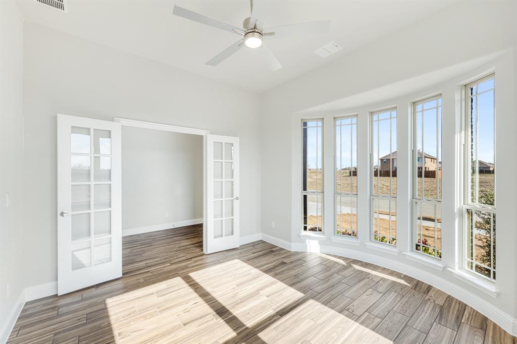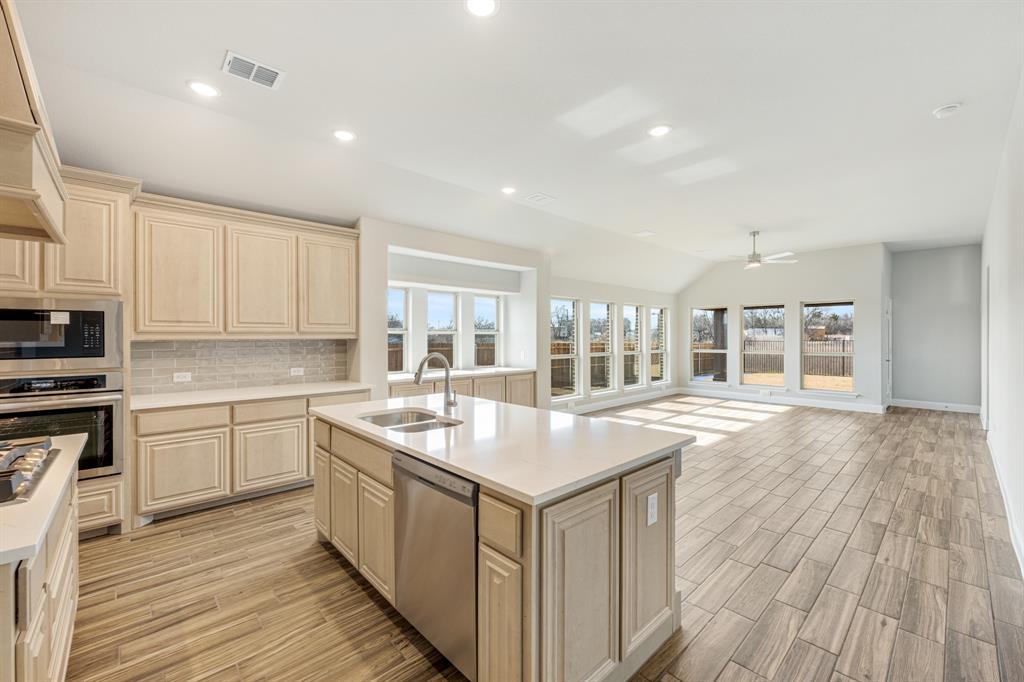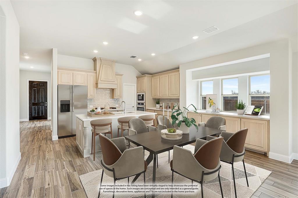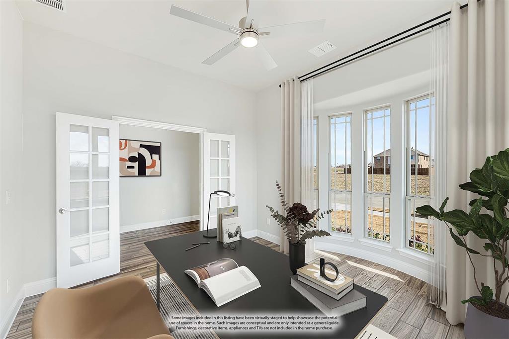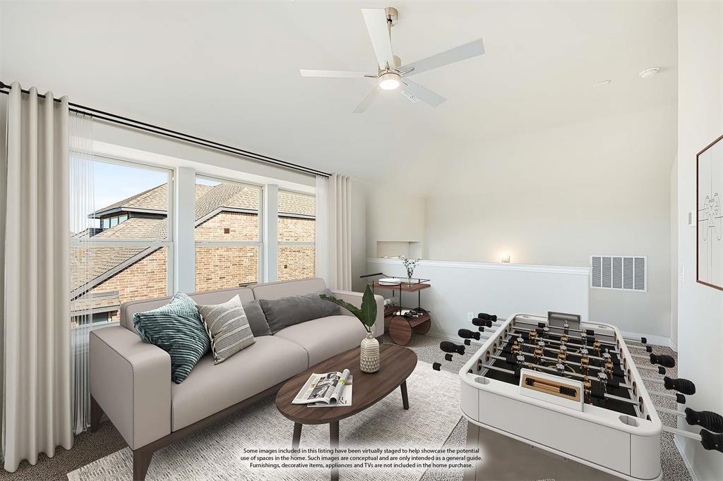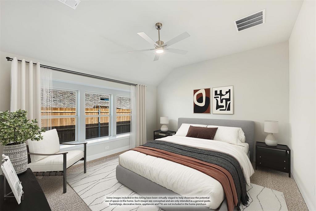 *$10K on Closing Costs + Price Reductions.* NEW & NEVER LIVED IN! Ready NOW! A luxurious 1.5-story home that seamlessly blends craftsmanship and elegance with 4 bedrooms and 3 baths, perfectly situated on an oversized corner lot with a serene interior creek view and greenbelt access. Enter through the striking 8' front door to discover wood-look tile flooring flowing through the main living areas, complementing the thoughtfully designed layout. The Family Room opens to a Deluxe Kitchen featuring custom cabinetry, upgraded finishes, pot and pan drawers, a wood vent hood, and Granite and Quartz countertops, while the buffet at the Breakfast Nook enhances functionality. An inviting Study with a bay window and window seats adds a touch of sophistication, while the main bathroom pampers with an oversized shower and upgraded finishes. Outdoor living is elevated with an extended patio, uplights, and metal fencing for added privacy, making this home an entertainer's dream. Upstairs, the Game Room with a private bedroom and full bath offers a versatile retreat, perfect for guests or growing families. Enhanced by a tankless water heater and an enviable private street location, this Bloomfield home at Sable Creek is a true masterpiece.