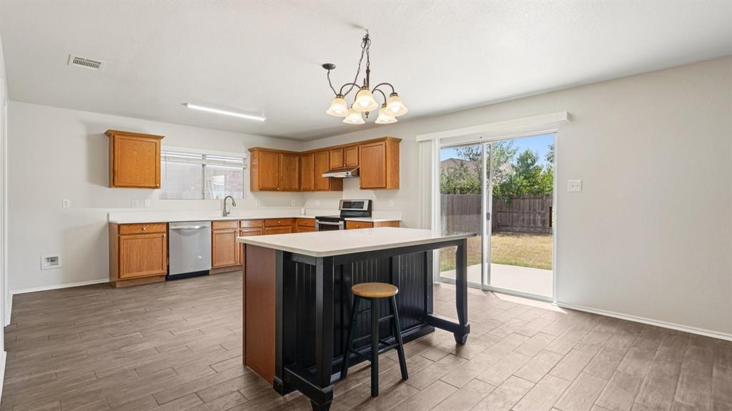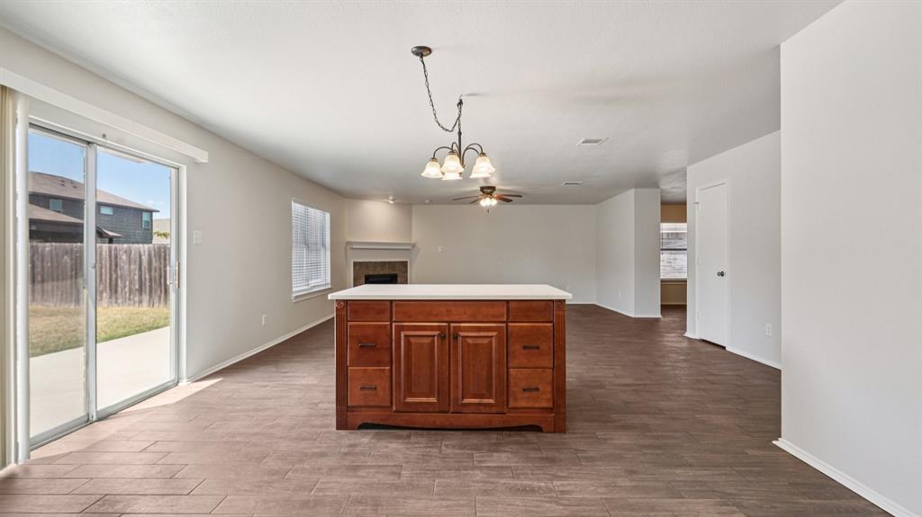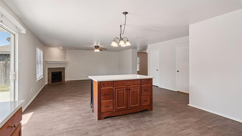 Inside, you'll find a spacious main living area with an open layout, a cozy wood-burning fireplace, and large windows that let in plenty of natural light. The eat-in kitchen includes a central island with seating and flows seamlessly into the living room—ideal for both everyday living and entertaining.