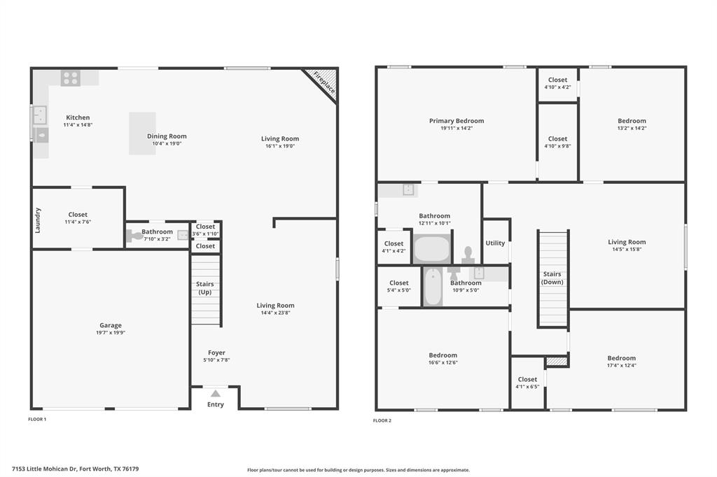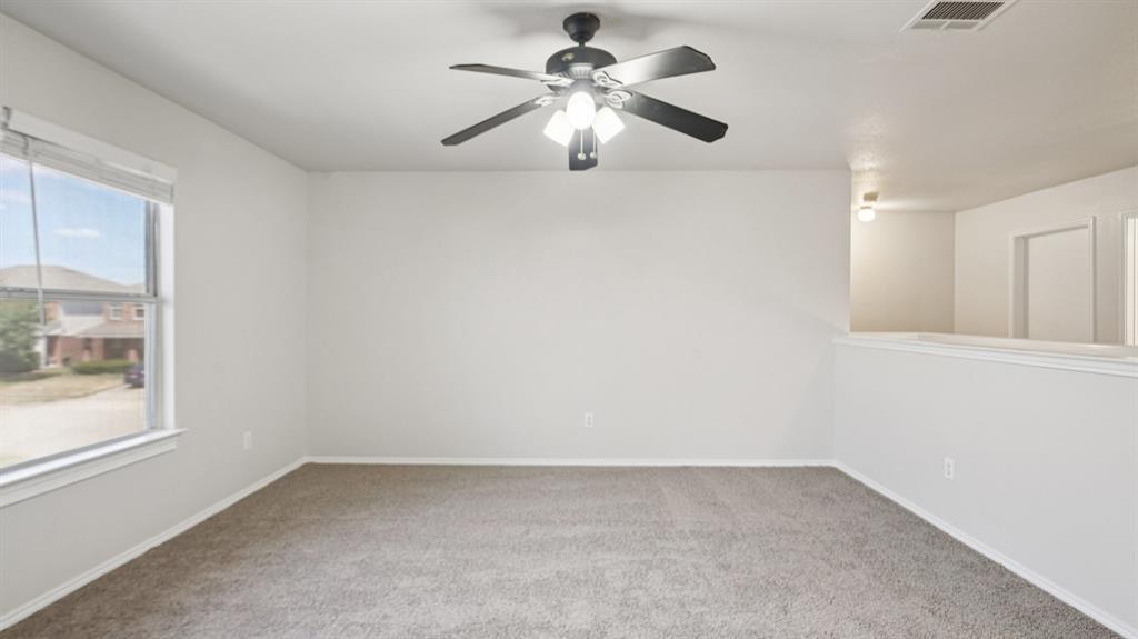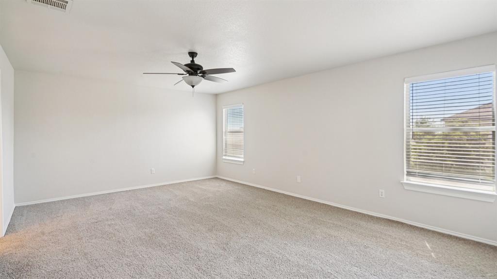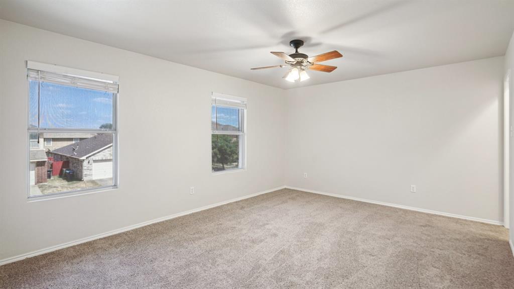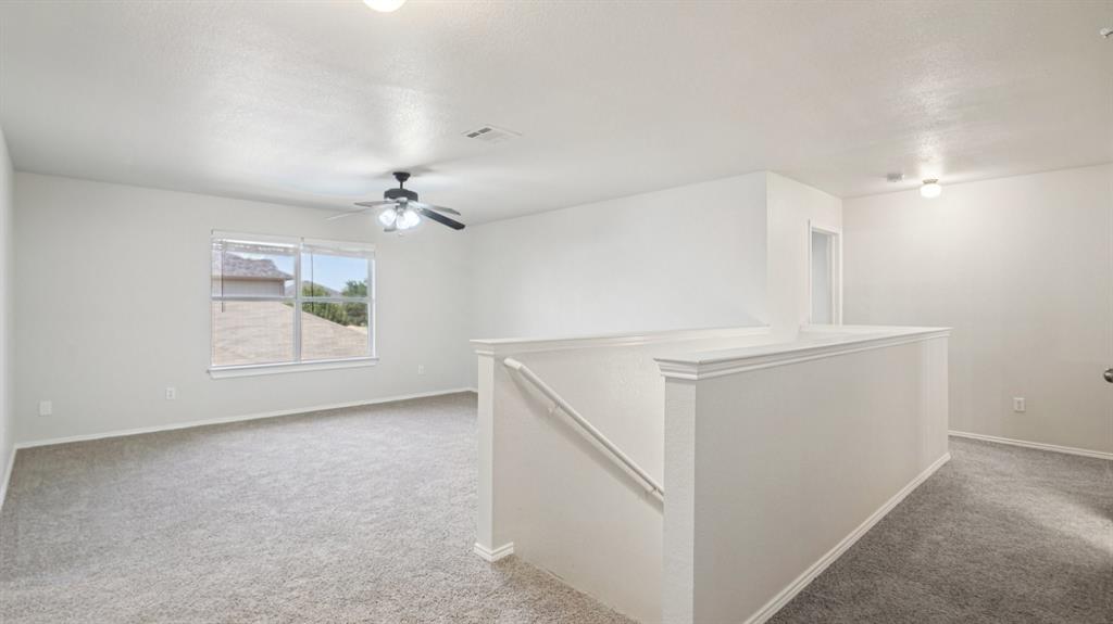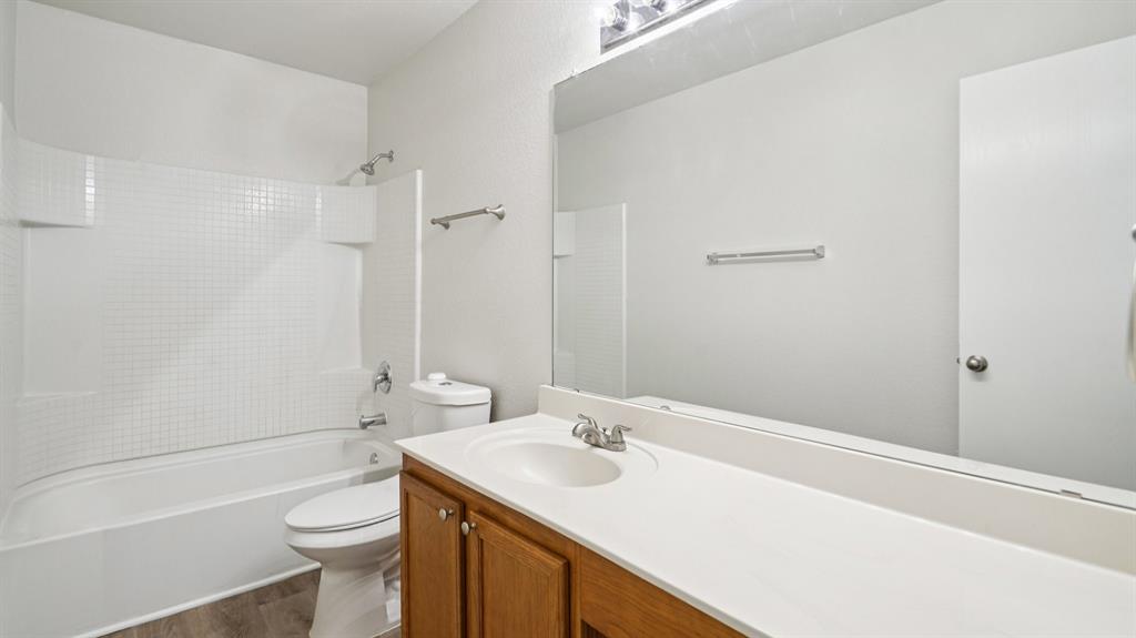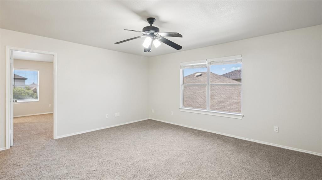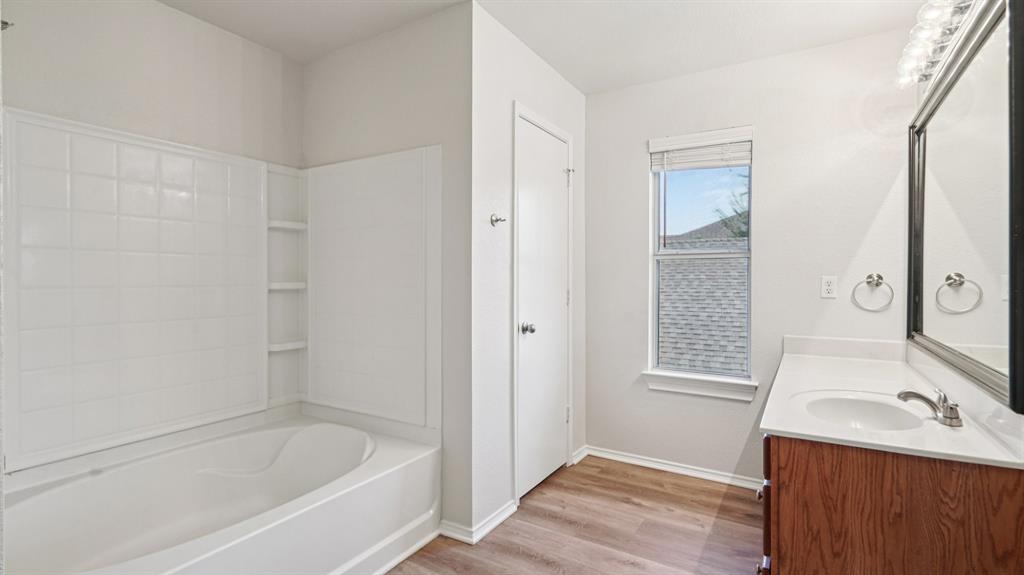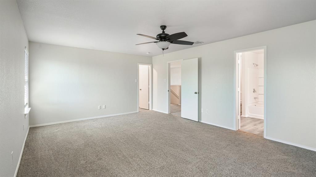 Upstairs, all bedrooms offer walk-in closets, and a versatile loft space adds flexibility for a home office, playroom, or reading nook. The primary suite features a walk-in closet and a private bath with a garden tub and vanity area.