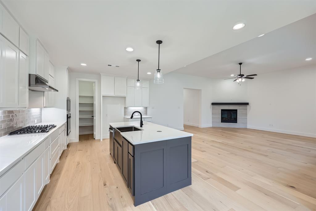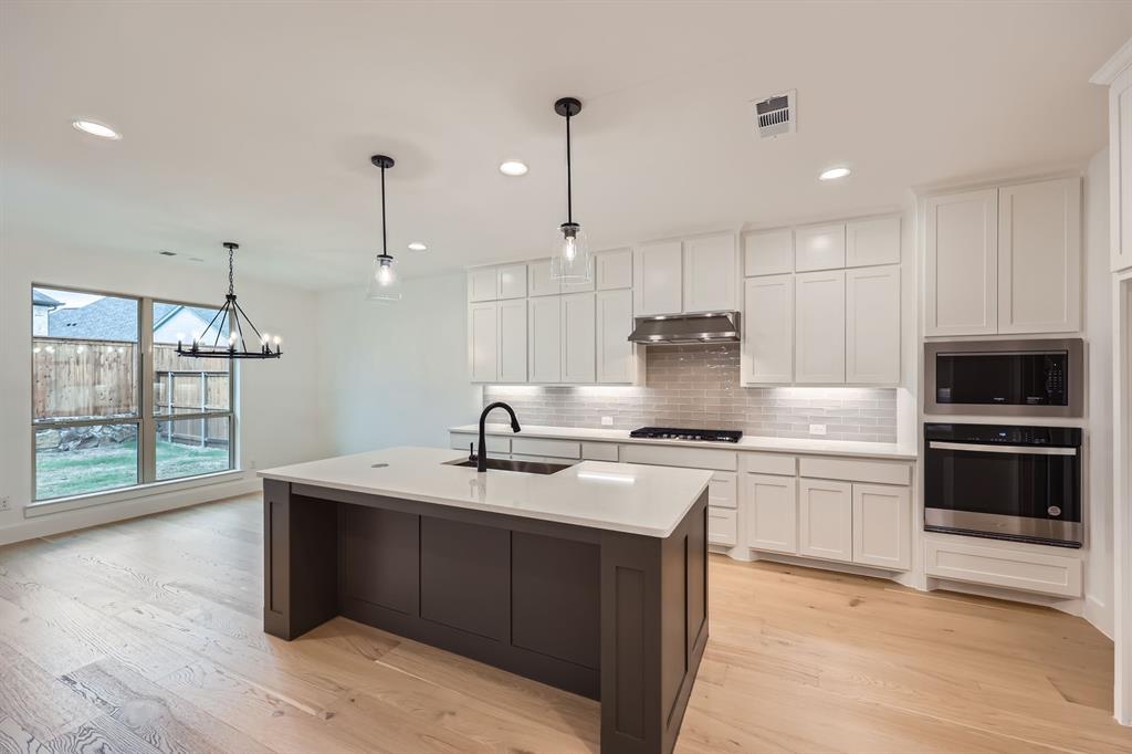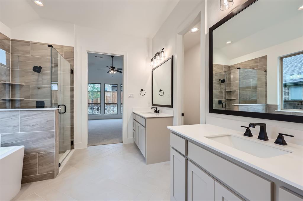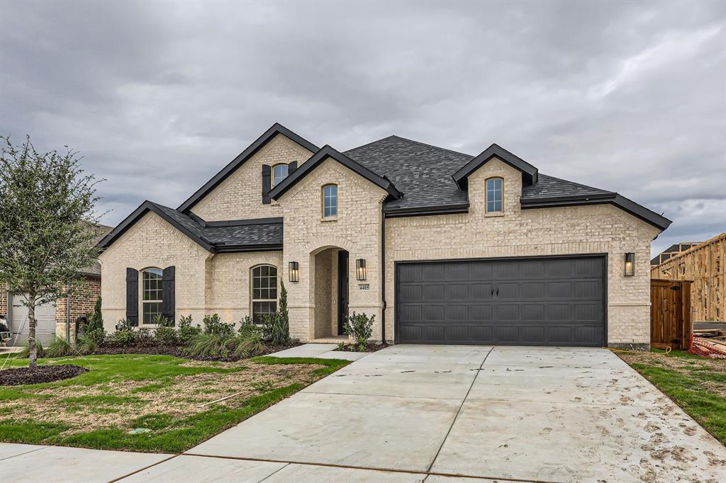 This beautiful 1-story home offers 2,692 square feet of thoughtfully designed living space, featuring 4 spacious bedrooms, 3.5 baths, a private office, and a 2-car garage. The expansive family room is highlighted by soaring ceilings and a cozy gas fireplace, creating a welcoming space for family gatherings and relaxation. The gourmet kitchen is both functional and stylish, equipped with extended upper cabinetry, a gas cooktop, and a walk-in pantry, providing ample storage and counter space for cooking and entertaining. The main bath serves as a luxurious retreat, complete with split vanities, a freestanding tub, and a spacious walk-in shower, creating a serene environment for unwinding. The home’s exterior showcases a popular light cream brick paired with black trim, offering an attractive, timeless design that complements the surrounding landscape. Located on a 60-foot lot, this home is just a few blocks away from community amenities, providing easy access to parks, schools, and nearby conveniences. With its open layout, high-quality finishes, and a design that emphasizes both comfort and style, this home is perfect for those seeking a move-in ready property in a well-established neighborhood that offers both privacy and community connections.