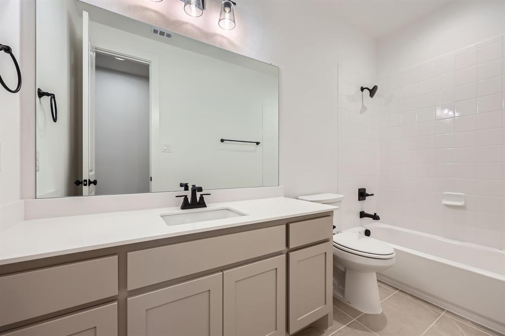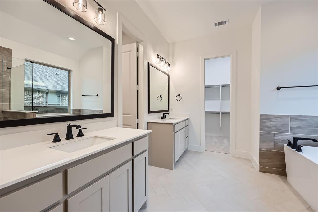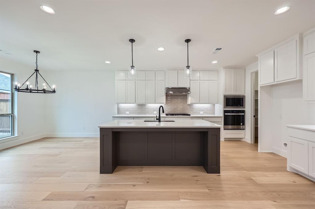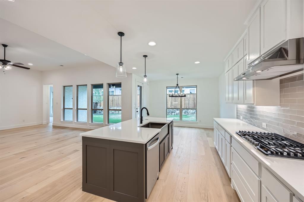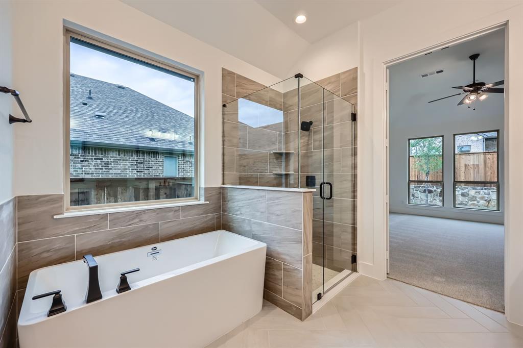 This beautiful 1-story home offers 2,692 square feet of thoughtfully designed living space, featuring 4 spacious bedrooms, 3.5 baths, a private office, and a 2-car garage. The expansive family room is highlighted by soaring ceilings and a cozy gas fireplace, creating a welcoming space for family gatherings and relaxation. The gourmet kitchen is both functional and stylish, equipped with extended upper cabinetry, a gas cooktop, and a walk-in pantry, providing ample storage and counter space for cooking and entertaining. The main bath serves as a luxurious retreat, complete with split vanities, a freestanding tub, and a spacious walk-in shower, creating a serene environment for unwinding. The home’s exterior showcases a popular light cream brick paired with black trim, offering an attractive, timeless design that complements the surrounding landscape. Located on a 60-foot lot, this home is just a few blocks away from community amenities, providing easy access to parks, schools, and nearby conveniences. With its open layout, high-quality finishes, and a design that emphasizes both comfort and style, this home is perfect for those seeking a move-in ready property in a well-established neighborhood that offers both privacy and community connections.