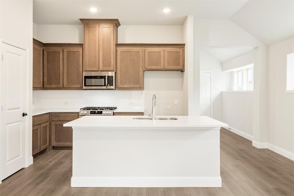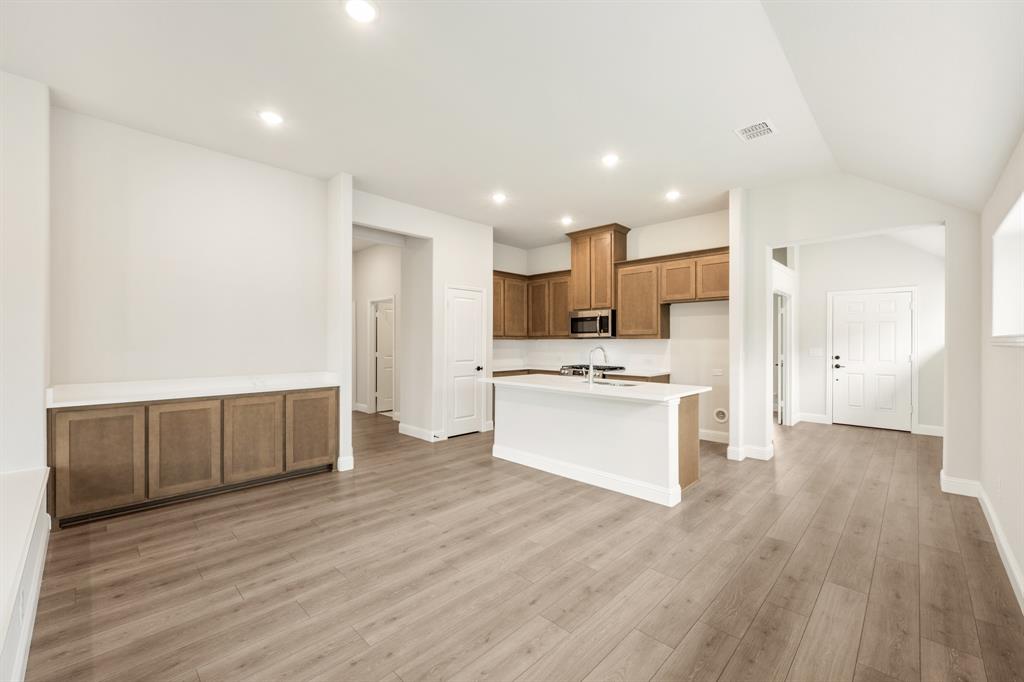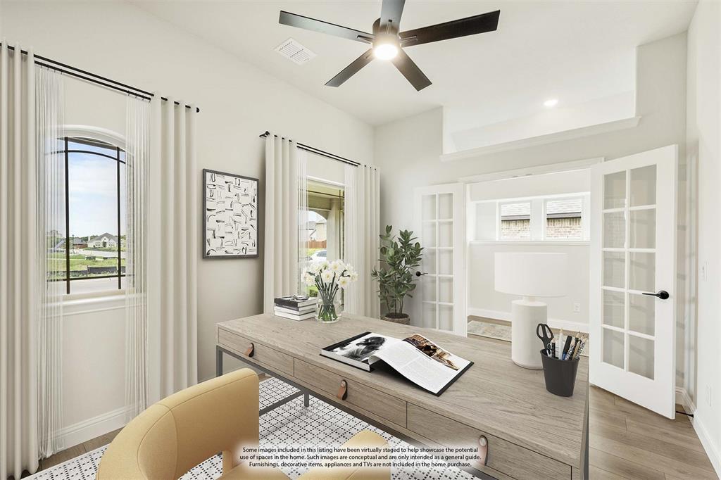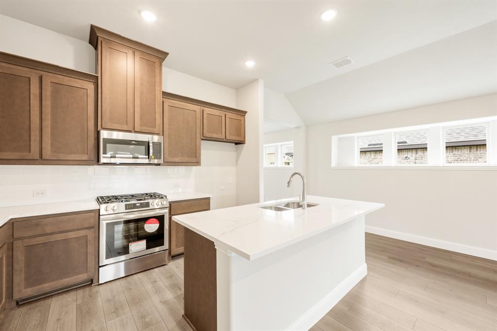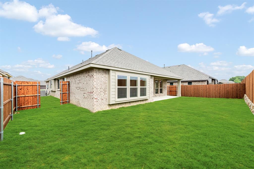 NEW! NEVER LIVED IN. Welcome to Bloomfield's Dogwood, a single-story gem situated on a coveted interior lot. This thoughtfully designed home features 3 bedrooms, 2 baths, a private Study, and an open-concept living space enriched by Laminate Wood flooring in all common areas and an eye-catching all-brick facade. Natural light pours into the sun-drenched interior, where the heart of the home—the kitchen—shines with stainless steel appliances, custom cabinets, Level 5 Quartz countertops, a spacious island, and upgraded large body tile in all baths for a touch of luxury. The Family Room seamlessly connects to the dining area, perfect for gatherings, while the Primary Suite offers a serene retreat complete with a window seat overlooking the backyard and an ensuite bath featuring dual sinks, a tub, and a separate shower. Elevated by an 8' front door, uplights, a gas drop on the patio, and a tankless water heater, this home also invites outdoor enjoyment on the expansive front porch, covered patio, and nearby community trails, offering the perfect blend of comfort and style. Contact or visit today!