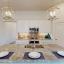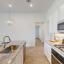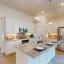 The kitchen is the heart of the home and features keen attention to detail with ample storage space, light quartz countertops, stainless steel appliances, and a large island. From the undercabinet lighting to the stylish pendant lights above the island, this space features beautiful details that enhance the ambiance.