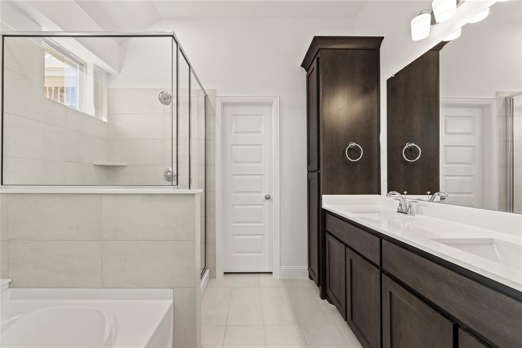 MLS# 20802305 - Built by Kindred Homes - Ready Now! ~ Monthly Payment: $3,133.65 - see terms. Welcome to the Brazos, where modern luxury meets thoughtful design. The stunning exterior boasts dark brick, white stone, and a 3-car garage. Inside, light luxury vinyl plank flooring flows throughout the open-concept living area, connecting the kitchen, dining, and family rooms. The kitchen features a central island and overlooks the family space. The spacious owner's suite includes a walk-in closet, dual vanities, soaking tub, and glass-enclosed shower. Upstairs, you'll find a game room, secondary bedrooms with walk-in closets, and a private bath. Situated on a quarter-acre lot backing to green space, this home also offers a study, laundry room, powder bath, and extra storage.