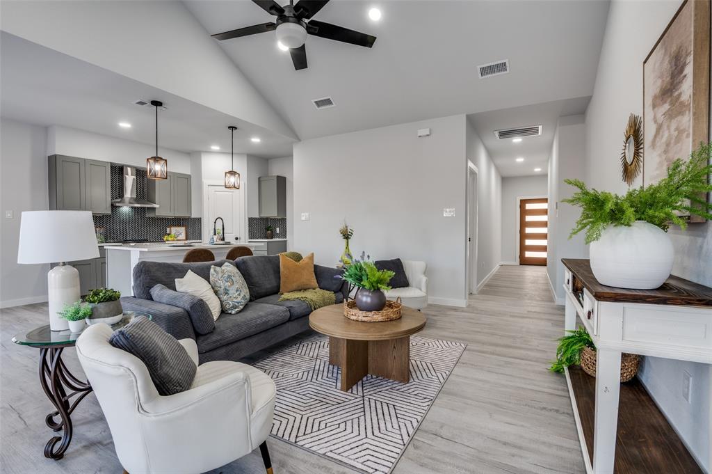 Welcome to this charming, brand-new, meticulously designed home on a CORNER LOT that offers an open floor plan with stunning attention to detail that defines modern luxury living LOCATED 3 MINUTES FROM CEDAR CREEK LAKE! Upon entering, the open floor plan immediately captures your attention. The spacious living offers cathedral cielings and flows effortlessly into the dining and kitchen spaces, creating an environment perfect for both relaxation and entertaining. The primary bedroom is a serene retreat overlooking the backyard. Additional two bedrooms are equally well-appointed, offering walk-in closets. The two-car garage is seamlessly integrated into the home providing both functionality and appeal.
