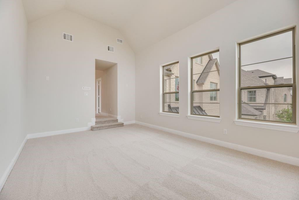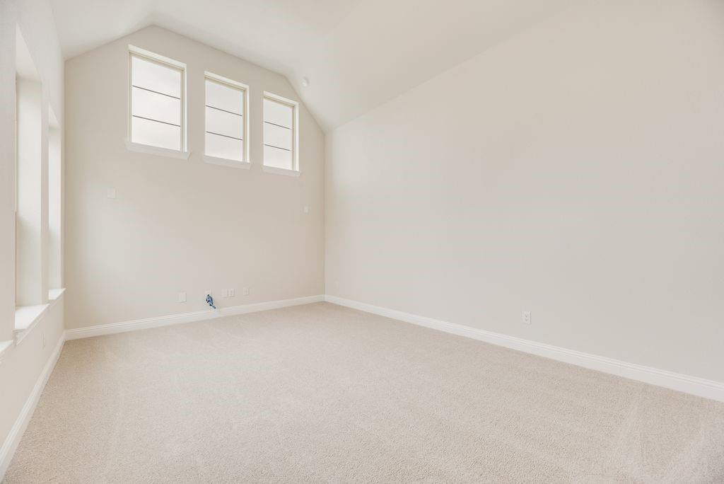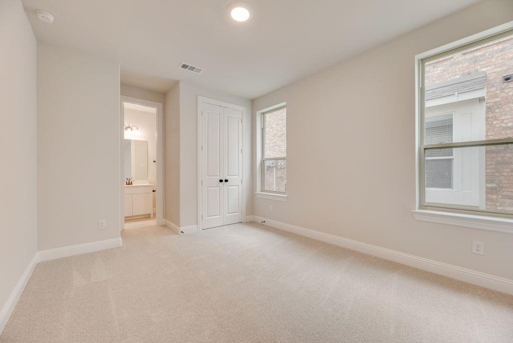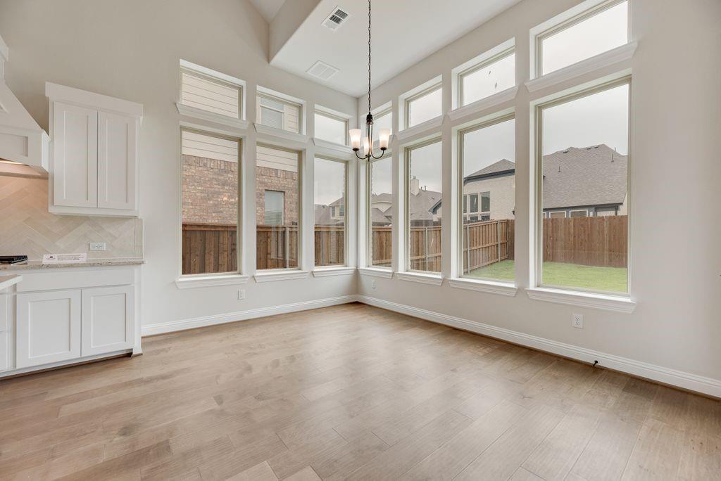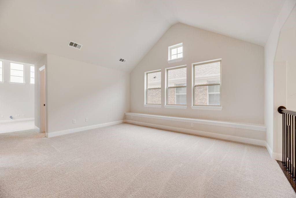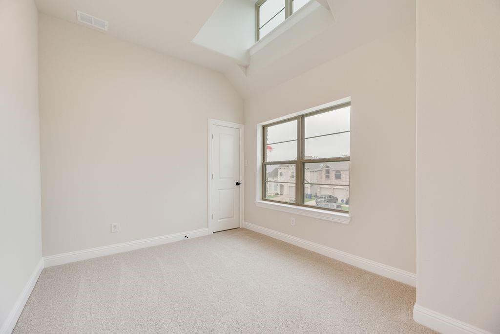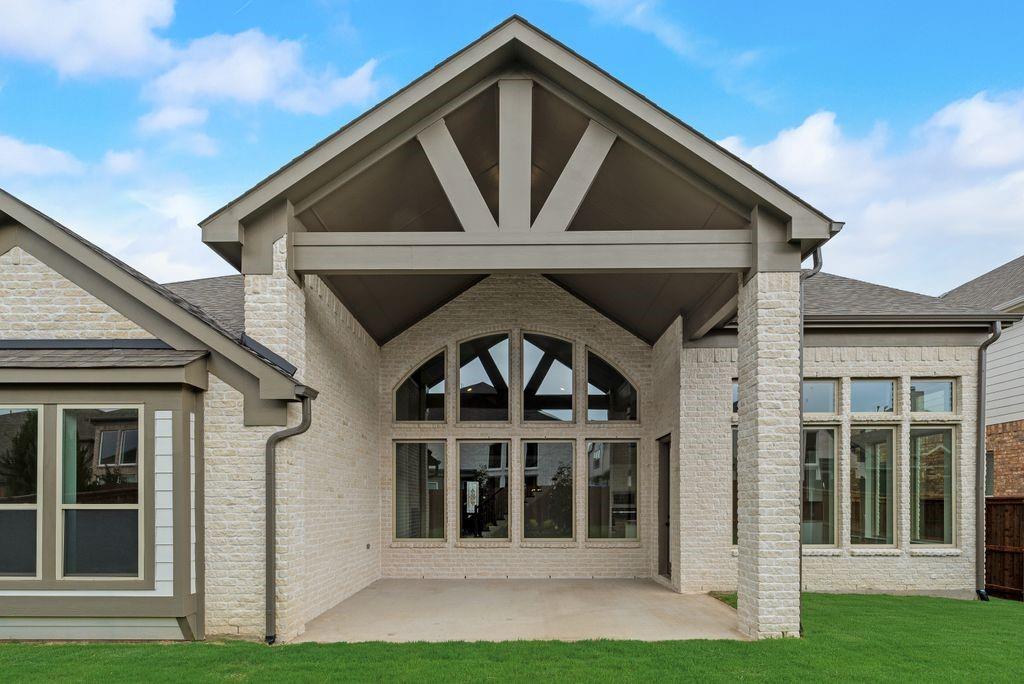 New Modern White bricked home on a North Facing homesite. New Grand Home JUST COMPLETED in Frisco ISD. Neighborhood pool, playground, treed greenbelt & hike & bike trail. Fantastic Grand Whitehall design with 5 bedrooms, vaulted family room with fireplace & Groin Vaulted ceilings, home office or den, game room, & Media Room or Children's Retreat wired for surround sound. Three downstairs bedrooms - one can be a guest suite & the 2nd a nursery or 2nd office. Open concept Kitchen has Shaker cabinets, granite slab tops, stainless steel appliances, 5 burner gas cooktop with custom vent hood, full bowl sink, tile backsplash, trash can drawer & island. Lots of wood floors & a Full oak staircase with modern iron railing extended along upstairs, 8-foot interior doors & rocker switches. Primary Bath has separate double vanities with rectangle sinks, glassed shower & free-standing tub. Laundry Room has a convenient sink. Walking distance to Miller Elementary School. New Wilkenson Middle! Energy star certified with R 38 & tankless water heater for super-efficient energy bills.