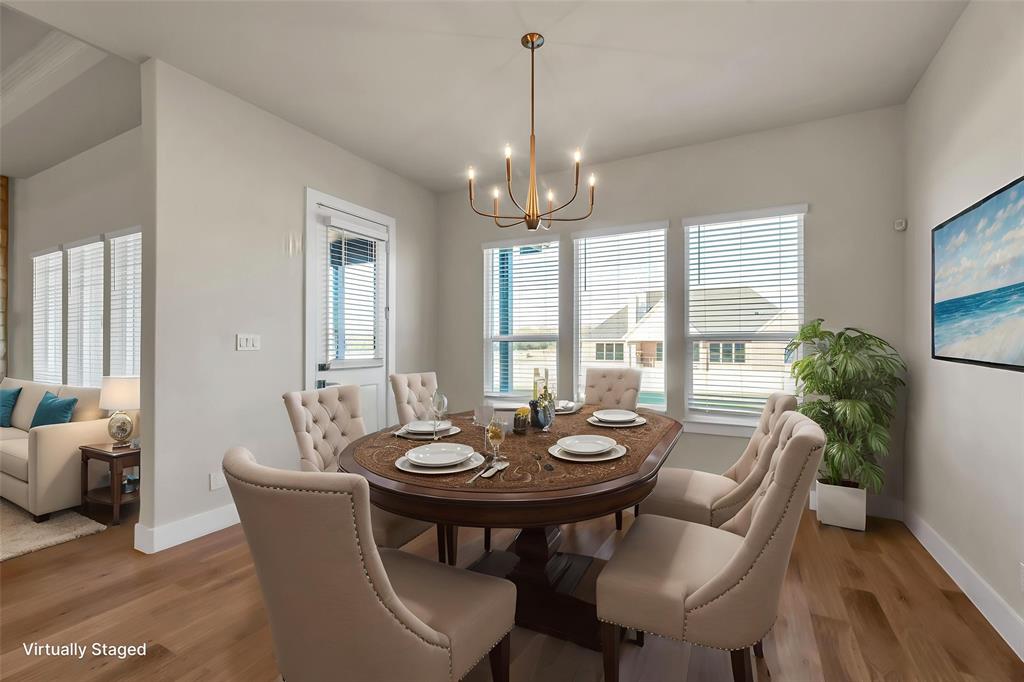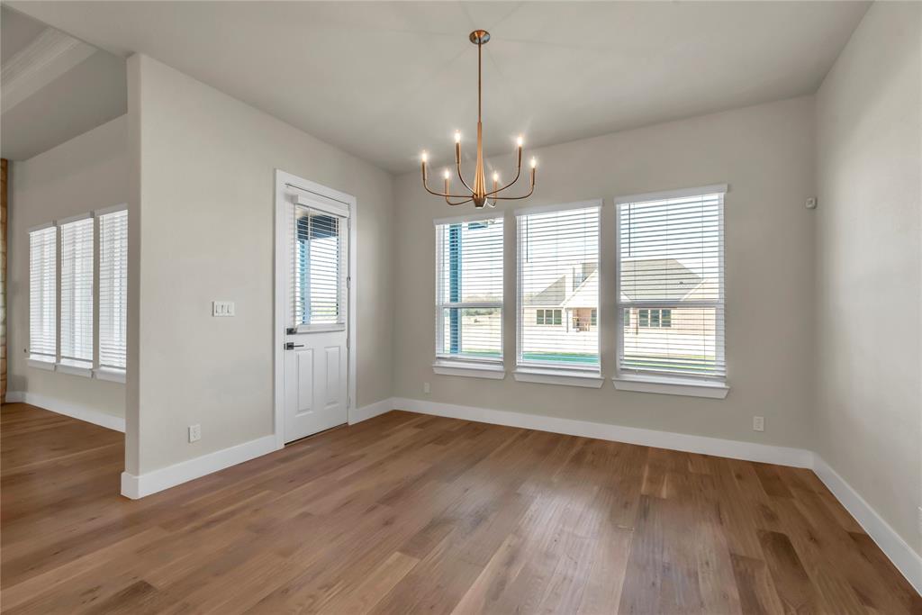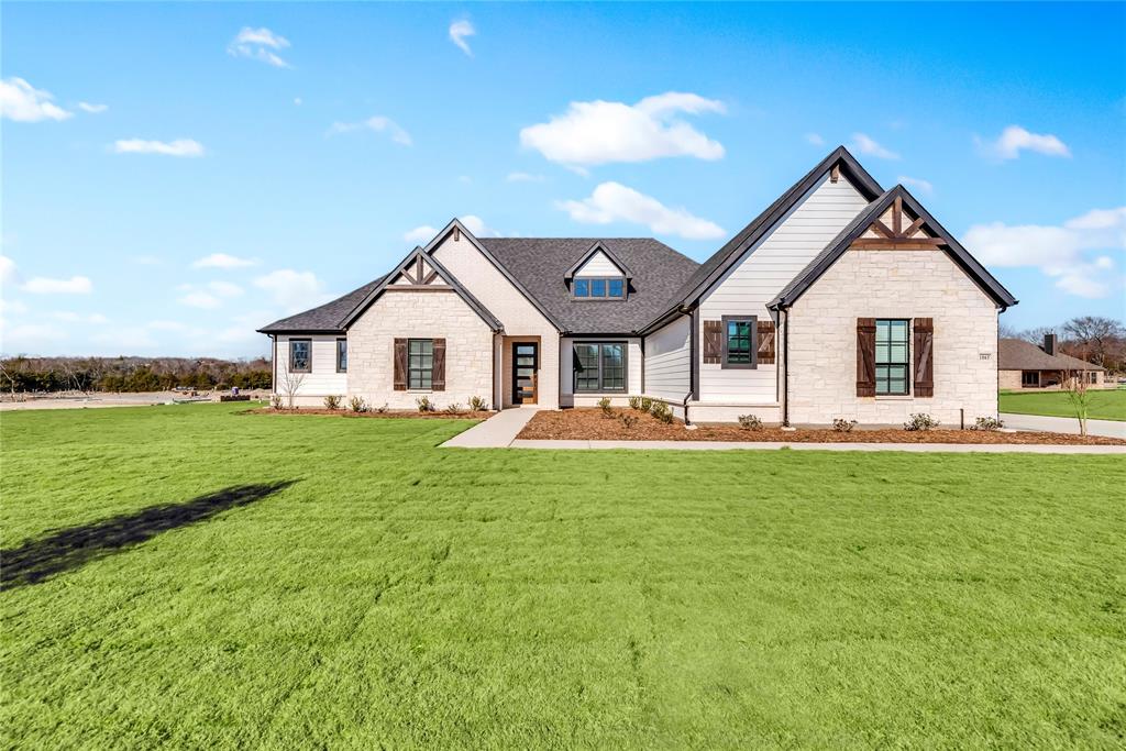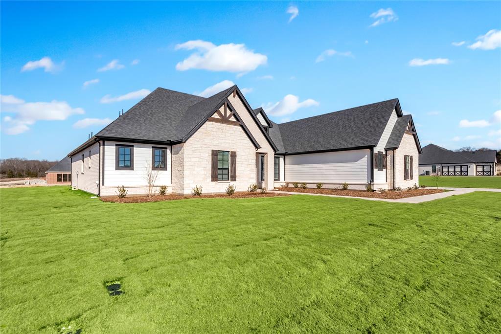 As you enter through the charming covered porch, the foyer beckons you inside, setting the stage for the grandeur that lies within. To the left, a versatile flex room stands ready to evolve into your personalized haven, whether it be a home office, gym or creative space. To the right, an elegant dining room awaits, ready to host cherished moments with loved ones. Continue through to the heart of the home, where the main living area unfolds—a vast family room with a cozy fireplace, an inviting nook and a chef-inspired kitchen boasting an elongated island, ideal for culinary adventures and entertaining. On the left side of the home, discover the secluded owner's suite, offering unparalleled privacy and tranquility. Enjoy the luxury of a spacious walk-in closet and a serene bathroom, creating an oasis of relaxation. On the opposite side, two traditional bedrooms await, each complete with its own walk-in closet, accompanied by a shared bathroom—perfect for siblings or guests. Functionality reigns supreme with the laundry and mudroom conveniently situated just off the garage entrance. Finally, step outside to the expansive covered patio, seamlessly blending indoor and outdoor living and promising endless opportunities for relaxation and recreation. In the Mockingbird, luxury meets functionality, offering an unparalleled living experience for homeowners in DFW.