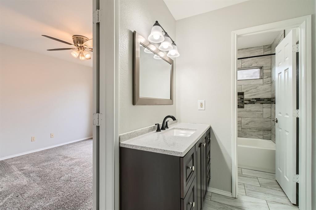 Flowing seamlessly into the cozy den, you'll find a charming brick fireplace with a mantel, creating the ideal space for relaxing evenings or lively gatherings. The all-new bathrooms boast fresh vanities, and the spa-like primary bath is pure luxury with granite counters, tiled floors, a soaking tub, and a separate shower for the ultimate retreat.