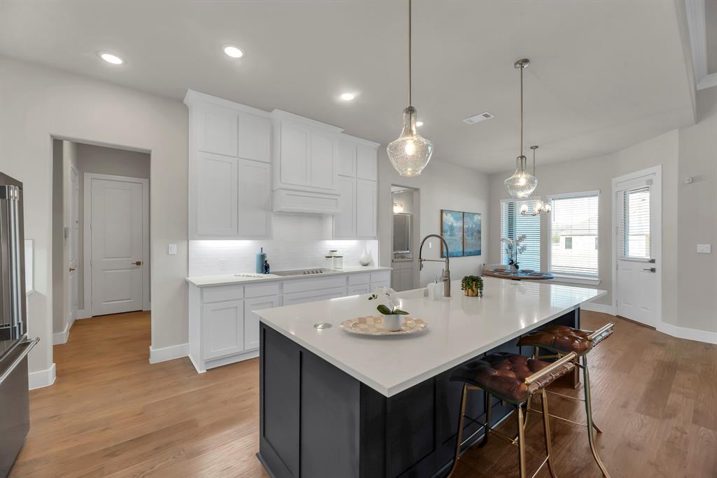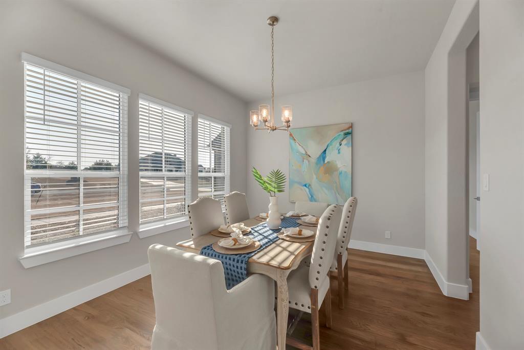 As you step through the front porch, you're greeted by an open foyer. To the right, a luminous dining room awaits. Adjacent to the foyer, discover two versatile flex rooms, adaptable to your every need—whether it be a home gym, office or creative space. Continue through to the heart of the home, to the family room adorned with a cozy fireplace, nestled near a charming nook and a chef-inspired kitchen boasting ample counter space and storage areas. On the right side of the home, three traditional bedrooms each feature a walk-in closet and are accompanied by two bathrooms for utmost convenience. For added entertainment, indulge in the media room, ensuring every member of the family has a space to fulfill their passions. On the opposite side, the owner's suite awaits, offering a sanctuary of luxury with top-quality features, a stunning owner's bath and an incredible walk-in closet. Lastly, step outside to the covered back patio!