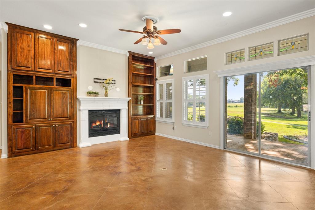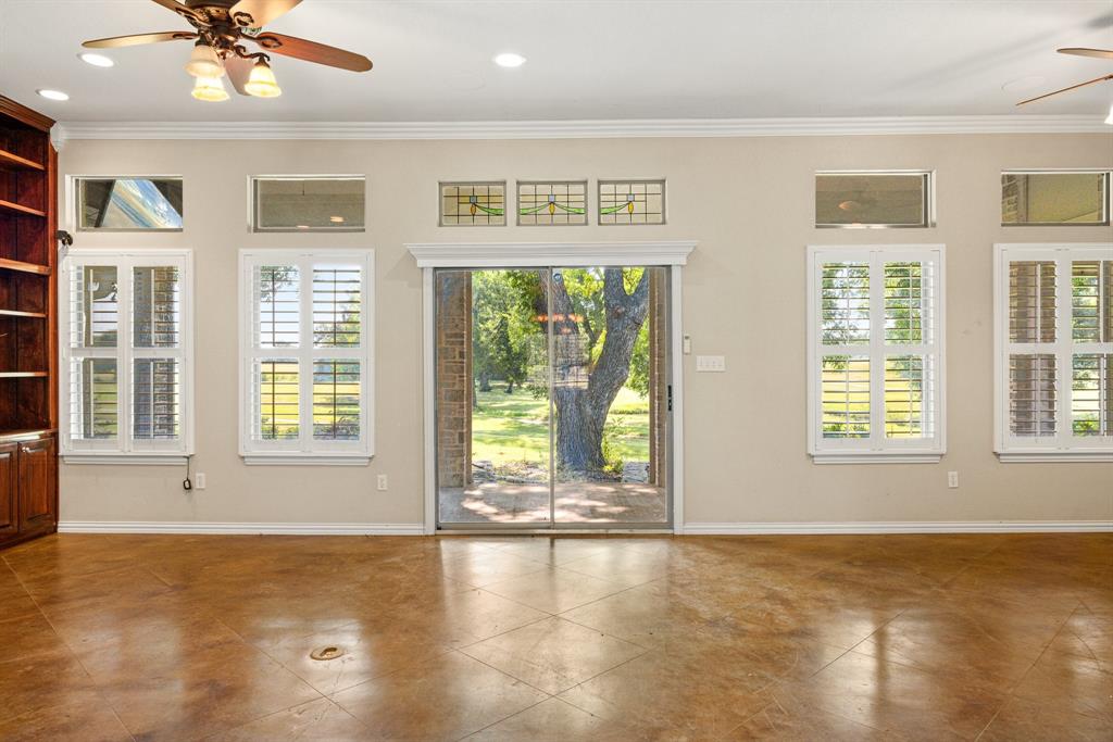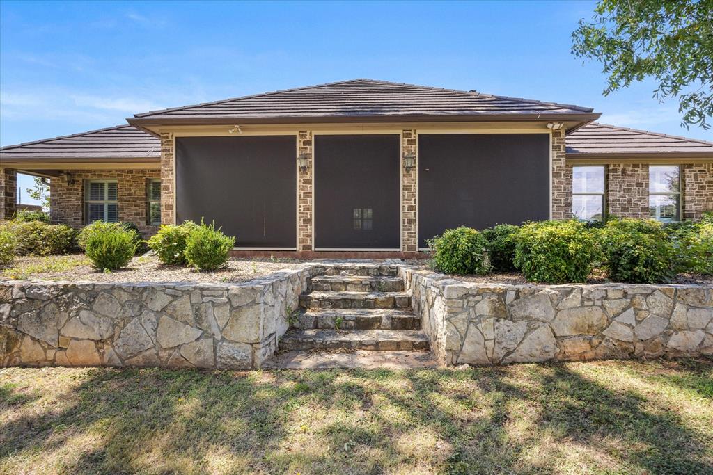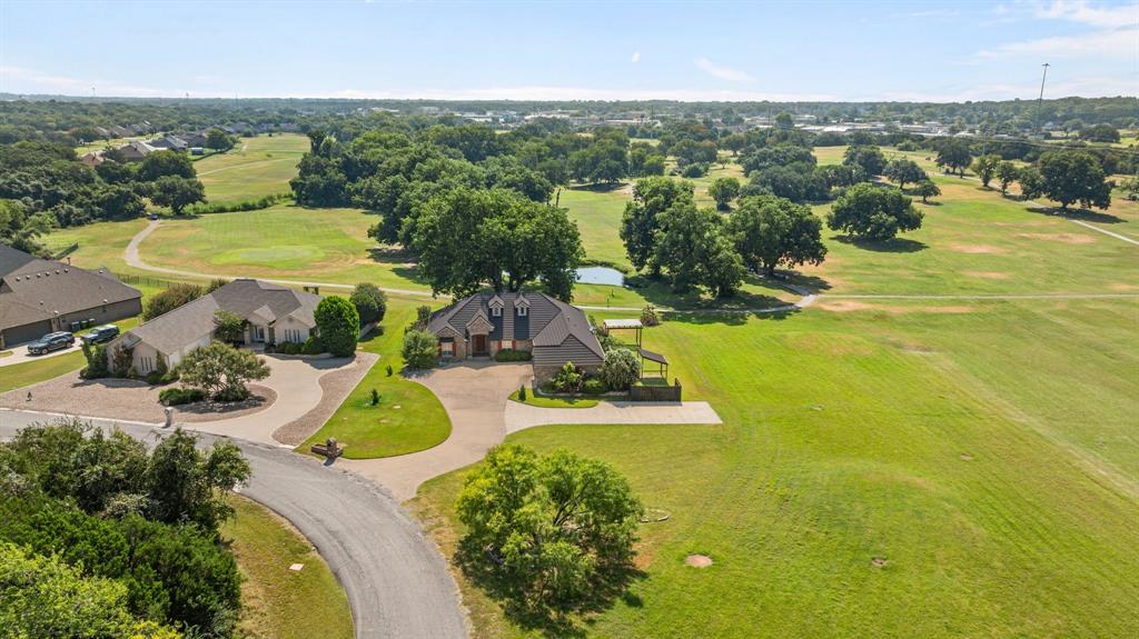 Welcome to 1621 Rockview Dr- a meticulously maintained 3 bedroom, 2 bath custom home nestled on nearly an acre with sweeping golf course views and No HOA restrictions. Situated along Granbury's city golf course, this home offers the perfect blend of privacy, space, and convenience. Step inside to find plantation shutters, elegant built-ins that add charm and functionality throughout. The spacious living room features a cozy fireplace and flows into a bright, updated kitchen with quartz countertops, modern backsplash, and plenty of cabinet space. Enjoy your morning coffee or evening wine on the covered back porch, complete with remote-controlled retractable screens-ideal for year-round relaxation while soaking in the view of mature trees, the pond, and open green space.