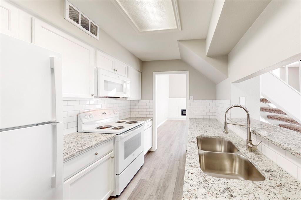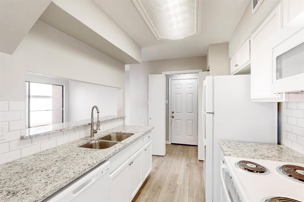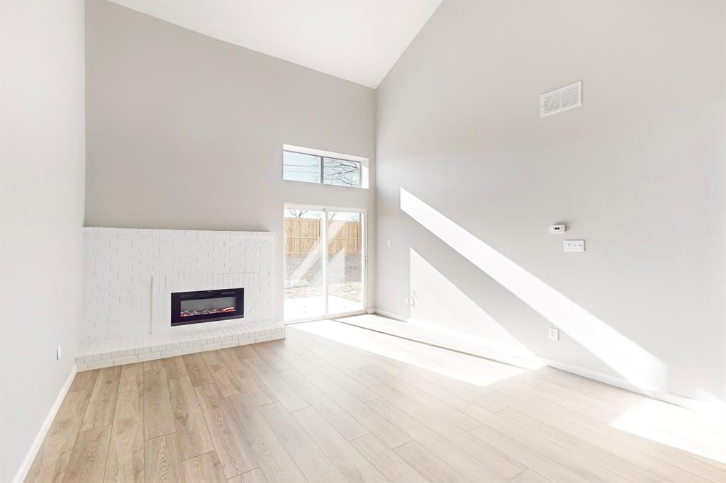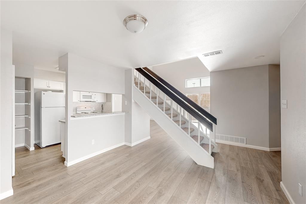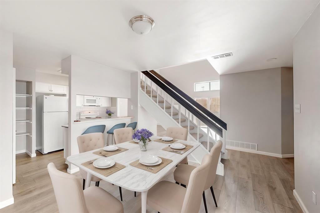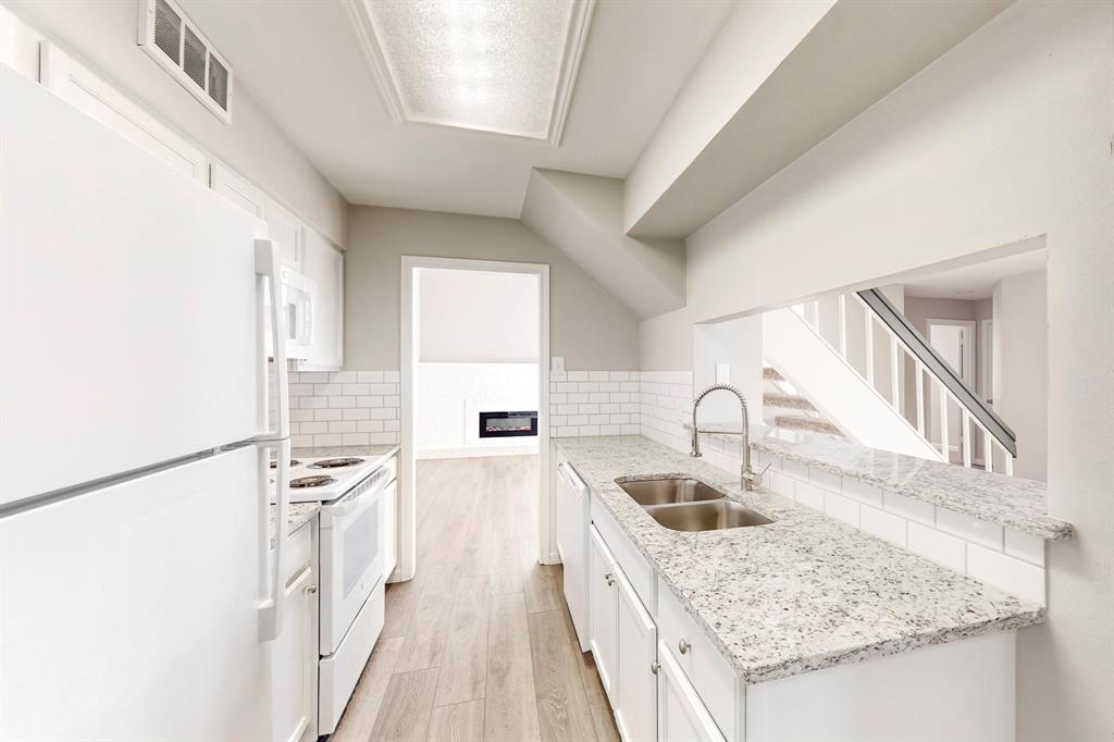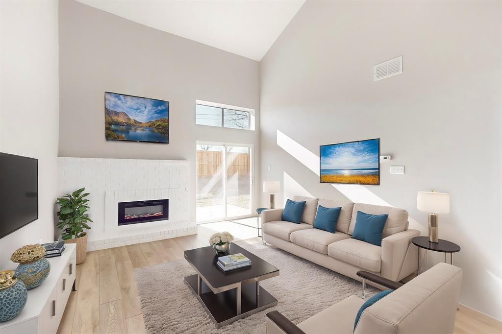 These photos don't lie - Completely updated and Move-In Ready! Nestled in a serene parkside location, this beautifully renovated home combines modern appeal with a lifestyle that embraces nature. Backing to Porter Park and Palos Verdes Lake Park, the home offers direct access to scenic trails, greenbelt views, and the 4.25-mile Mesquite Heritage Trail. Inside, you’re greeted by a spacious living area with a soaring two-story ceiling, updated flooring, and an inviting electric fireplace—perfect for creating a warm and welcoming ambiance. The kitchen is a true standout featuring sleek granite countertops, a subway tile backsplash, painted cabinetry, and updated white appliances - refrigerator included. Just across the breakfast bar is the dining area, a bright and cheerful space where friends and loved ones can gather to share meals and create lasting memories.