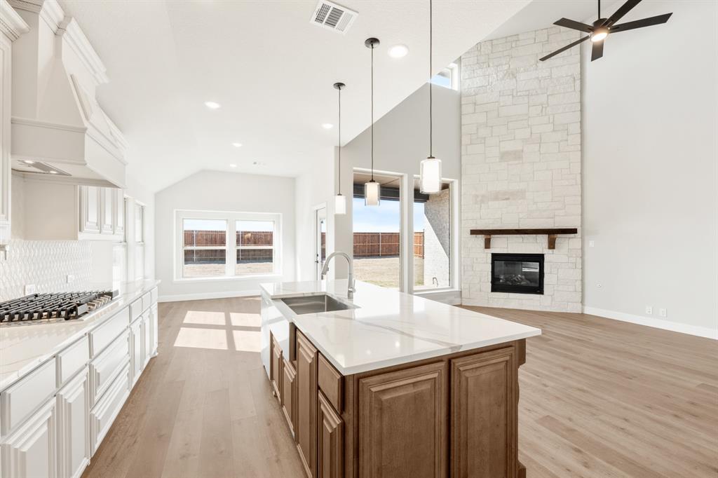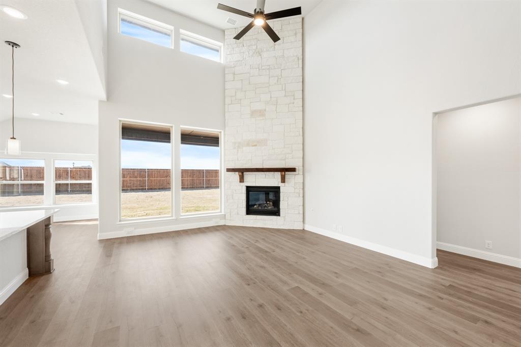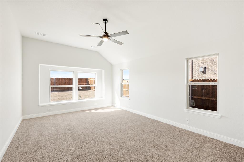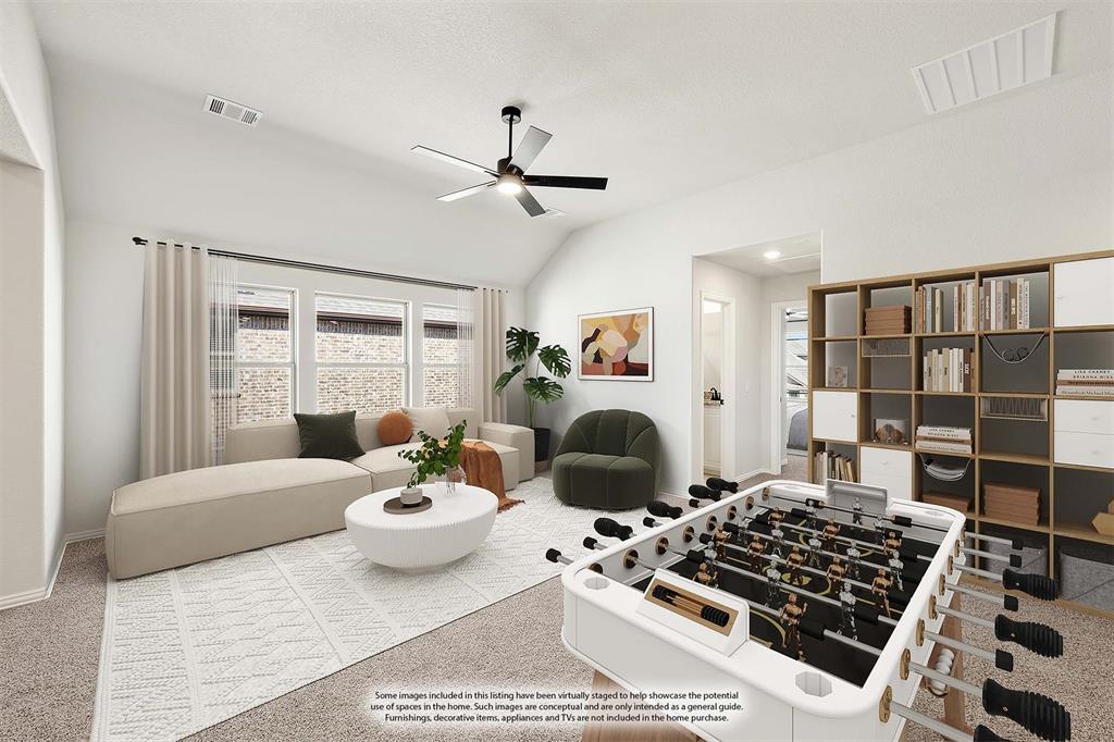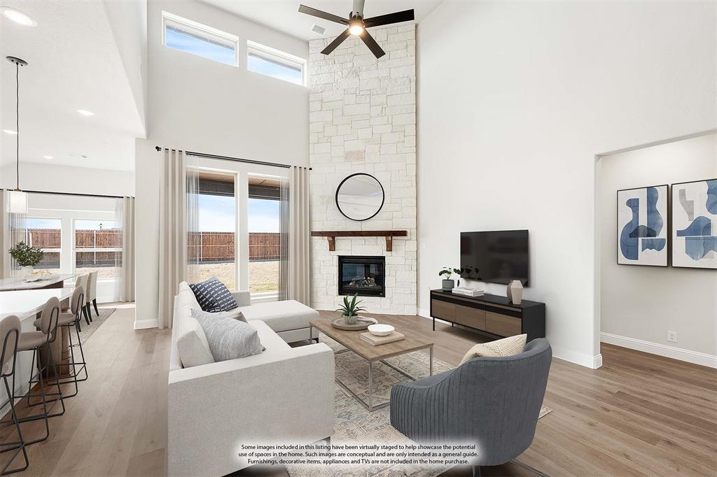 *Rates as low as 2.75%, 4% Seller Credit, ZERO Closing Costs Options, 101.5% Financing Option, PLUS a Quick Move-In Package!* NEVER LIVED IN NEW HOME! READY NOW! A magnificent two-story home offering 5 bedrooms and 4 baths, Bloomfield's Rose II plan blends luxurious living with thoughtful design. As you step through the striking 8' front door, the bricked Covered Porch leads into a spacious Family Room, where soaring two-story ceilings and a stunning Stone-to-Ceiling Fireplace with a cedar mantel create a breathtaking focal point. The sophisticated Study and two full baths downstairs enhance functionality, while wood-look tile and laminate wood floors throughout the living areas elevate the interiors. The Deluxe Kitchen is a chef’s dream, now featuring double ovens, a 5-burner cooktop, a pot filler, painted cabinets, a White farmhouse sink, and Quartz countertops complemented by a DECO backsplash, making it both stylish and practical for entertaining. The Primary Suite is a serene retreat, offering a spa-like ensuite and a walk-in closet connected to a laundry room with a mud bench for added convenience. Upstairs, the expansive Game Room and attached Media Room provide endless possibilities, enhanced by modern-style balusters on the staircase and charming window seats. Outside, the Covered Patio with a gas stub overlooks a fantastic backyard, while uplights on the brick-and-stone facade ensure striking curb appeal. With a tankless water heater, vaulted ceilings, and premium finishes throughout, this home in Hampton Park is the perfect blend of elegance and comfort!