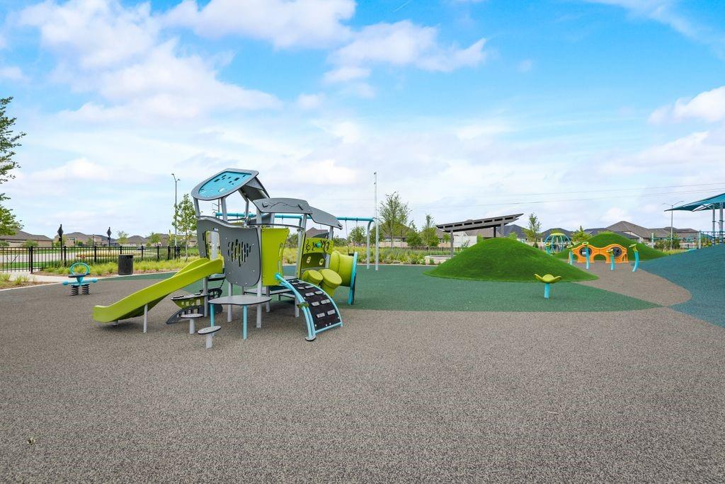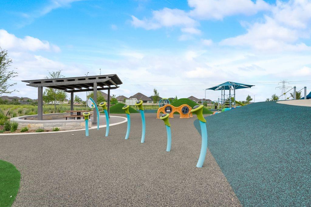 New Grand Home in family friendly Prairie Ridge with neighborhood pool, miles of bike trails, spectacular playground & parks! JUST Completed. Walk to trail system, parks & Pool. Modern home with full oak staircase w modern wrought iron spindles, wood floors, 8 ft doors, rocker switches, flat screen TV wiring & thick door casing & trim. Open concept family room has 2 story linear fireplace and open to covered back patio ready to entertain. Home office or Den. Downstairs Guest Bedroom or a Private Home Office. Upstairs gameroom with 2 additional bedrooms. Gourmet kitchen has Omegastone slab tops, butlers pantry area or home management desk, Shaker cabinets, stainless steel appliances, 5 burner gas cooktop, full bowl sink, trash can drawer, pots & pans drawers & island with pendant lights. Primary Bath has a free standing garden tub, separate his & her vanities w rectangle sinks, linen closet & Frameless glass enclosed tiled shower. Security & Sprinkler systems. Energy Star Partner features include radiant barrier roof decking & R38 ceiling insulation for low energy bills!