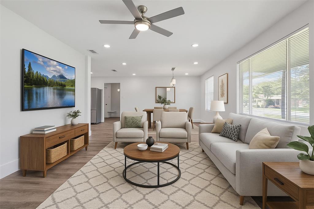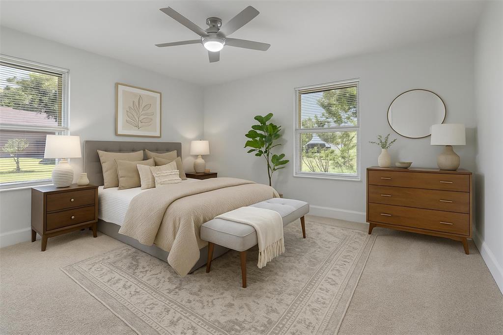 Inside, you’ll find an open-concept layout featuring fresh finishes, abundant natural light, and spacious living areas ideal for both relaxing and entertaining. The kitchen boasts contemporary updates with ample counter space, stylish cabinetry, and modern appliances. Each of the four bedrooms is well-sized, including a private primary suite with its own full bath for your convenience and comfort.