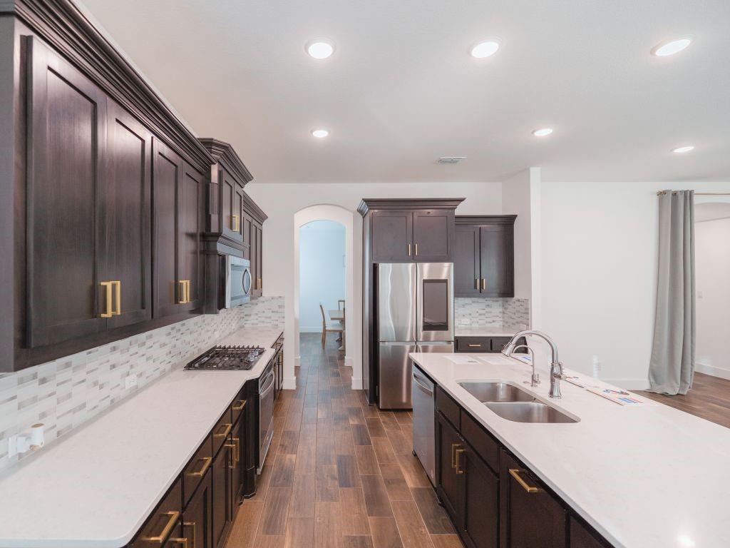 Luxury 2023 Build – 4 Bed, 3 Full Bath, Office, Game & Media Rooms! This stunning 3,562 sq ft home blends modern luxury with everyday comfort. Step into a bright, open layout with soaring ceilings, abundant windows, and premium finishes throughout. The chef’s kitchen is a showstopper — gas cooktop, stainless steel appliances, oversized island, walk-in pantry, and generous cabinetry — opening to a sunlit family room, a casual breakfast area, and a separate formal dining room for gatherings. Work from home in your private office, then unwind in the spacious game room or dedicated media room upstairs. The primary suite offers a spa-like bath with garden tub, oversized walk-in shower, and dual vanities. Guests will love the main-floor bedroom with full bath. Includes refrigerator, washer, dryer, whole-house water softener with filtration & RO system, smart thermostats, natural gas hookup for grilling, and automated sprinklers. Relax on the covered patio and enjoy colorful west-facing sunsets. Community pool, playground, and walking trails with low $81-mo HOA. Close to shopping, dining, parks, and top-rated schools. Flexible closing available — see it today!