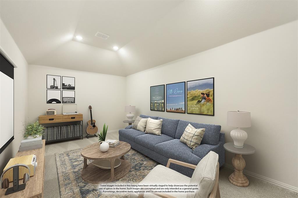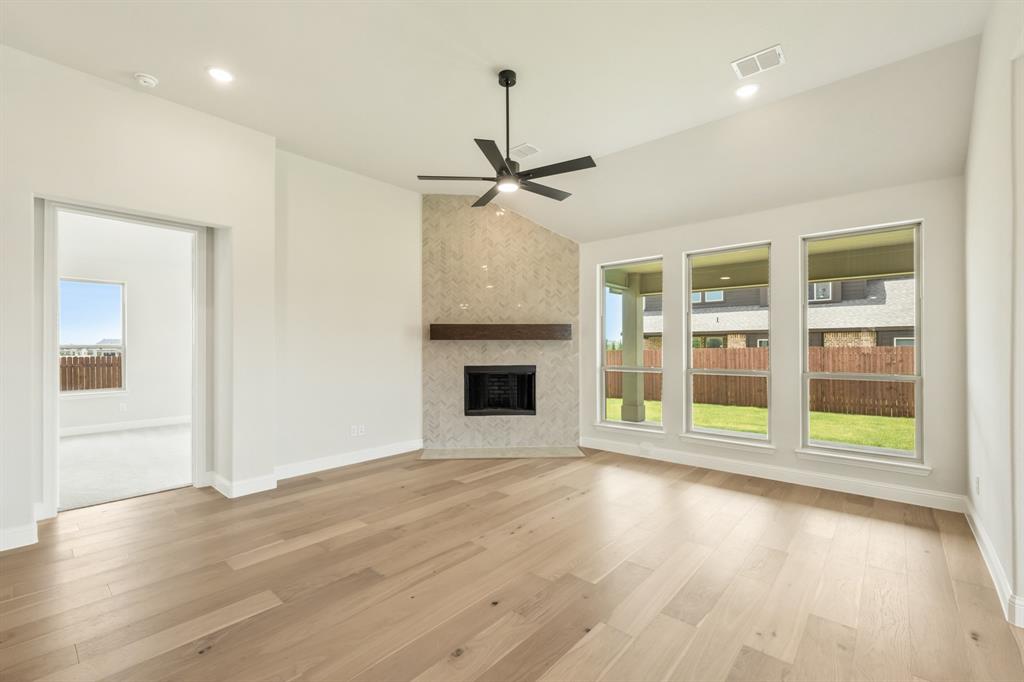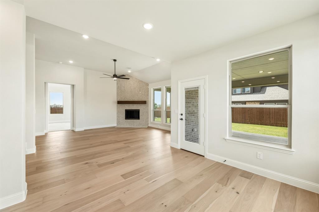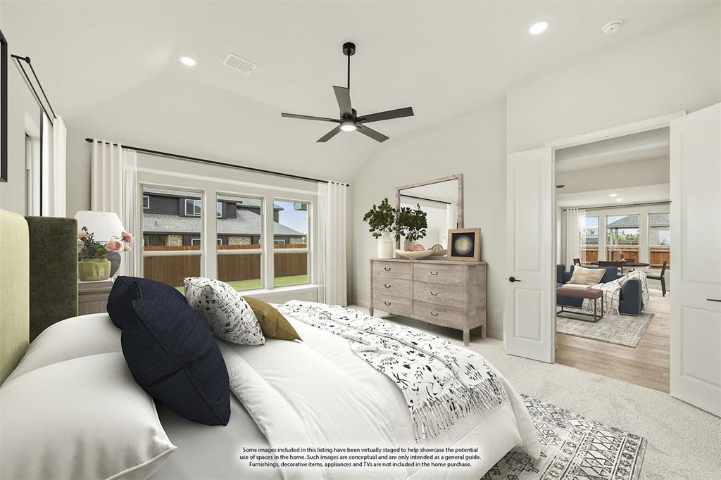 NEW! NEVER LIVED IN! Bloomfield's Magnolia II is a beautiful and functional two-story home, thoughtfully designed with 4 bedrooms, 3.5 baths, and a 2.5-car garage with an exterior access door, all set on an oversized corner lot with a striking brick and stone facade. The open layout showcases an extended Covered Patio for seamless indoor-outdoor living, complemented by a balcony and multiple covered outdoor spaces for added versatility. The Deluxe Kitchen is a true centerpiece, featuring custom cabinets, sparkling Quartz countertops, all-electric stainless steel appliances, and a layout inspired by the North Grove model. The Family Room, enhanced by a Tile-to-Ceiling Fireplace and beautiful wood floors, flows effortlessly into the breakfast nook, offering patio access and backyard views. The luxurious Primary Suite boasts a tranquil view from its window seat, an extended walk-in closet, and an ensuite bath with separate vanities, a deck tub, and a glass-enclosed shower. Upstairs, find a Game Room, a Media Room, and an additional full bath conveniently added at Bedroom 5. Practical details such as blinds, a Mudroom, an 8' front door, and uplights ensure style meets functionality in this stunning home—call today!