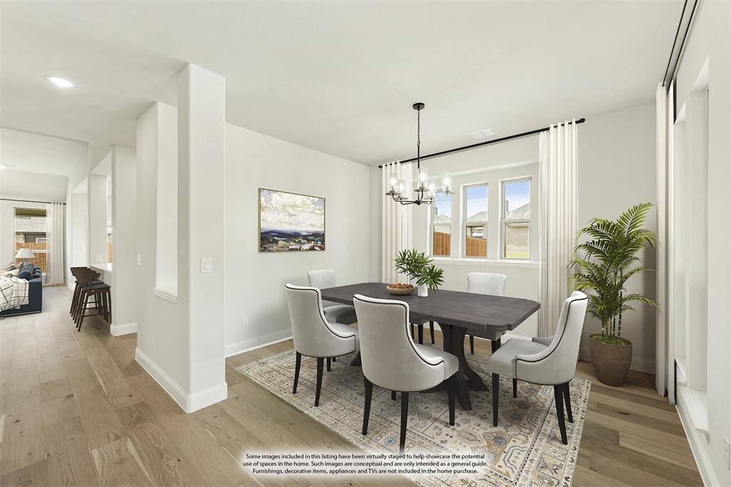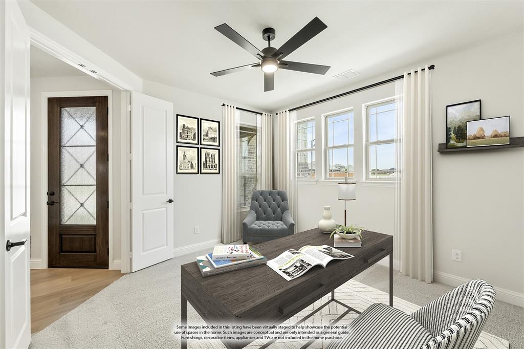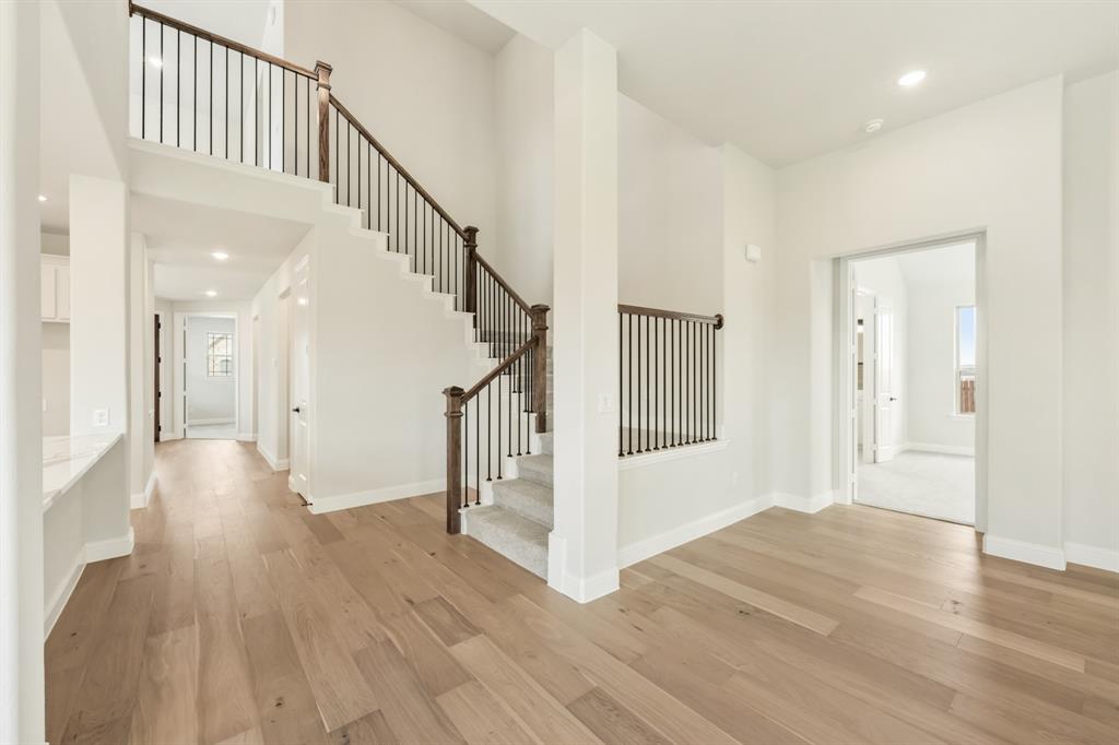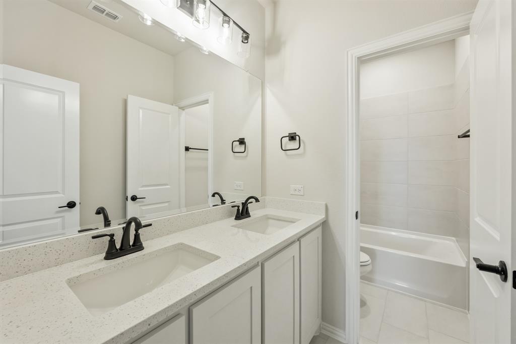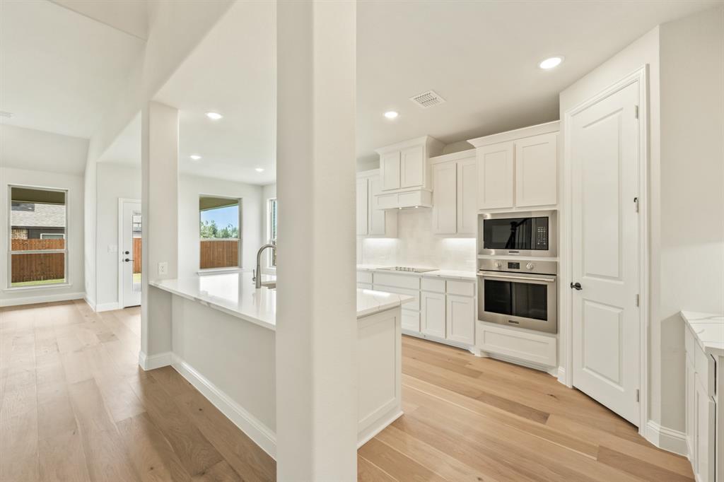 NEW! NEVER LIVED IN! Bloomfield's Magnolia II is a beautiful and functional two-story home, thoughtfully designed with 4 bedrooms, 3.5 baths, and a 2.5-car garage with an exterior access door, all set on an oversized corner lot with a striking brick and stone facade. The open layout showcases an extended Covered Patio for seamless indoor-outdoor living, complemented by a balcony and multiple covered outdoor spaces for added versatility. The Deluxe Kitchen is a true centerpiece, featuring custom cabinets, sparkling Quartz countertops, all-electric stainless steel appliances, and a layout inspired by the North Grove model. The Family Room, enhanced by a Tile-to-Ceiling Fireplace and beautiful wood floors, flows effortlessly into the breakfast nook, offering patio access and backyard views. The luxurious Primary Suite boasts a tranquil view from its window seat, an extended walk-in closet, and an ensuite bath with separate vanities, a deck tub, and a glass-enclosed shower. Upstairs, find a Game Room, a Media Room, and an additional full bath conveniently added at Bedroom 5. Practical details such as blinds, a Mudroom, an 8' front door, and uplights ensure style meets functionality in this stunning home—call today!