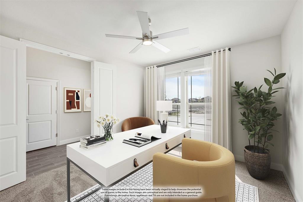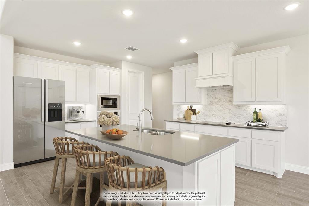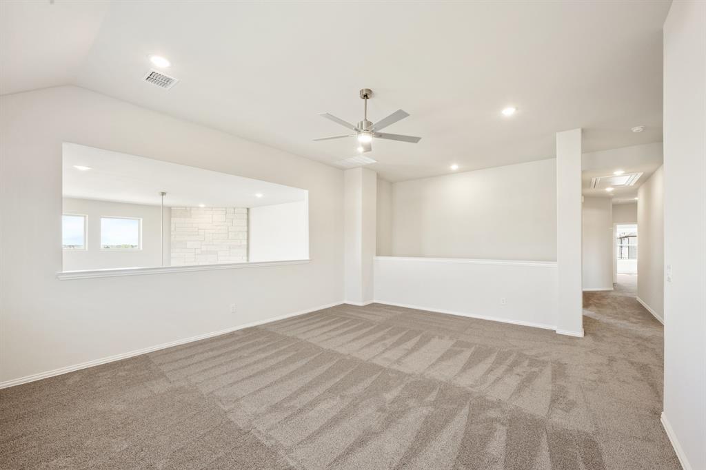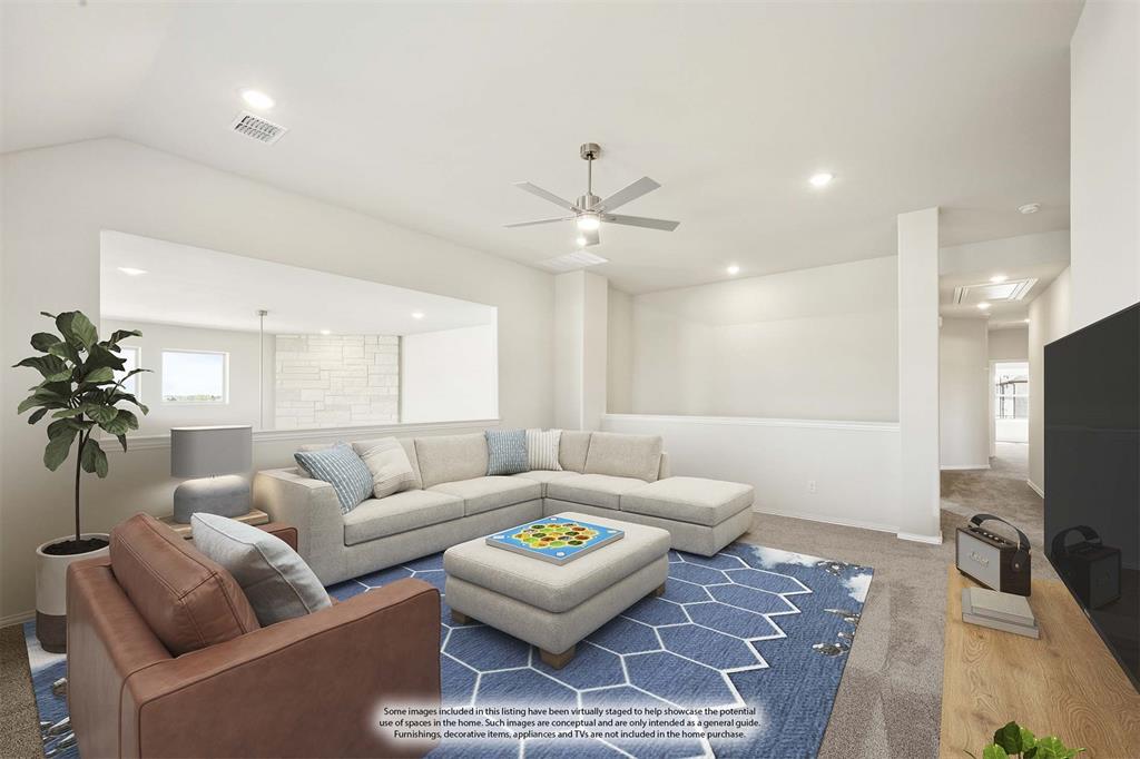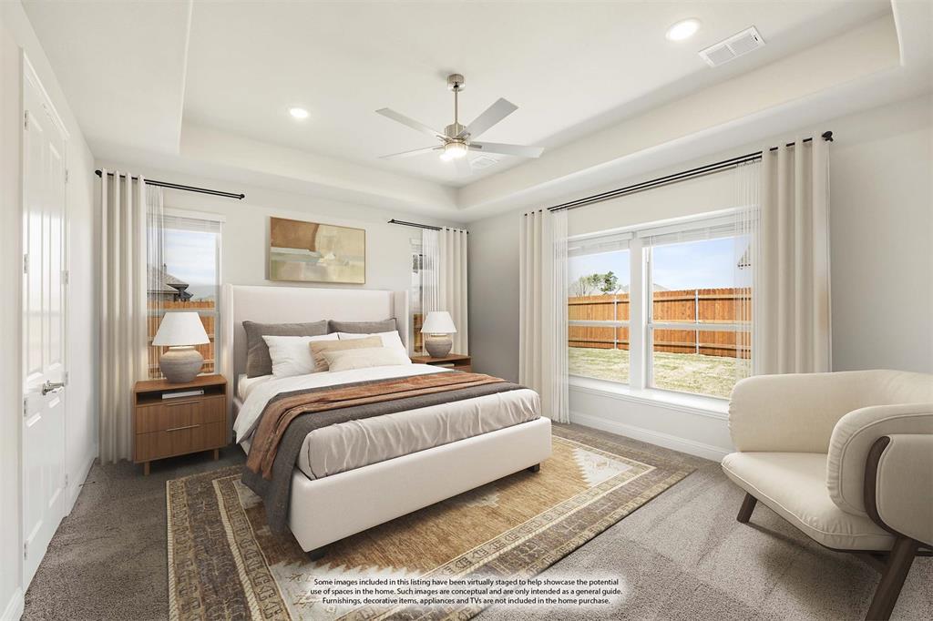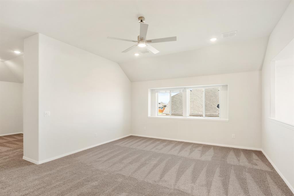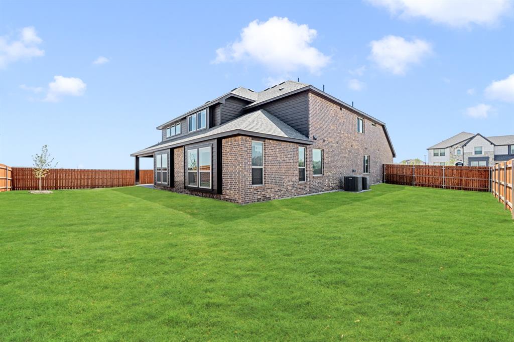 NEW! NEVER LIVED IN! Welcome to your dream home at Bloomfield's Spring Cress II floor plan—a stunning two-story retreat featuring 5 spacious bedrooms and 4 baths. Adorned with a striking Brick and Stone exterior, this home is perfectly situated on an oversized corner lot, showcasing a 2-car swing garage with a front-facing extension for extra storage, full landscaping with stone edging, and a custom 8' front door that makes a grand impression. Inside, elegant finishes abound, including Wood-look Tile flooring and Grey Quartz countertops that beautifully complement the crisp White Kitchen cabinetry. Entertain effortlessly in the open Breakfast area, Study, and upstairs Game and Media rooms, while the Deluxe Kitchen impresses with its island layout, Stainless Steel appliances, and a large walk-in pantry. A functional mud room adds convenience, and the vaulted ceiling in the Family Room is anchored by a cozy Stone-to-Ceiling Fireplace for a warm and inviting space. The spacious Primary Suite offers serene backyard views, while upstairs, three additional bedrooms with walk-in closets provide ample space for everyone. With blinds, accent exterior lighting, and access to all the amenities Bloomfield at North Grove offers, this home is the perfect blend of style and comfort. Visit today!