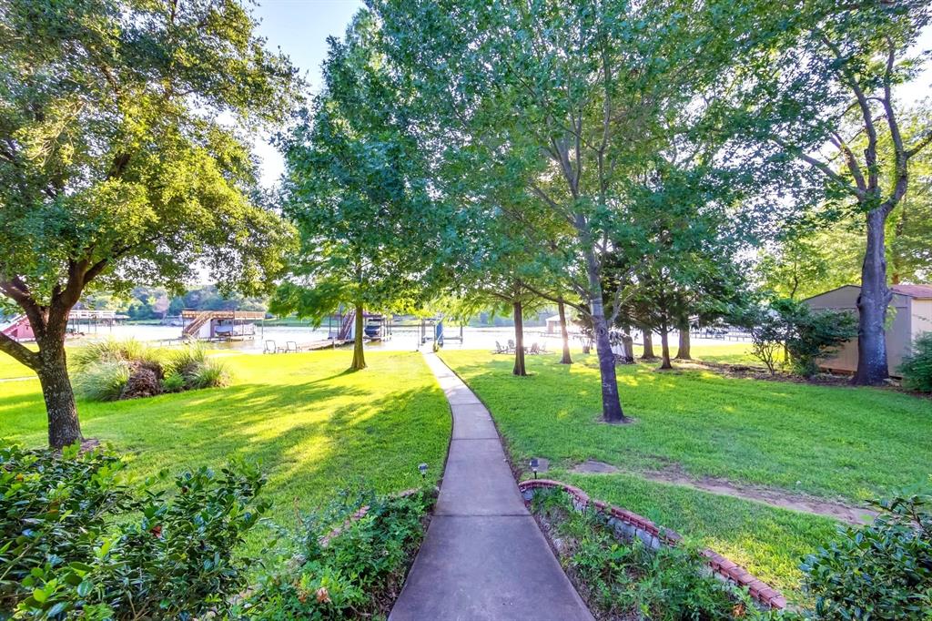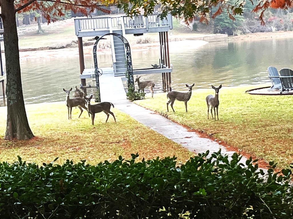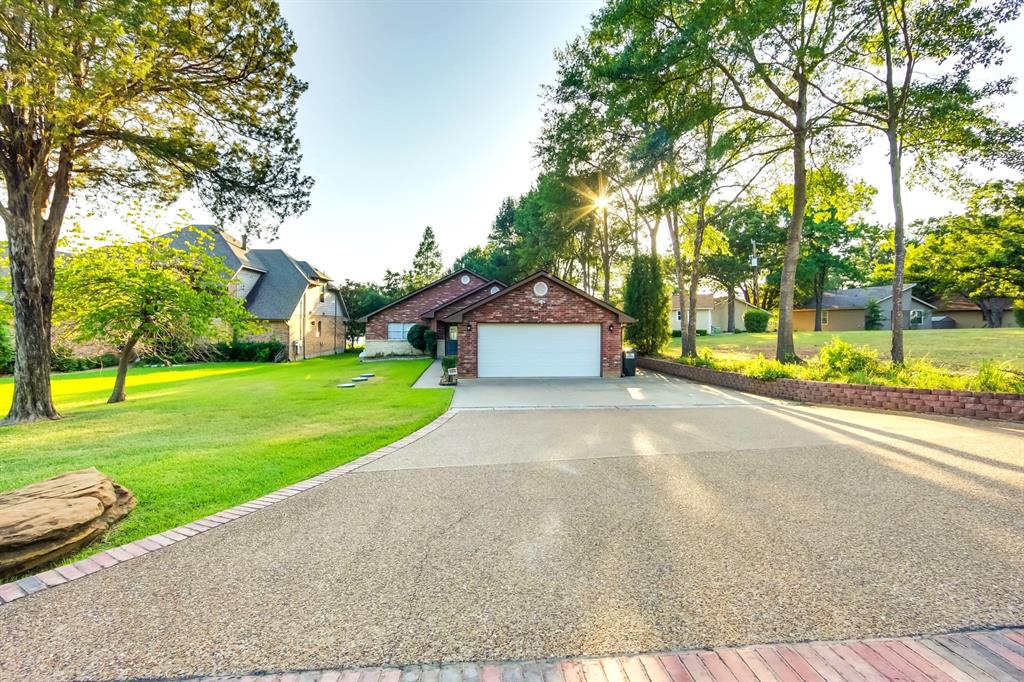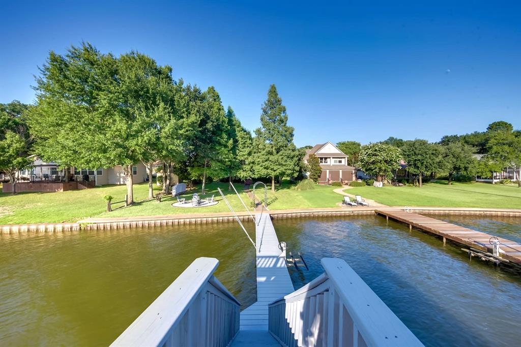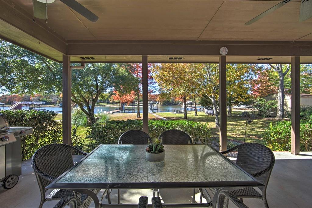 Beautiful tree lined drive leads you to this immaculate updated 3 bedroom, 2 bath home with master bedroom on waterfront side. Open living, dining, raised ceilings, tile floors, fireplace, and floor to ceiling windows. Spacious kitchen, electric double ovens, gas cooktop and large bar area for guests to gather. Wonderful, covered porch over looks tranquil cove. Lakeside fire pit, boathouse with party deck. Has boat lift, jet ski lift and dock whips for guests. Bushwhacker voluntary POA has private boat ramp. Oversized 2 car garage, plenty of parking for family and friends. Has new AC 2023 New roof 2023 and propane gas. Sold furnished. No HOA, can VRBO. Currently used as STR.