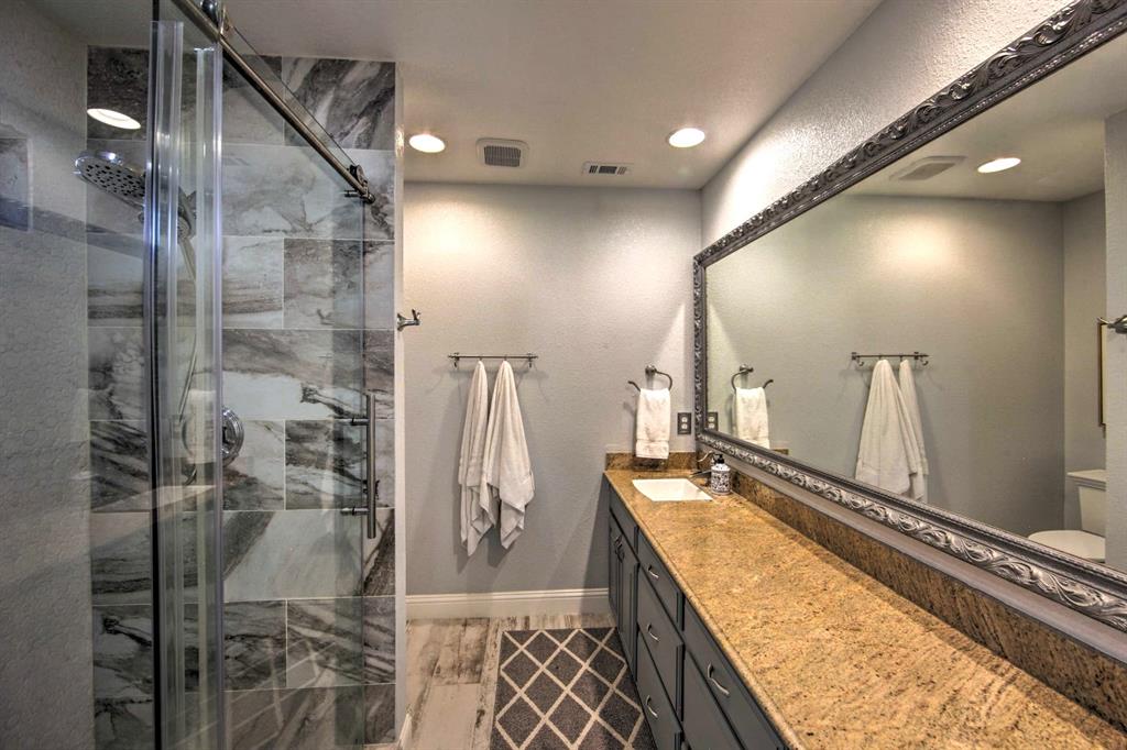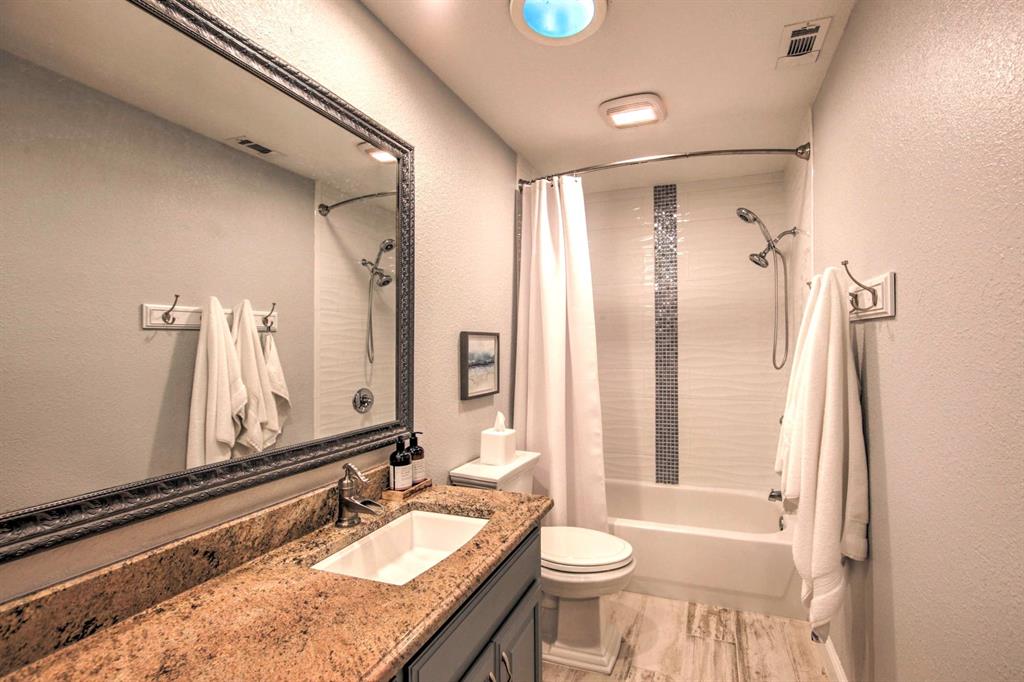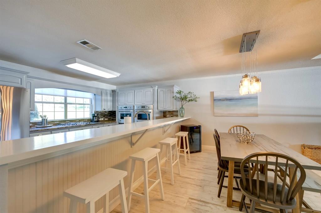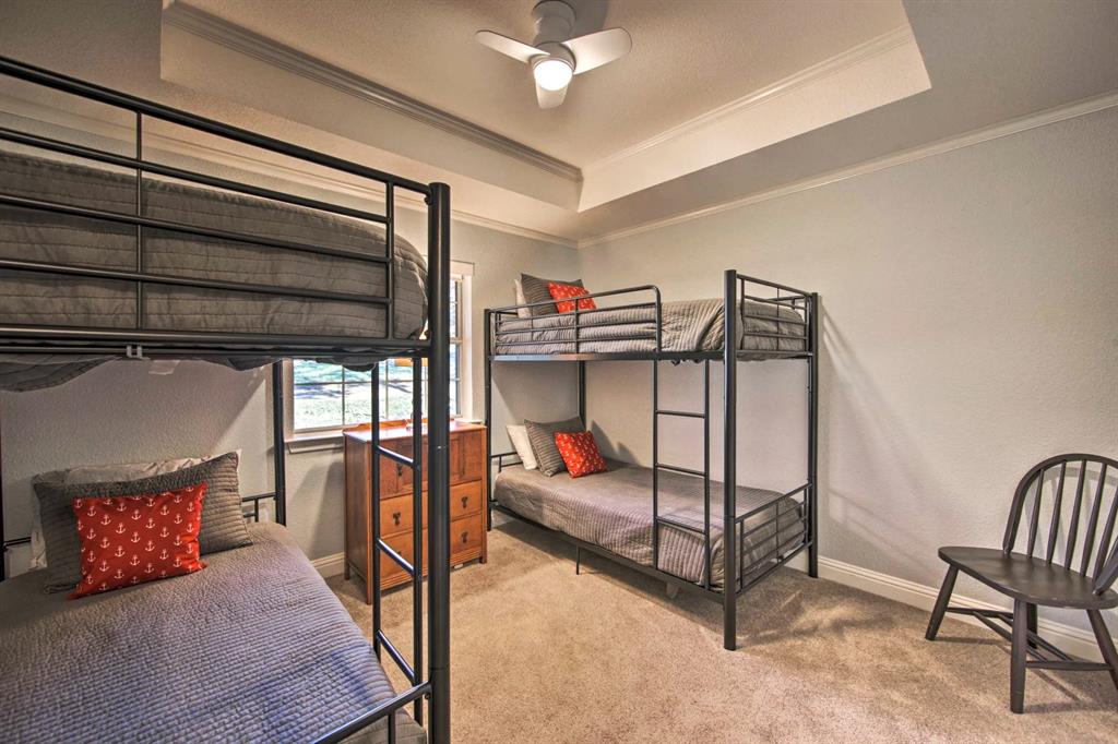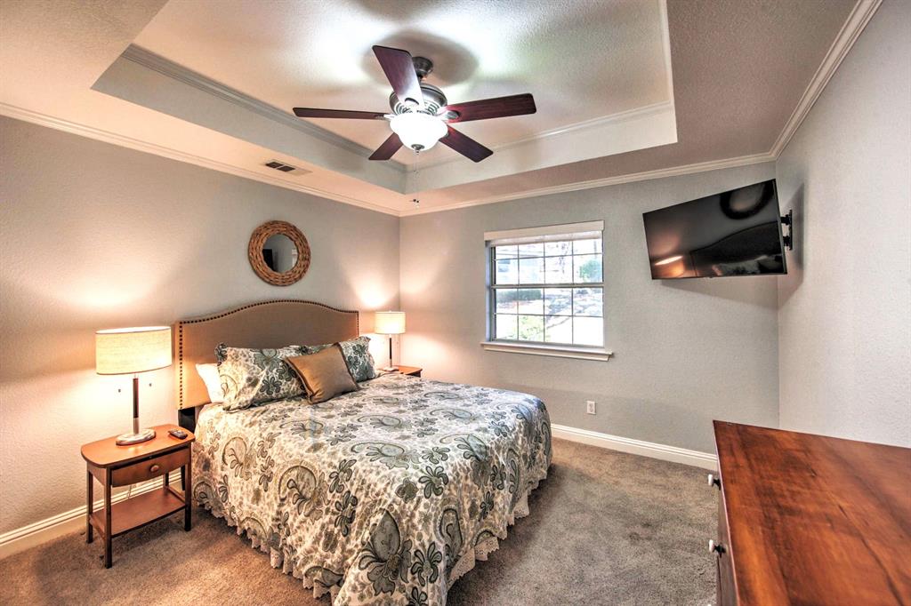 Beautiful tree lined drive leads you to this immaculate updated 3 bedroom, 2 bath home with master bedroom on waterfront side. Open living, dining, raised ceilings, tile floors, fireplace, and floor to ceiling windows. Spacious kitchen, electric double ovens, gas cooktop and large bar area for guests to gather. Wonderful, covered porch over looks tranquil cove. Lakeside fire pit, boathouse with party deck. Has boat lift, jet ski lift and dock whips for guests. Bushwhacker voluntary POA has private boat ramp. Oversized 2 car garage, plenty of parking for family and friends. Has new AC 2023 New roof 2023 and propane gas. Sold furnished. No HOA, can VRBO. Currently used as STR.