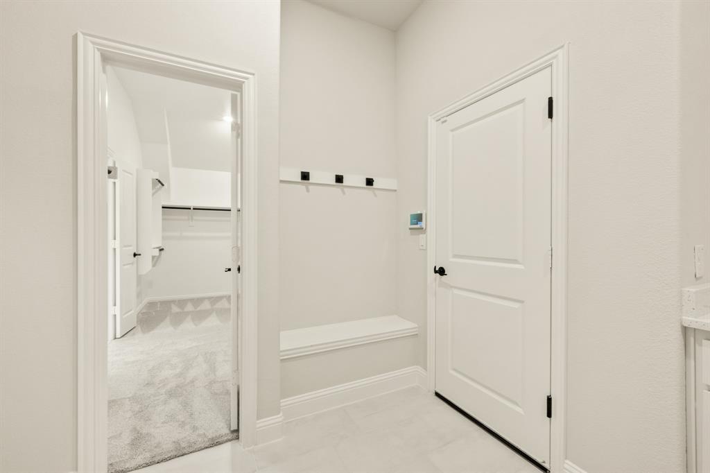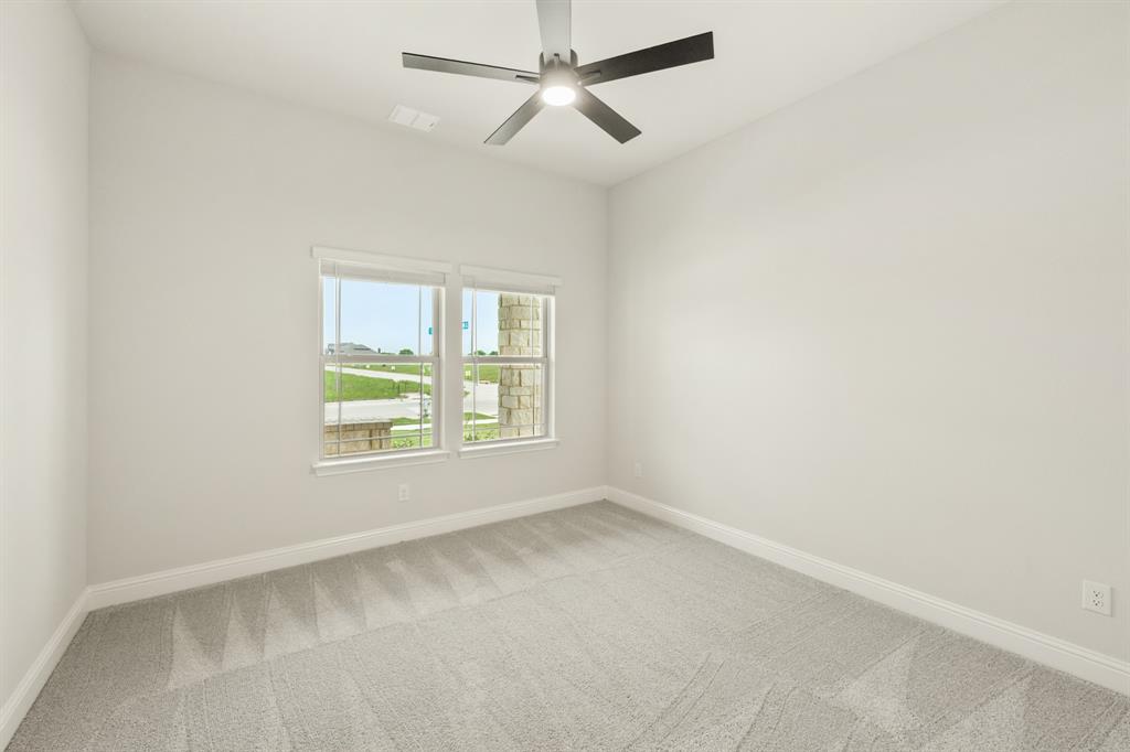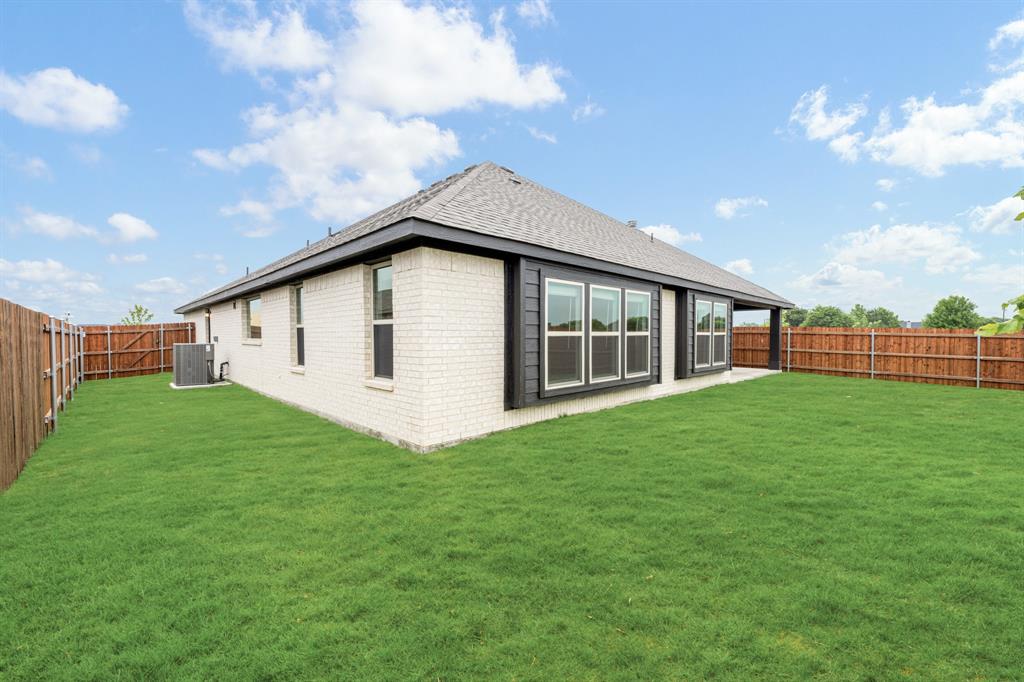 NEW! NEVER LIVED IN! Available NOW! Don’t be deceived by its size — Bloomfield’s Caraway offers 3 bedrooms, 3 baths, and a deep 2-car garage with an exterior door, pad, and light, all situated on an oversized corner lot. The stunning transitional layout features wood flooring and expansive windows that fill the open-concept space with natural light, creating a warm and inviting atmosphere. The Deluxe Kitchen is a chef’s haven, now enhanced with a white farm sink on the island, pot and pan drawers, and a custom wood vent hood to complement the built-in all-electric stainless steel appliances and sparkling Quartz countertops. A Tile-to-Ceiling Fireplace with wood-burning capabilities adds a cozy focal point to the living area, while thoughtful touches like utility base cabinets, a mud room, and blinds elevate everyday convenience. The Primary Suite offers a spa-like retreat with separate vanities and a walk-in closet that connects directly to the laundry room. On the opposite side of the home, you’ll find a spacious Formal Dining Room and two additional bedrooms, including one with an ensuite bath. The exterior impresses with a brick and stone facade, an 8' front door, uplights, gutters, and a full irrigation system, perfectly blending style and functionality. Enjoy access to community amenities and contact Bloomfield at North Grove today to learn more!