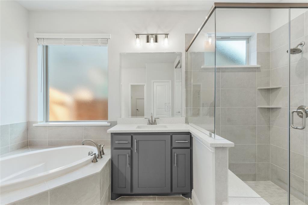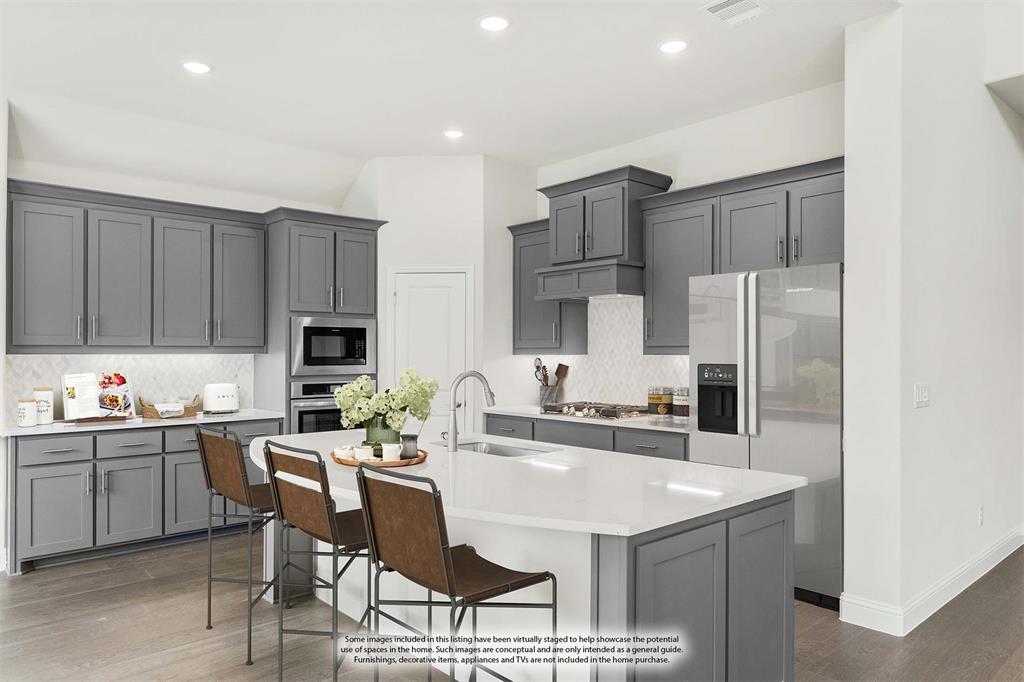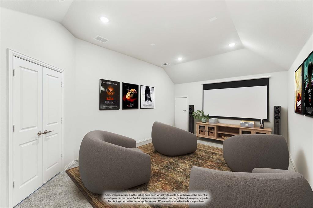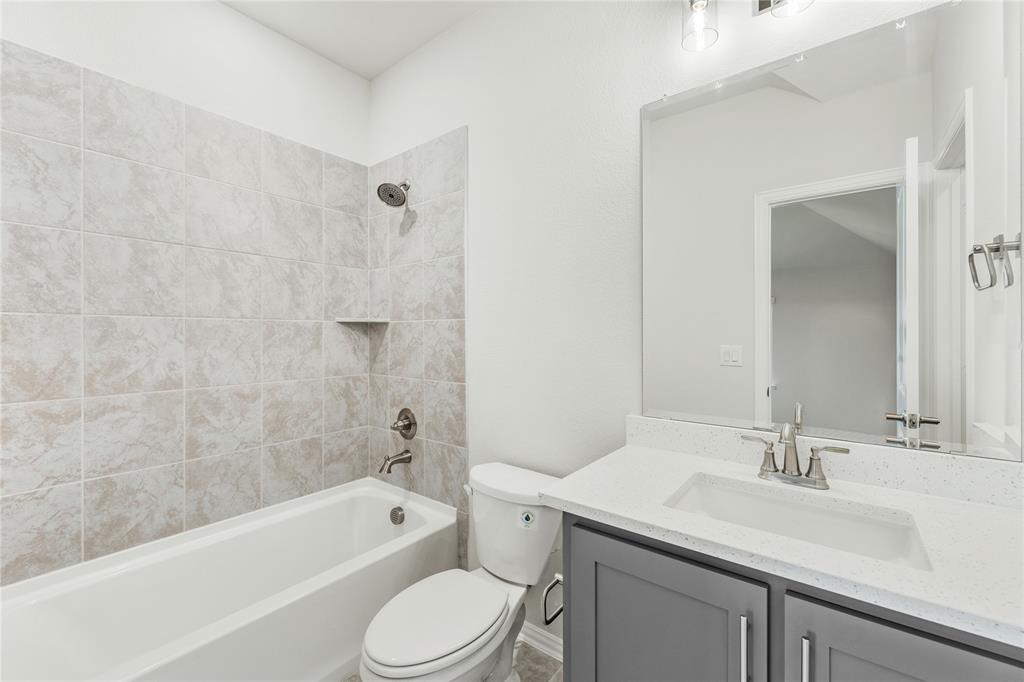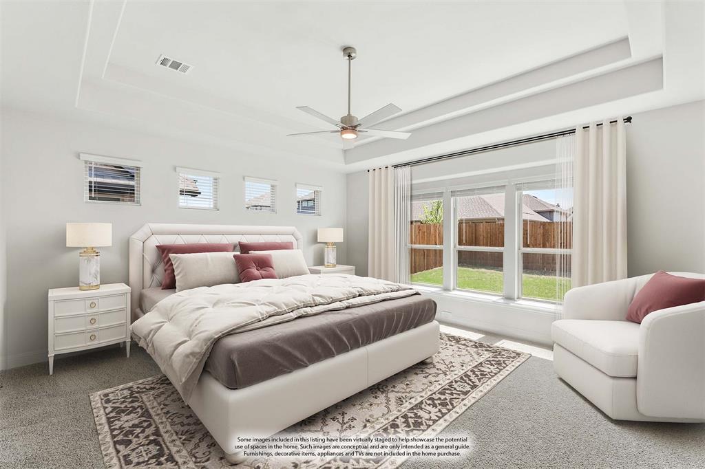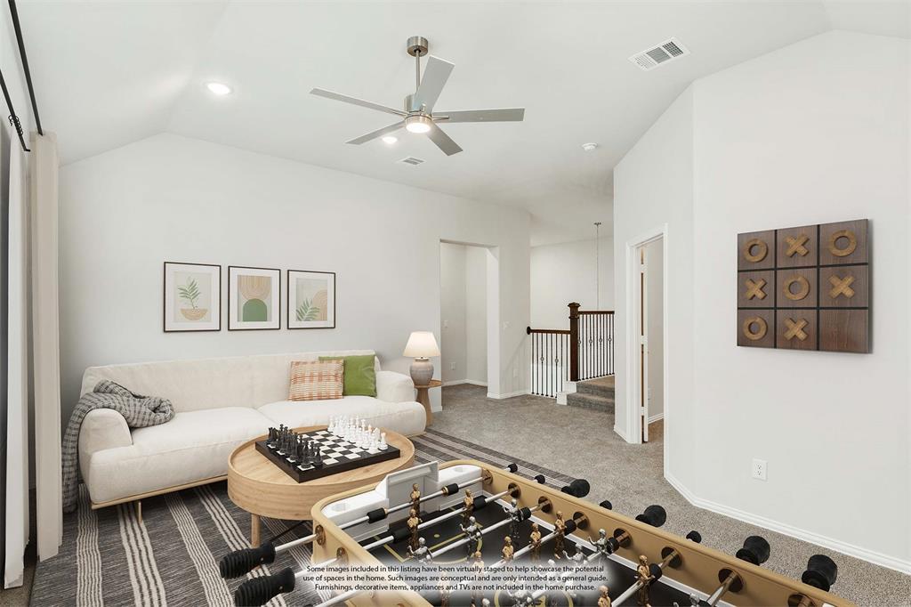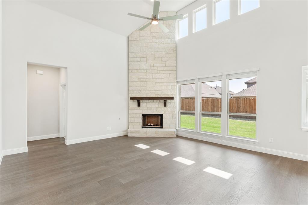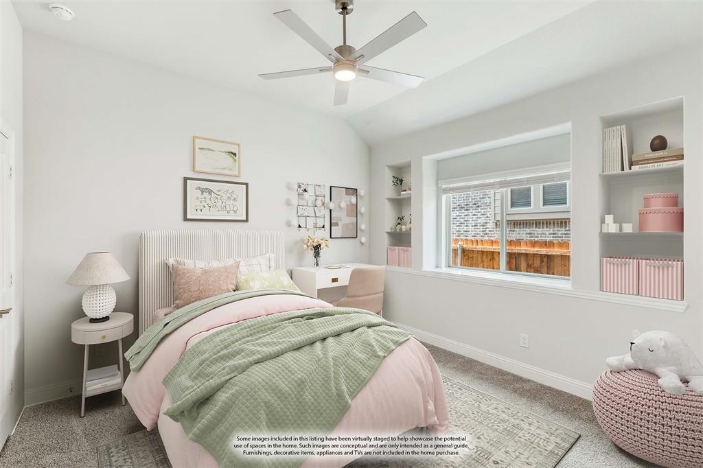 *Seller pays $15K towards closing costs or rate buy down.* NEW & NEVER LIVED IN! Introducing Bloomfield's Primrose FE VI floor plan, a stunning north-facing two-story home with a beautiful brick and stone elevation that perfectly complements its elegant design. Boasting 5 bedrooms and 4.5 baths, this home offers multiple bedrooms on both floors for ultimate flexibility. Enter through the upgraded 8' Front Door into a Rotunda Entry that sets the tone for sophistication, leading to a Formal Dining area, private Study, and a large Family Room highlighted by vaulted ceilings and a Stone-to-Ceiling Fireplace with a cedar mantel. The Deluxe Kitchen is a chef's dream, featuring SS built-in appliances, pot and pan drawers, a custom wood vent hood, and plenty of storage, while hardwood floors add warmth and charm throughout the common areas. Upstairs, versatile spaces like the Game Room and Media Room offer endless possibilities, and the mud room provides convenient storage. Situated on an interior lot, this home also includes practical features like gutters, uplights, and a gas stub on the patio for outdoor grilling. Enjoy community amenities such as trails, a playground, and a splash pad, making Legacy Ranch the perfect place to call home!