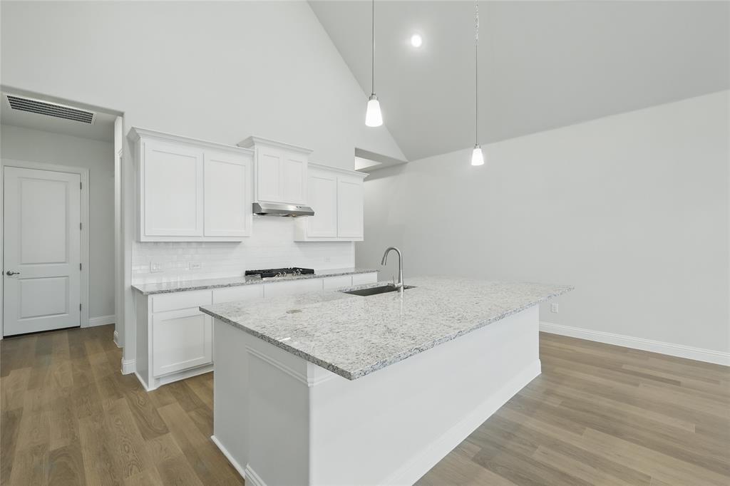 Enjoy the look and feel of a two-story home - thanks to the tallest ceilings - without ever climbing the stairs! The Vanderbilt plan offers an impressive 2,606sqft of thoughtfully designed living space, combining comfort and style in a way that perfectly suits modern lifestyles. From the moment you enter, you're greeted by a welcoming open foyer with soaring ceilings that create a sense of grandeur and openness. This inviting entrance seamlessly leads into a bright and airy open-concept kitchen that serves as the heart of the home. Crafted with both everyday living and entertaining in mind, the kitchen features a generously sized pantry, providing ample storage for all your culinary needs. A large central island becomes the natural gathering spot, offering additional counter space and seating while overlooking the expansive great room. Whether you're hosting family dinners or casual get-togethers, the adjacent casual dining area is filled with natural light, making it an ideal setting for meaningful conversations and shared meals. Retreat to the private owner’s suite, a true sanctuary tucked away from the main living areas for enhanced privacy. This luxurious suite boasts a spacious closet with built-in shelving for optimal organization, and a spa-like ensuite bathroom designed for relaxation. Pamper yourself with a long soak in the deep soaking tub, or refresh in the oversized shower, complete with a sleek frameless glass panel for a modern touch. Situated at the front of the home are three additional bedrooms and two full bathrooms, offering comfort and convenience for family members, guests, or even a dedicated home office or hobby space. With easy access to both I-20 and I-30, commuting to Fort Worth’s vibrant city center is a breeze, offering the perfect balance for professionals and families. Just a short drive down Highway 377 leads you to Benbrook Lake, where outdoor adventures such as fishing and boating await, surrounded by breathtaking views.