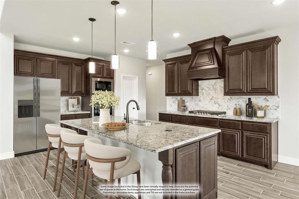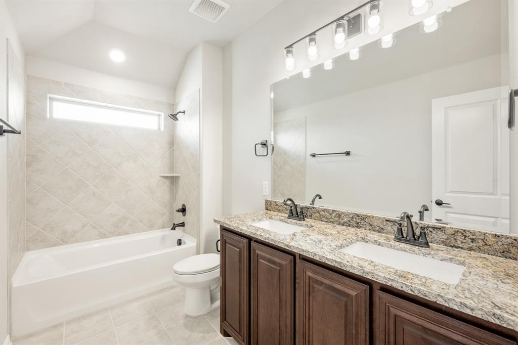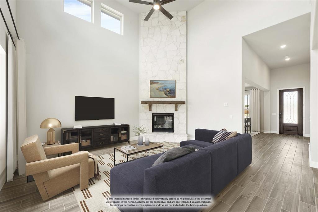 *Contact Community Manager for incentives!* NEW BUILD! NEVER LIVED IN. Ready NOW! The stunning Spring Cress II by Bloomfield blends open-concept living with thoughtful details, soaring vaulted ceilings, and a beautifully crafted brick and stone front elevation with a swing-entry design and cedar garage doors, all set on a desirable interior lot. The heart of the home is the Deluxe Kitchen, showcasing upgraded Granite countertops, an upgraded DECO backsplash, a wood vent hood, pot and pan drawers, a 5-burner cooktop, and Double Ovens, illuminated by three elegant pendant lights over the island. The Family Room is anchored by a striking Stone-to-Ceiling Fireplace with a cedar mantel, creating a warm and inviting centerpiece. Wood-look ceramic Tile flooring flows throughout all presentation areas, adding durability and charm. The main floor includes two bedrooms, including a luxurious Primary Suite with spa-like finishes, while the second bedroom enjoys the convenience of its own bath. Upstairs, the Game Room, Media Room, and three additional bedrooms with walk-in closets offer plenty of flexibility for living and entertaining. Additional highlights include a mud room, window seats, natural gas heat, a tankless gas water heater, an 8' front door, and uplights for enhanced curb appeal. Residents enjoy access to a community swimming pool and five parks, making this home a perfect blend of luxury, comfort, and community. Visit Bloomfield in The Oaks to experience this impeccable home today!