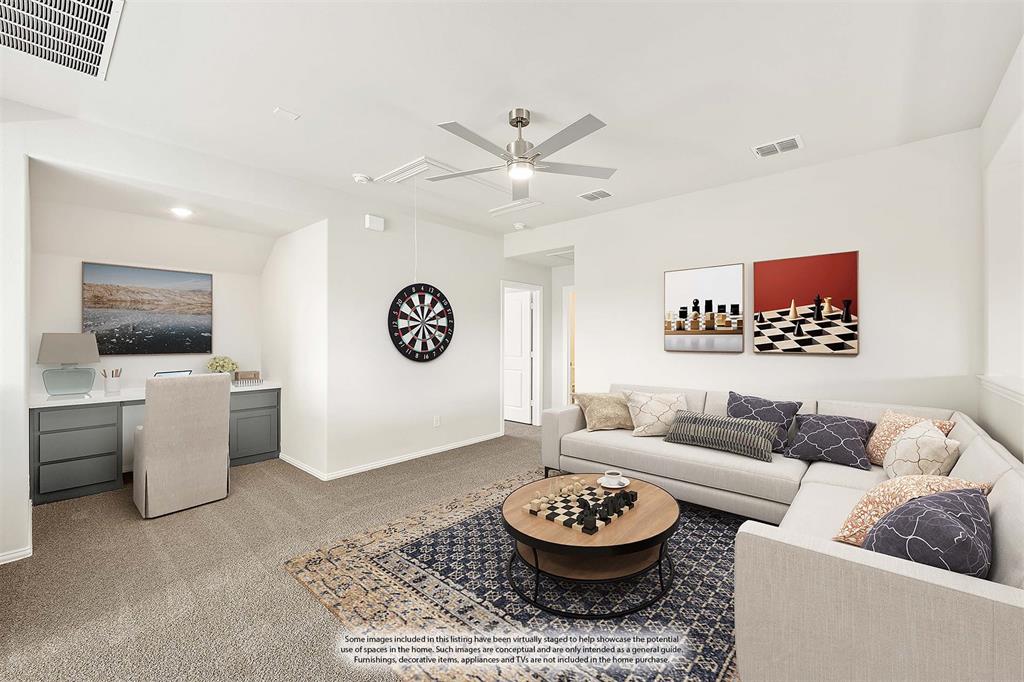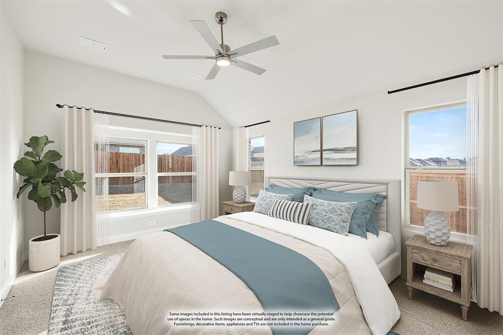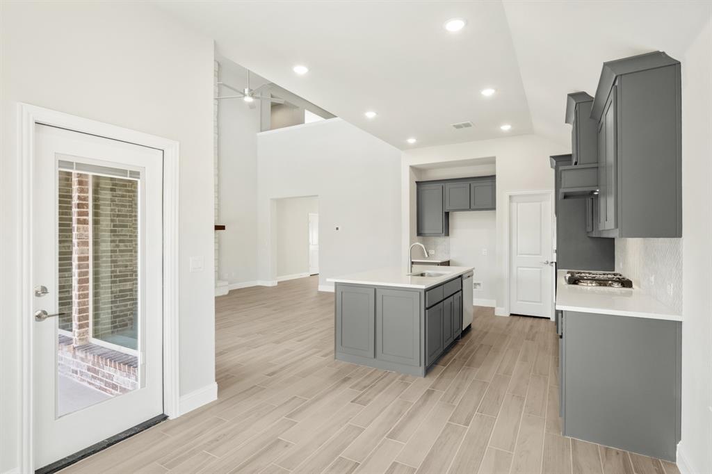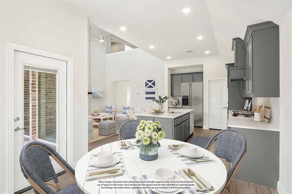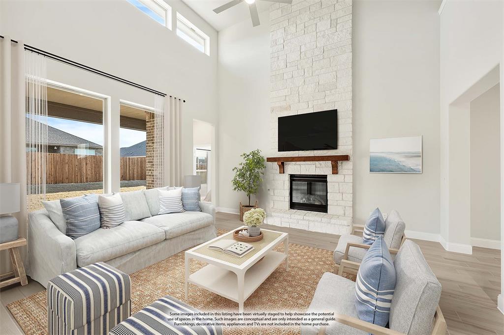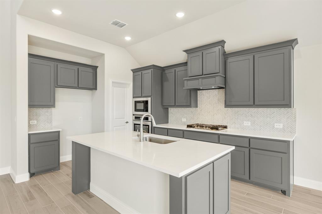 *$10K on Closing Costs + Price Reductions.* NEW! NEVER LIVED IN. Move In Ready! Explore the Violet II plan by Bloomfield, an all-brick elevation home situated on a scenic greenbelt lot with stunning park and lake views, enhanced by a metal fence in the backyard for uninterrupted enjoyment. This thoughtfully designed home offers 4 bedrooms and 3 baths, with 2 bedrooms and 2 baths conveniently located downstairs. Beauty meets functionality with extended Wood-look Tile floors flowing through the main areas, soaring vaulted ceilings, and a Stone-to-Ceiling Fireplace with a cedar mantel that anchors the Family Room, which is bathed in natural light from large windows. The Deluxe Kitchen impresses with upgraded stainless steel appliances, Quartz countertops, upgraded cabinets, a spacious island, pot and pan drawers under the gas cooktop, and a custom wood vent hood, all complemented by a walk-in pantry for exceptional storage. The Primary Suite provides a tranquil retreat with a separate tub and shower, while a spacious laundry room with mud space adds convenience. An Extended Garage Depth offers additional storage or parking, and a large outdoor living area overlooking the creek provides the perfect setting for relaxation. A tankless water heater and all-gas stainless steel appliances complete this home's modern comforts. Visit Sable Creek today to see this exceptional property!
