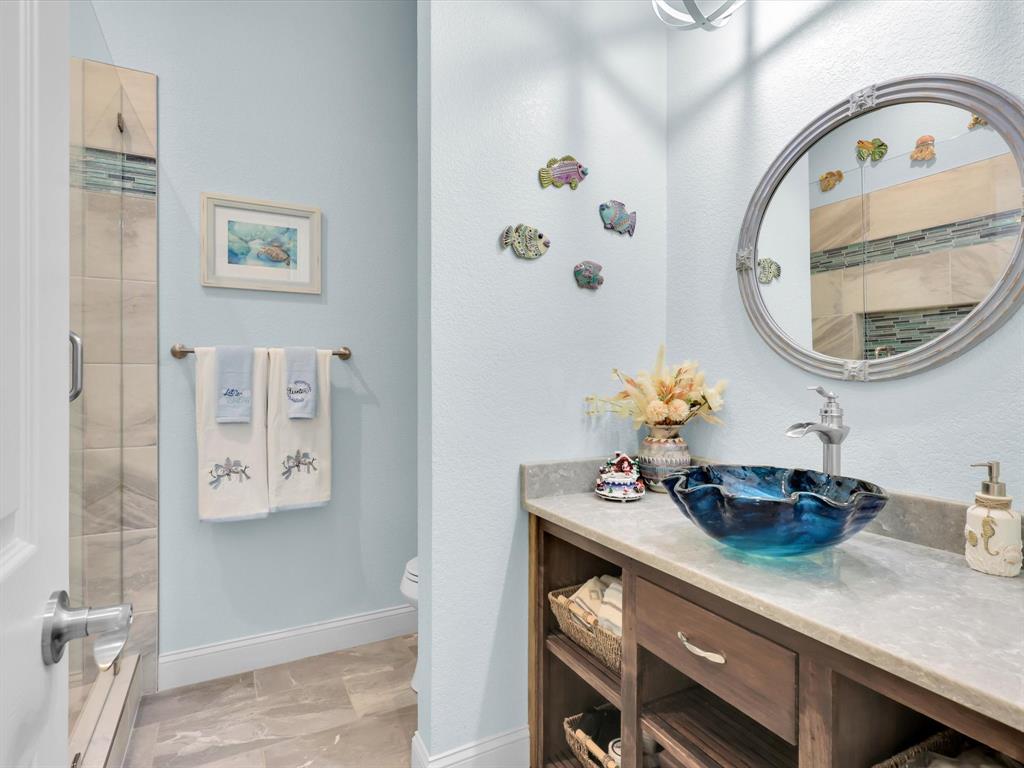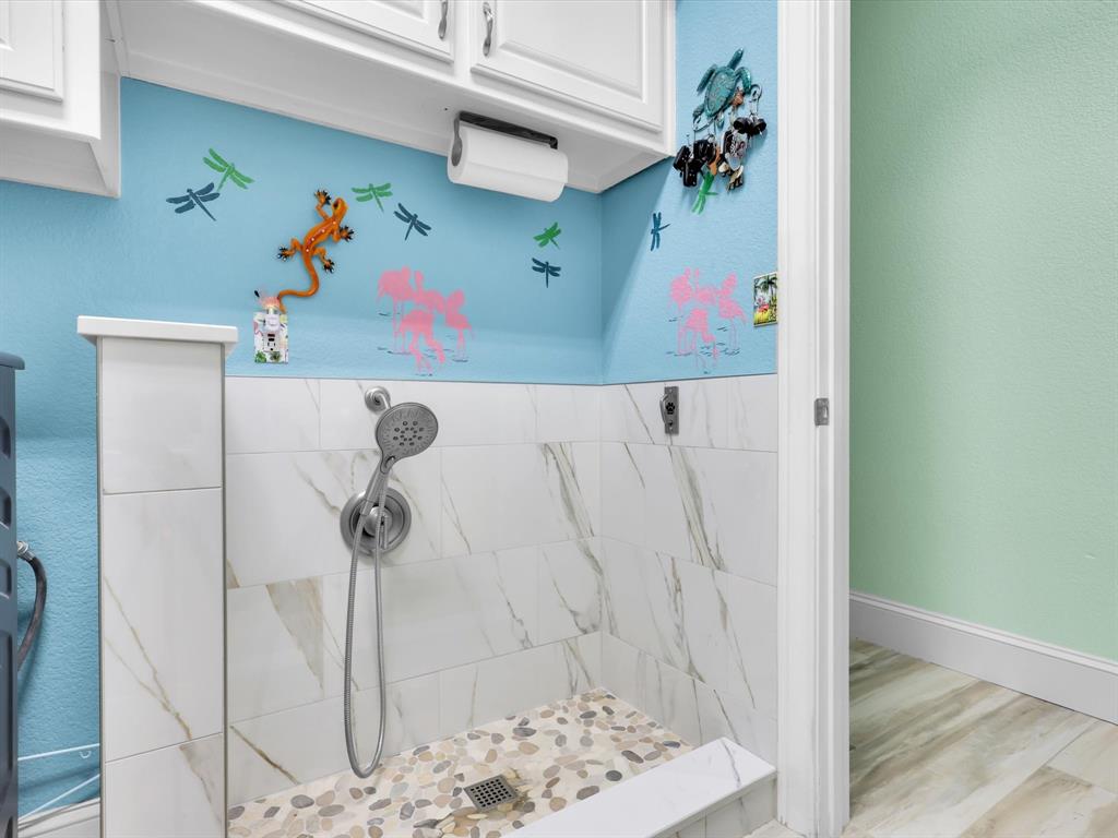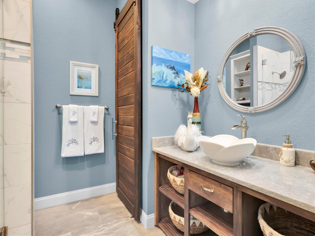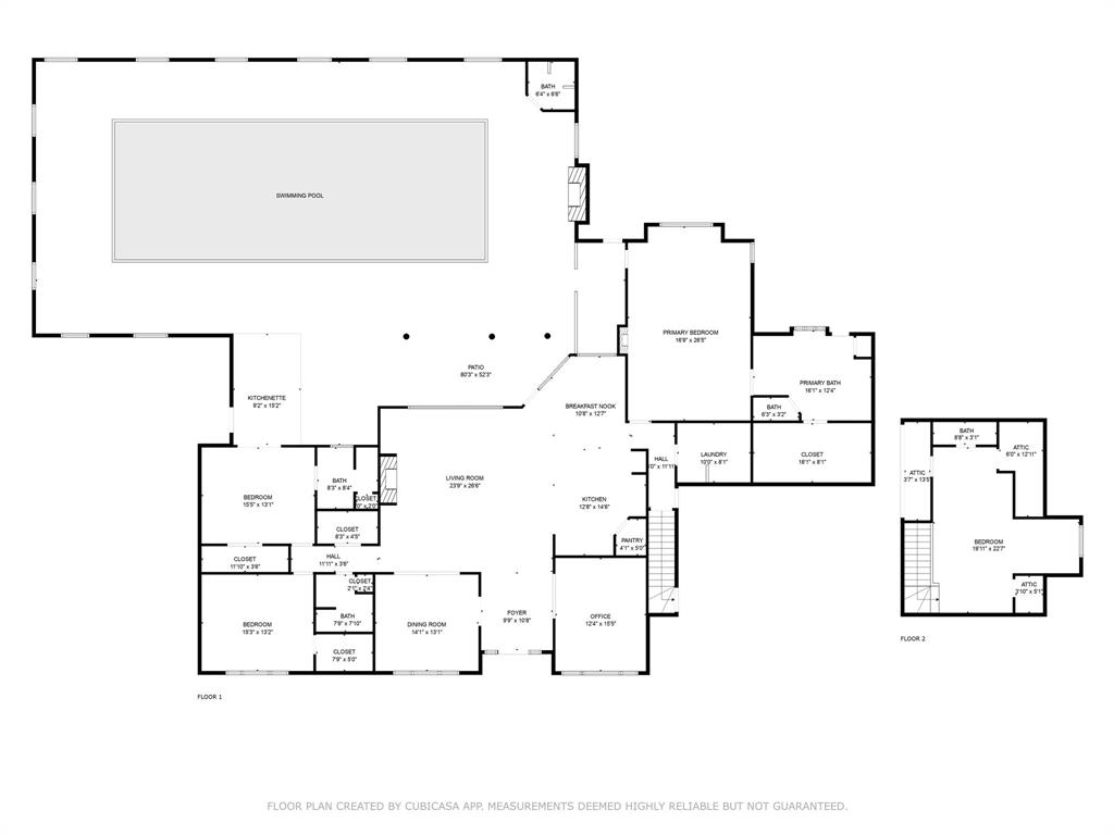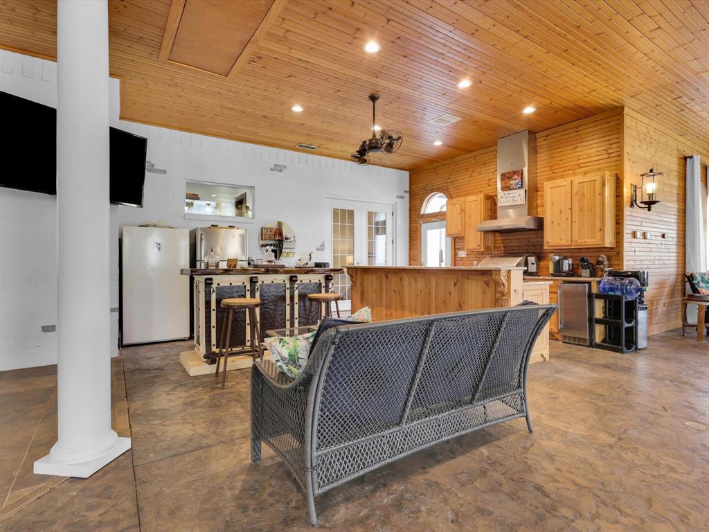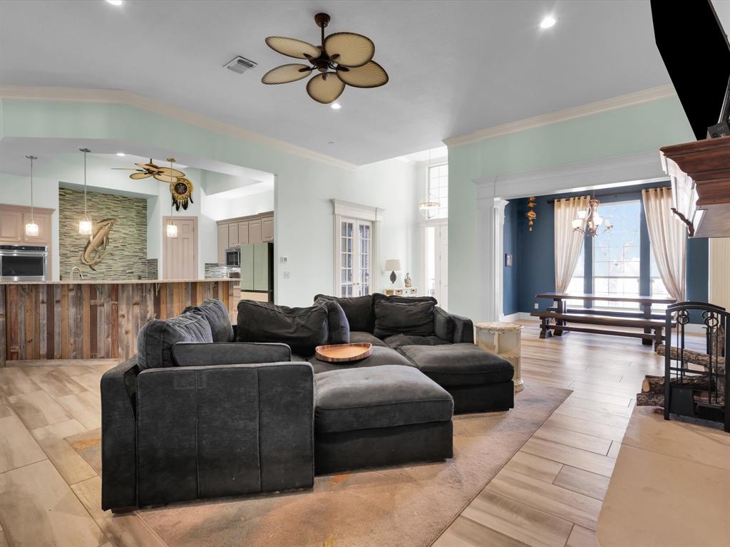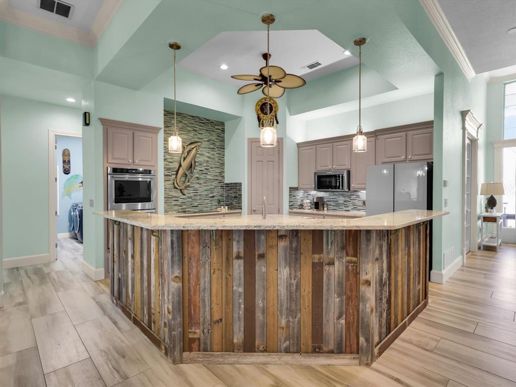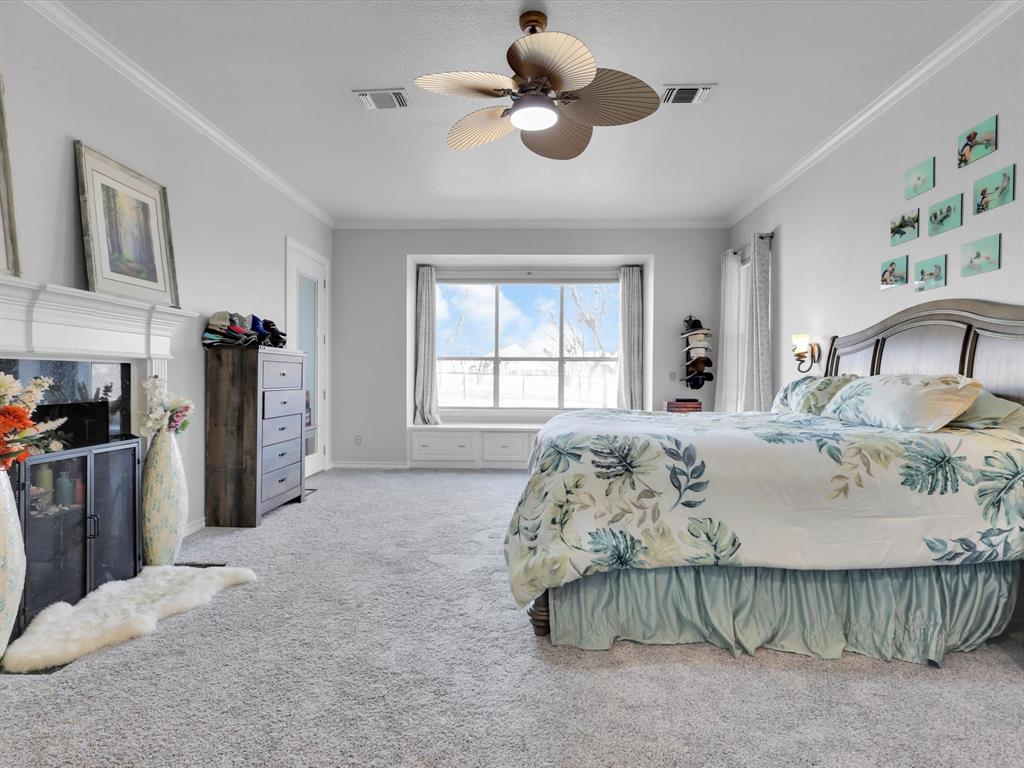 RARE FIND WITH AN INDOOR POOL! This property is a masterfully renovated estate offering over 7300 square feet of sophisticated living on 3.36 fully fenced acres in prestigious, amenity rich, Pecan Plantation. From the moment you arrive, this distinguished property commands attention with mature pecan trees, and serene natural surroundings frequented by deer and local wildlife. Designed for refined living and effortless entertaining, this 4 bedroom, 4.5 bath residence offers an extraordinary layout including 2 beautiful primary suites, one featuring a bath with soaking tub, oversized shower, and remote controlled electric shades for privacy and comfort. A dedicated executive office is richly appointed with custom wood accents and a striking accent ceiling, creating the ideal space for remote work or quiet study. The heart of the home is a chef's dream: a sleek, modern kitchen outfitted with quartz countertops, a double oven, induction stove, and generous prep and storage space, all seamlessly integrated into the open concept living area with floor to ceiling windows that flood the space with natural light. One of the property's most remarkable features is the indoor pool, accessible directly from the main living area. This luxurious retreat is complete with a full kitchen, full bathroom, cozy fireplace, and a dedicated dehumidification system creating a private, climate controlled oasis of year round entertainment. Additional highlights include a spacious 3 car garage with new doors, a brand new roof, solar panels for energy efficiency, and a laundry room featuring a custom dog washing station. Equestrian enthusiasts will appreciate the 2 stall horse barn, while residents enjoy exclusive access to the community's golf course, tennis courts, marina, trails, parks and clubhouse, all within a secure gated environments. Every detail of this estate reflects a commitment to quality, comfort and modern elegance, and delivers a combination of luxury, lifestyle and location.