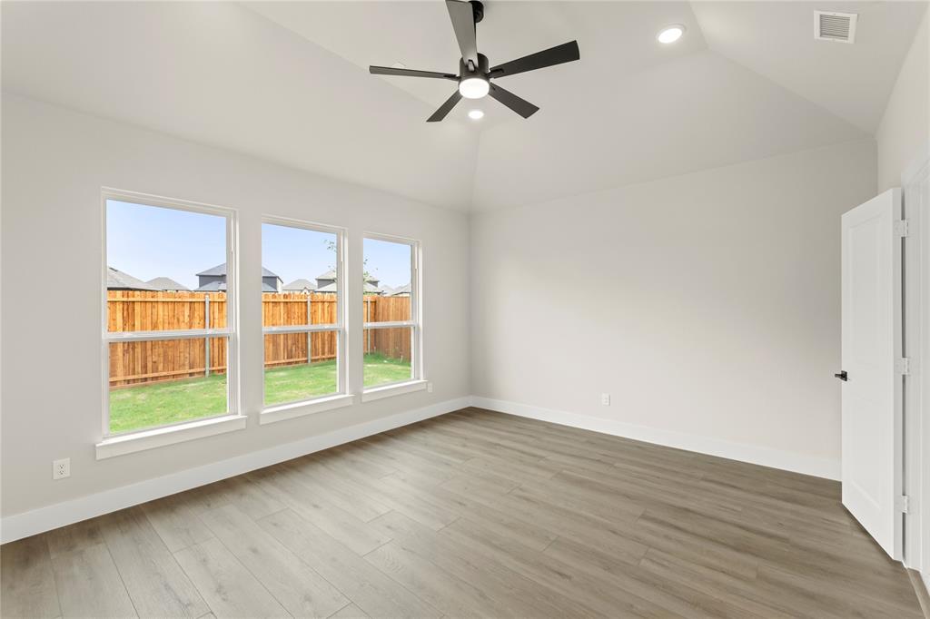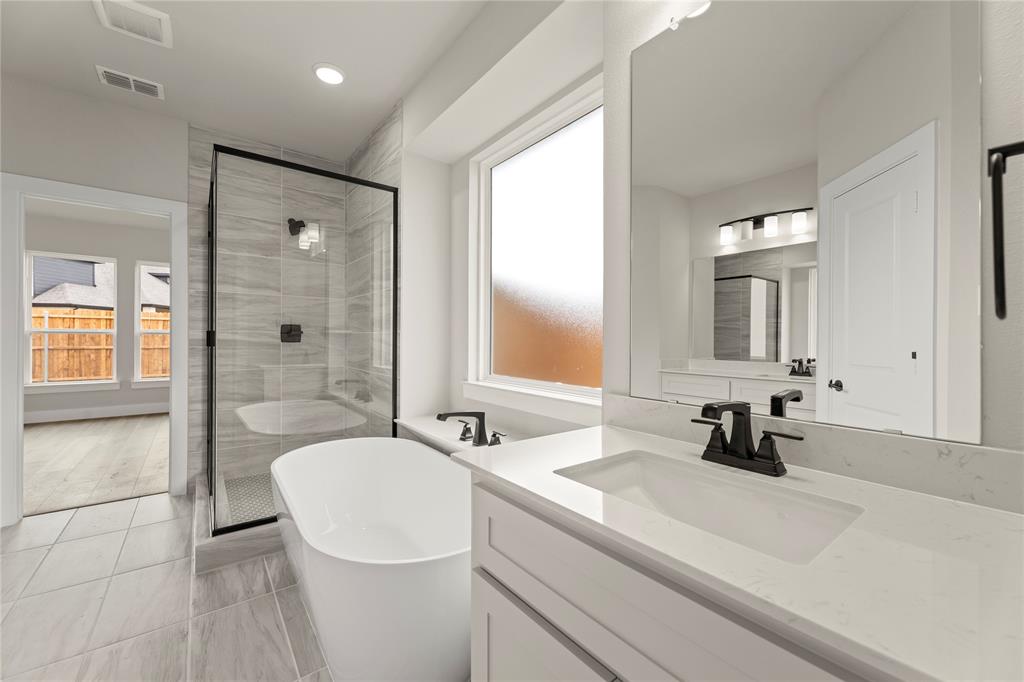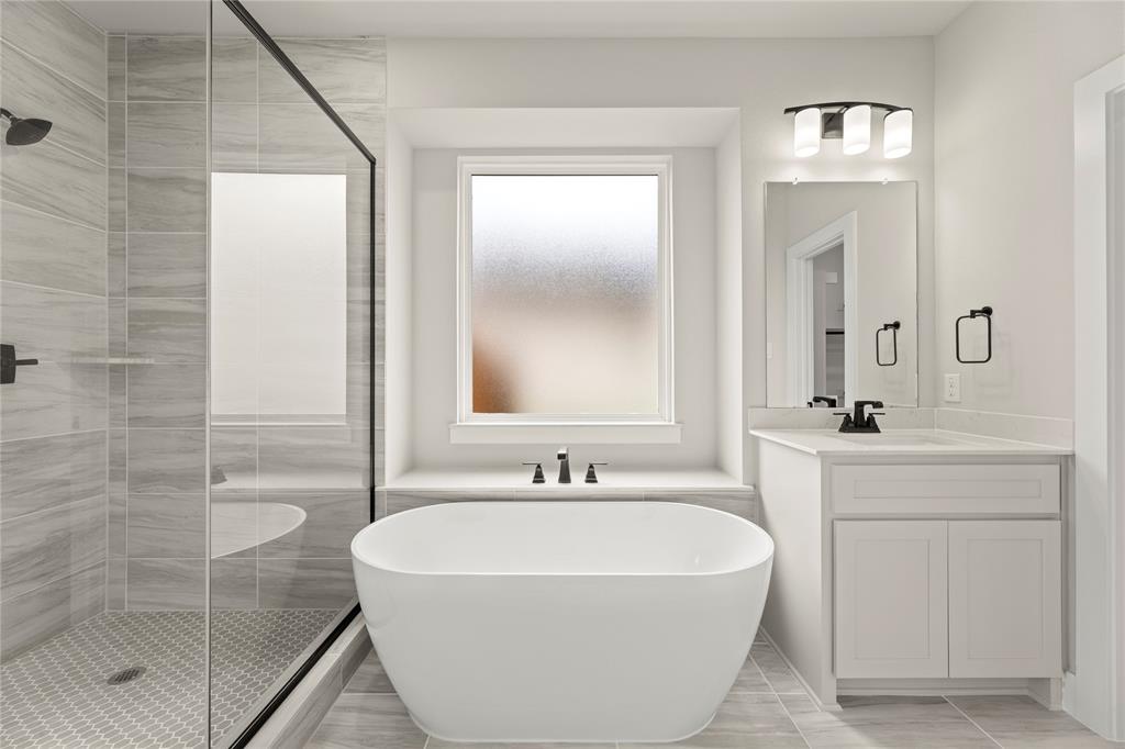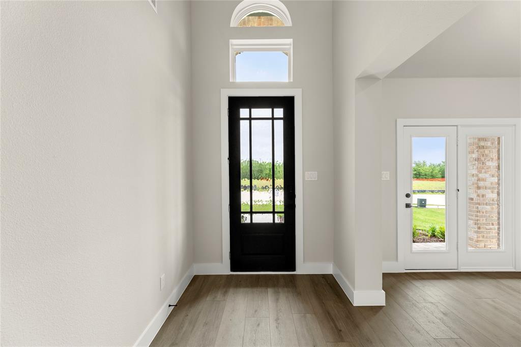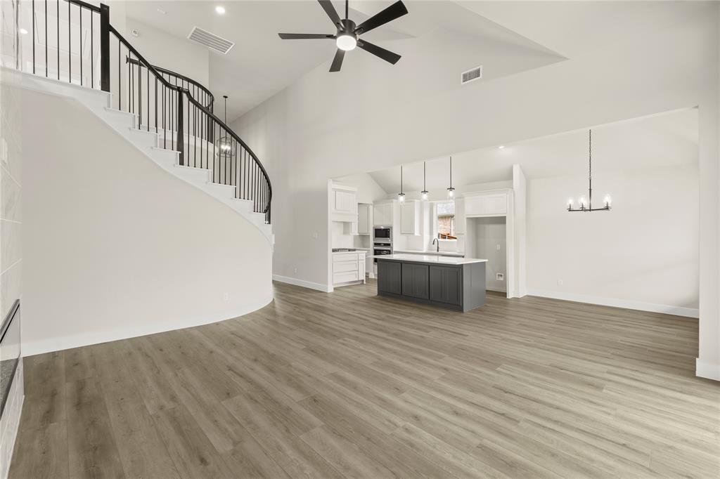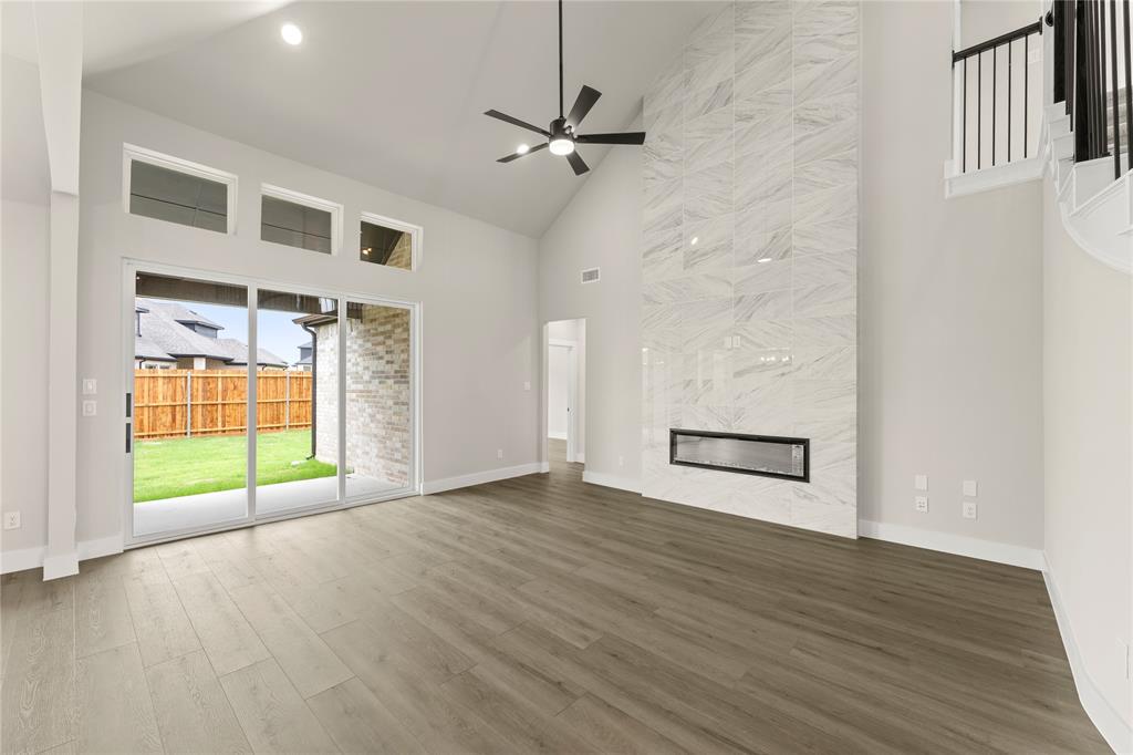 MLS# 20820921 - Built by First Texas Homes - Ready Now! ~ Up To $20K Closing Cost Assistance for Qualified Buyers on Select Inventory! See Sales Consultant for Details!Stunning 5-bedroom estate showcases an elegant upgraded elevation with welcoming front porch and extended back patio. The gourmet kitchen features a striking Blanco diamond sink, 5-burner gas cooktop, wood hood, and contrasting island with stylish pendant lighting. Premium finishes include shaker cabinets, ceiling-height fireplace, and luxury vinyl flooring in main living areas. The primary suite boasts modern LED lighting and upgraded tile. Upstairs offers plush carpeting with premium padding. Additional highlights include a 3-car garage, utility room storage, and refrigerator cabinet. This meticulously designed home perfectly balances luxury and functionality.