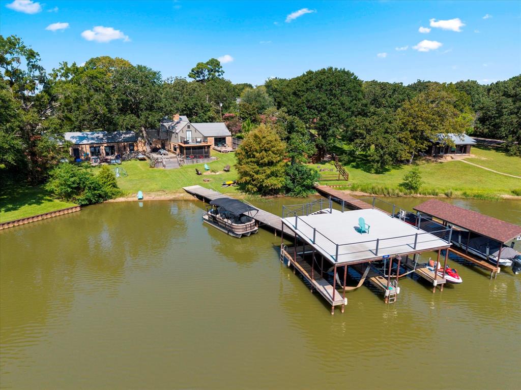 This stunning lakeside property on Cedar Creek Lake offers the perfect blend of rustic charm and modern updates. With five spacious bedrooms, three and a half bathrooms, an office, and three living areas, there's plenty of room for family and guests to relax and enjoy lake life. The heart of the home features a custom late 1800s saloon bar from Missouri, adding a unique, historical touch to the spacious kitchen. The primary suite is a retreat in itself, complete with a must-see bathroom. Outside, the boathouse includes two boat slips, a personal watercraft lift, and a top deck with breathtaking views, making this the perfect year-round waterfront property. From cozy indoor living areas to spacious outdoor decks and waterfront amenities, this home is designed for entertaining and creating lasting memories. Full time living, 2 hour notice required for all showings.
