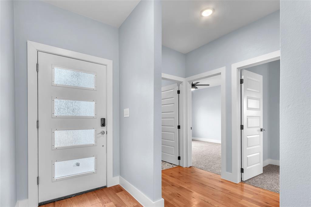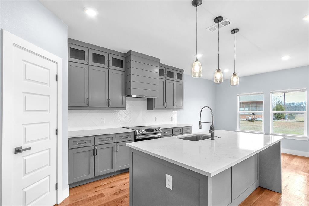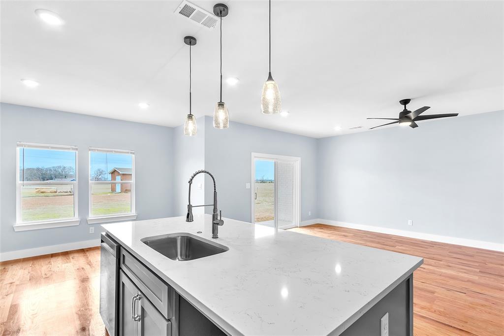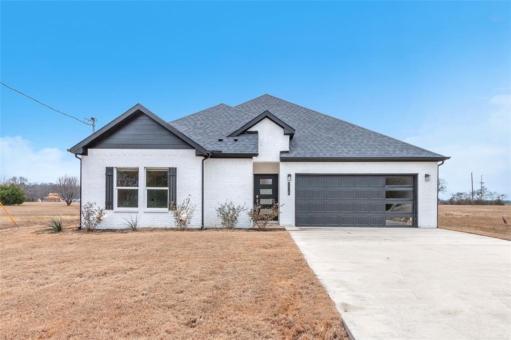 Another quality New Home by Emerald Home Developers with trending black and white exterior featuring upscale front door and garage door. The 3-2-2 Open Plan with 9 ft ceilings throughout offers an abundance of windows providing natural light and the White Oak Hardwood Floors are a show stopper. The Dream Island Kitchen shows off a shiplap range hood, quartz countertops, a beautiful herringbone pattern backsplash, ample cabinets and a pantry. The private Primary Bedroom enjoys an ensuite bath complete with dual sinks, a tub, separate stunning tiled shower and a huge walk-in closet. Two additional bedrooms share another gorgeous bath. Even the Laundry Room has an elegant floor tile pattern. Designer touches and upscale finishes are evident throughout this custom home. Come enjoy the peaceful country setting and the pleasure of living in a lake community. Don't wait! Pricing on this one is awesome!
