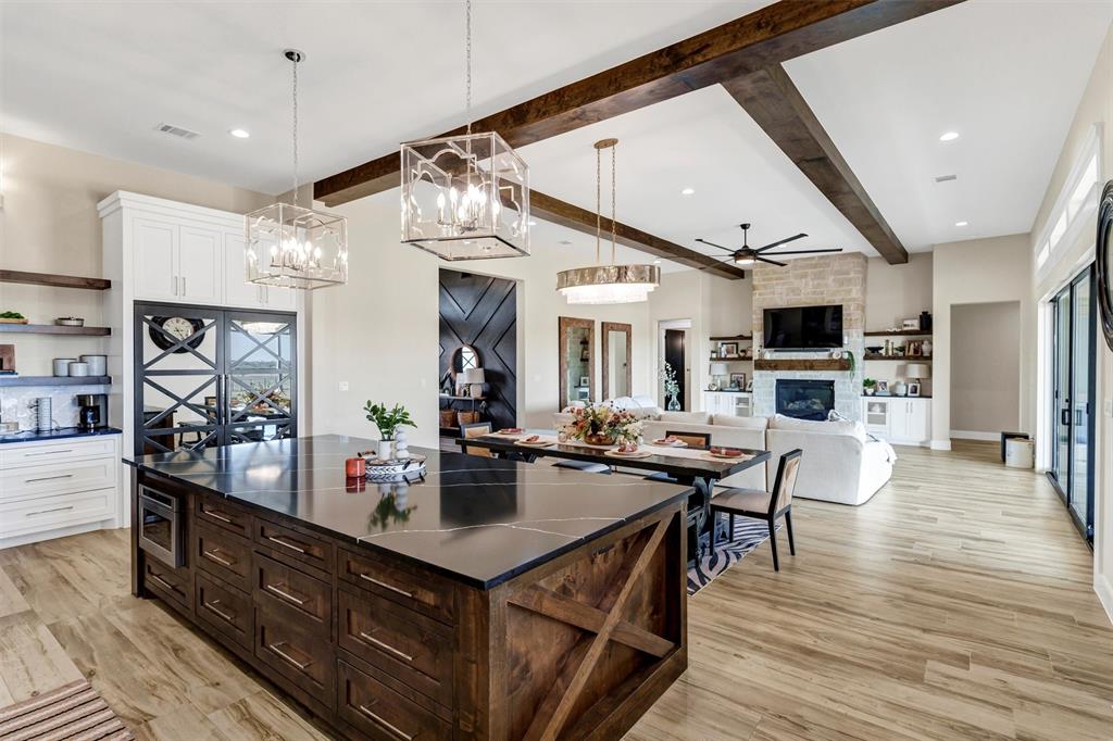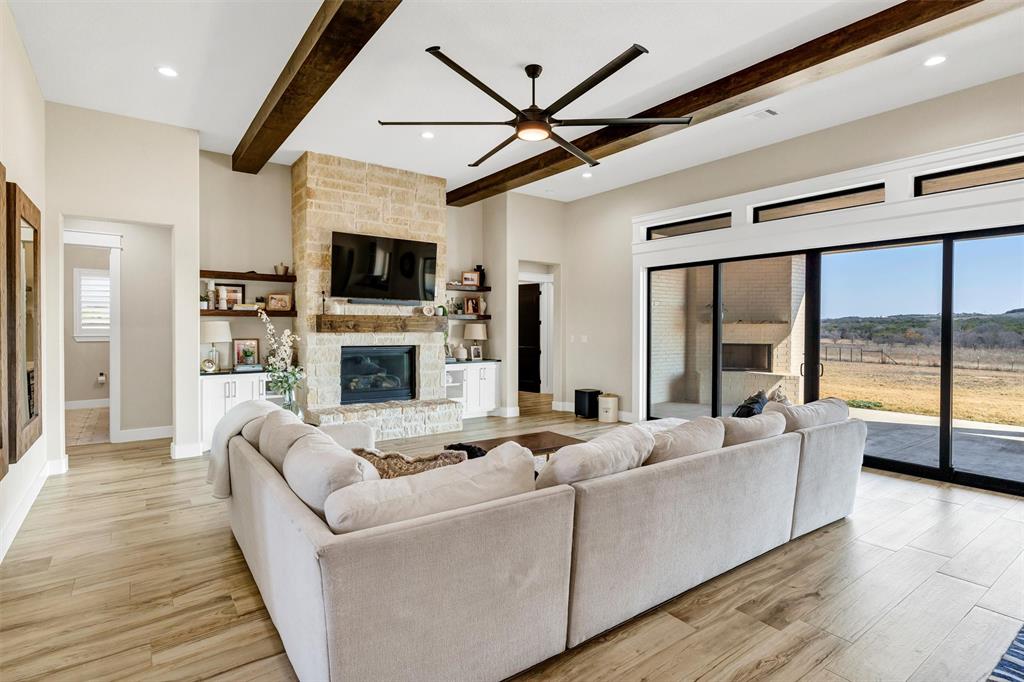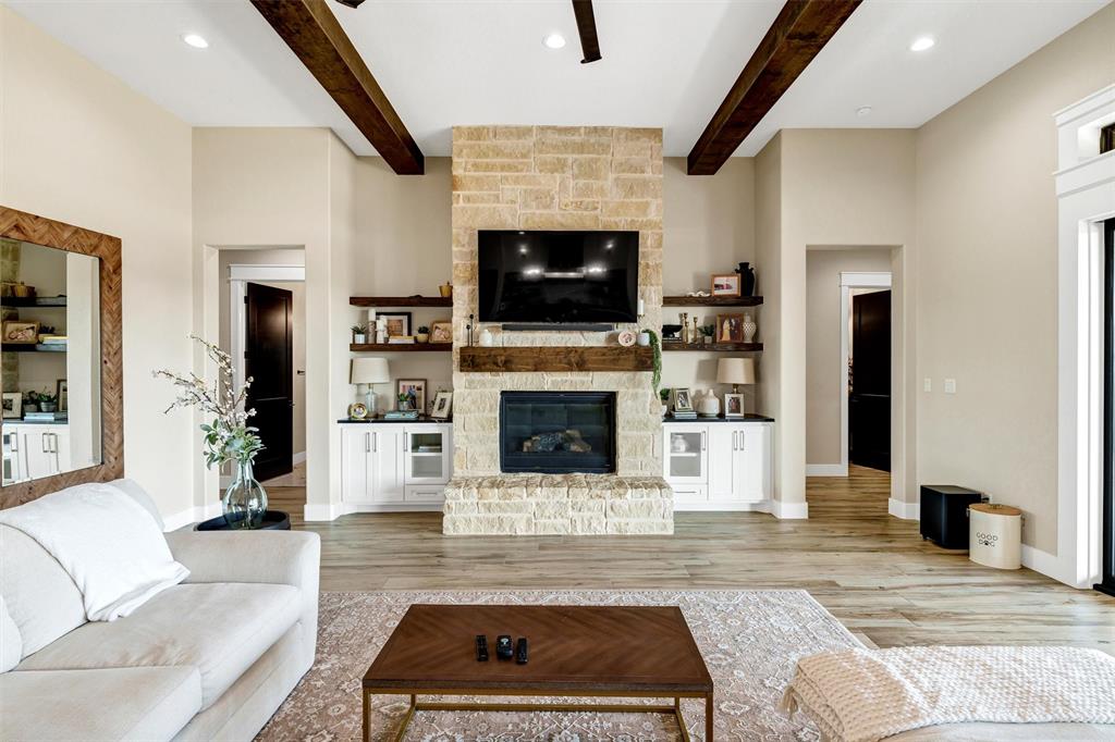 Cozy up by the stone fireplace in the living room or slide open the glass doors to your backyard oasis—yep, there’s even an outdoor kitchen! And let’s talk about that massive primary closet…it’s practically its own wing. Set on a generous 2-acre lot with 3-car garage space and sweeping views, this 3,761 sqft beauty blends wide-open Texas skies with upscale comfort.