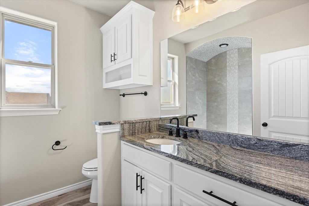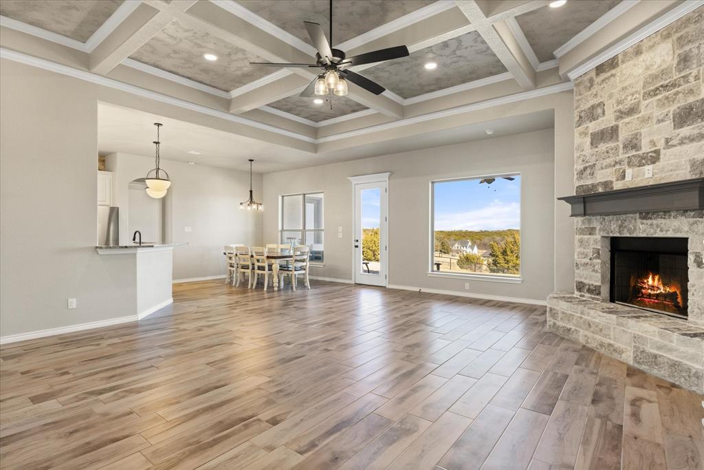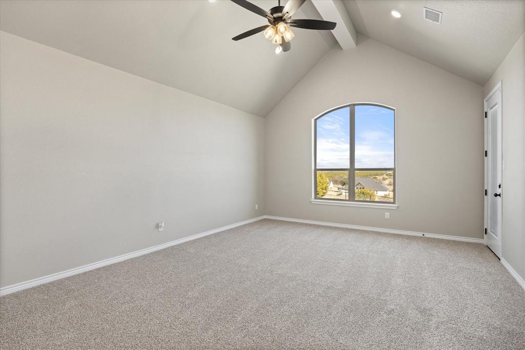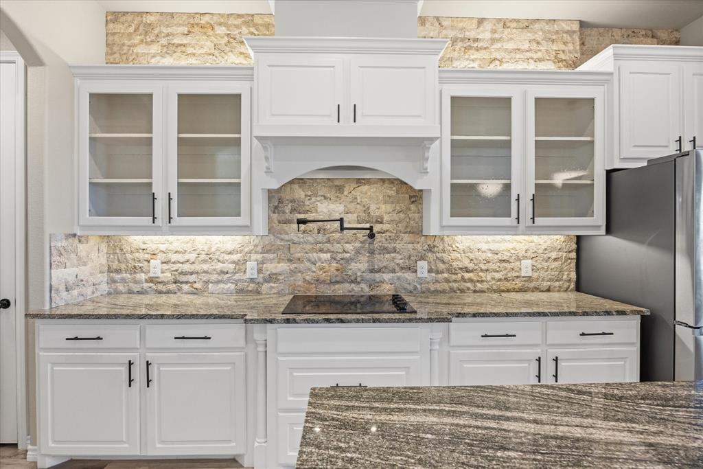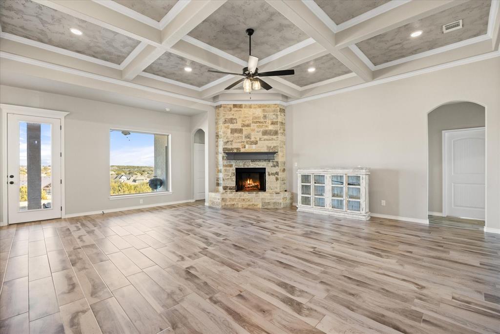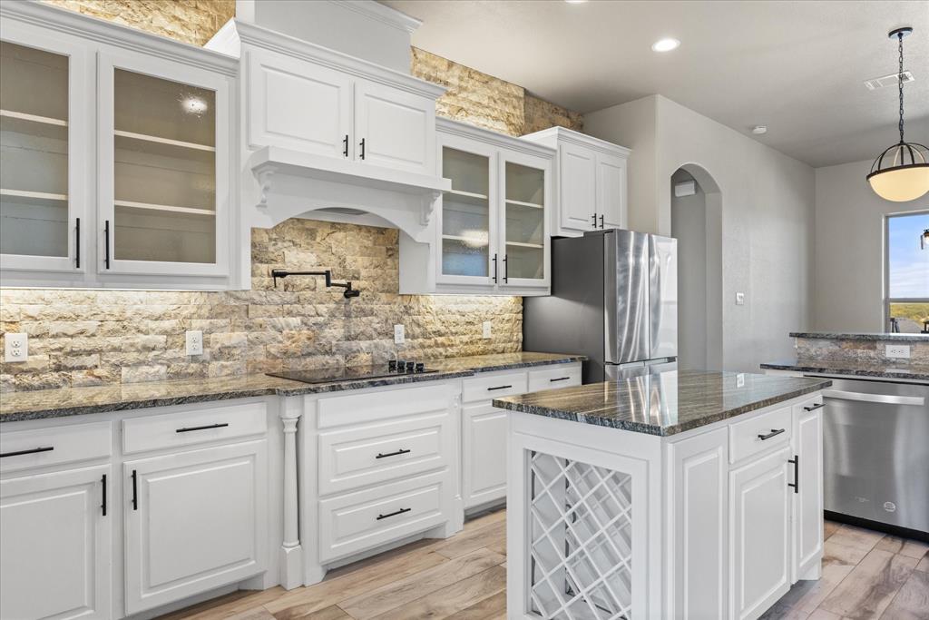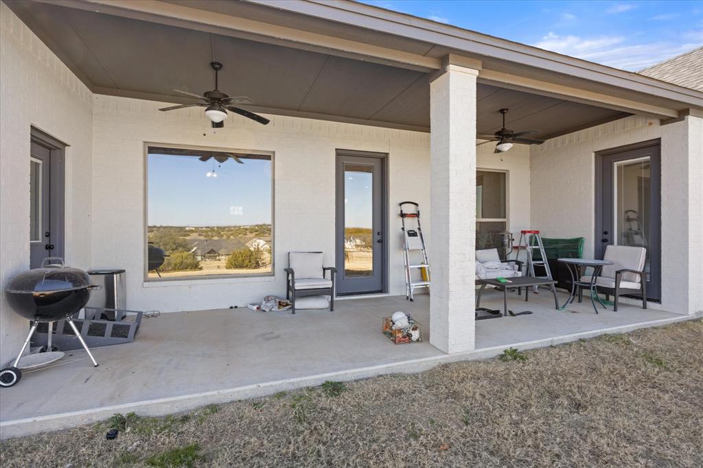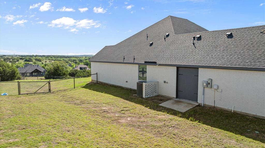 HUGE PRICE REDUCTION!! BRING AN OFFER!! Custom built home in prestigious Rolling Creek Ranch. This beautiful custom home built in 2022 features a modern layout and high-end features. With a modern gray paint-scheme and design, it offers tiled flooring, custom coffered ceilings, custom cabinetry and trim, huge chef's kitchen with counter to ceiling stone backsplash, large island and double ovens and large walk-in pantry, large master suite with his-and-her master closets that connect directly to the expansive laundry room, 3 spare bedrooms with 3 full baths, a dedicated office and dining room with a breakfast room off the kitchen. This home is perfect for a large family or for entertaining guests and family. Situated at the top of a hill that overlooks lake Granbury on an over 1 acre lot. The backyard is expansive offering huge possibilities with plenty of room for a pool or out-building. A rear-entrance garage door for your golf cart or lawn equipment is available as well. Built with efficiency in mind with double-paned windows, efficient HVAC, tons of insulation, efficient SS Energy Star appliances all means huge savings on your utilities. Come enjoy the pristine serenity of this quiet subdivision today!