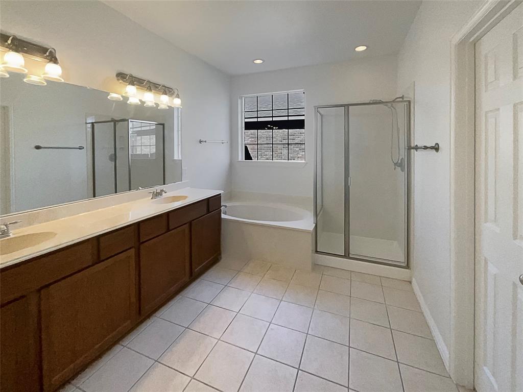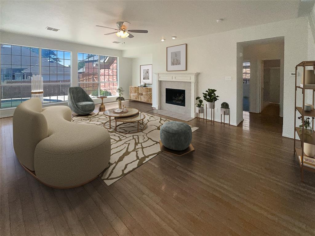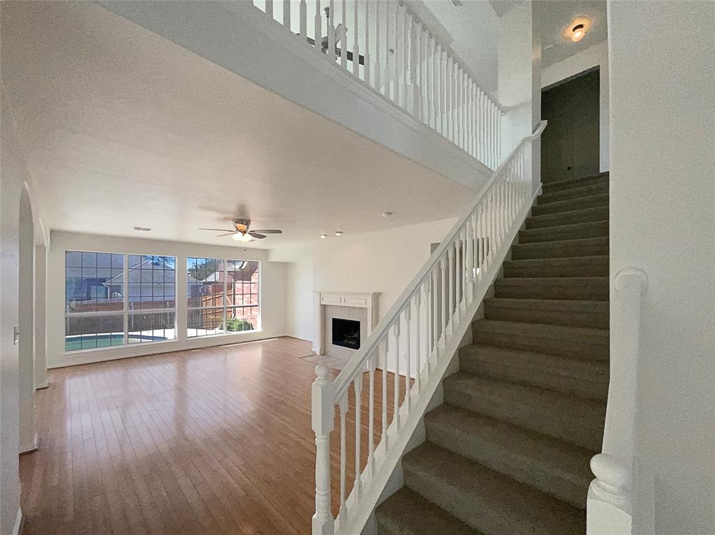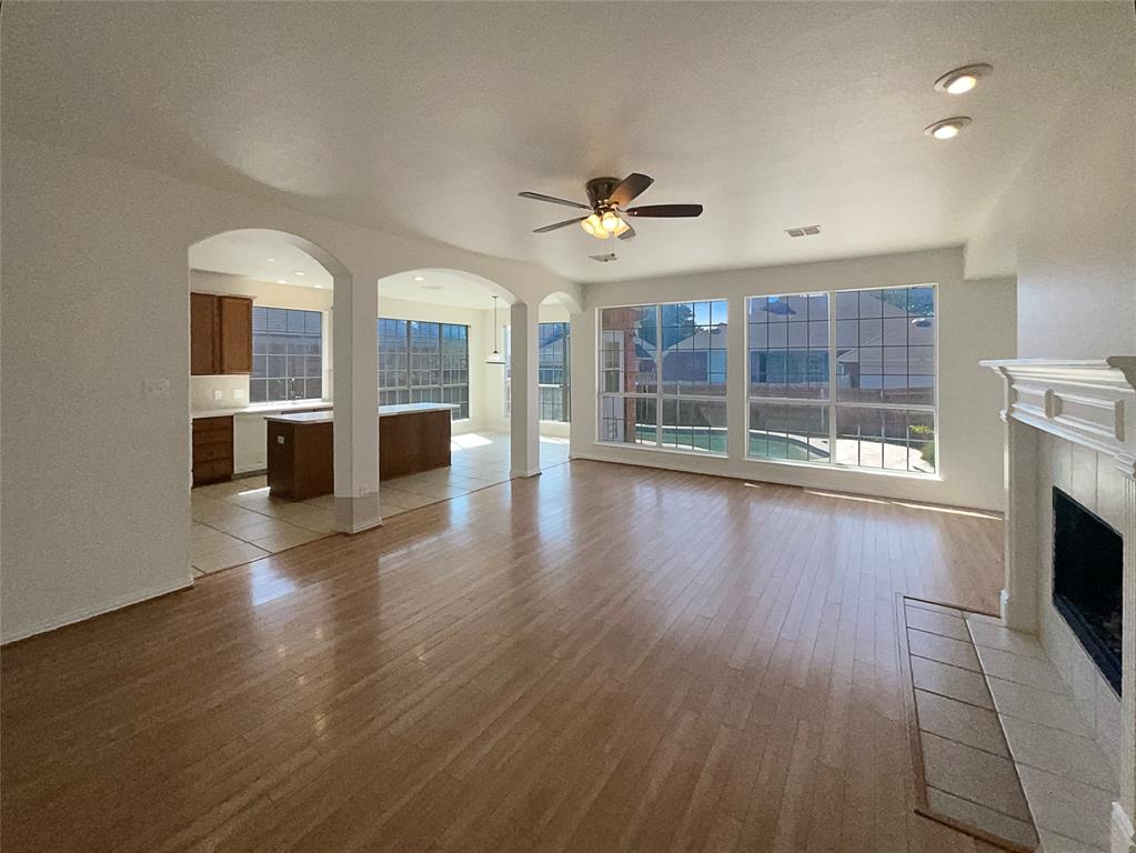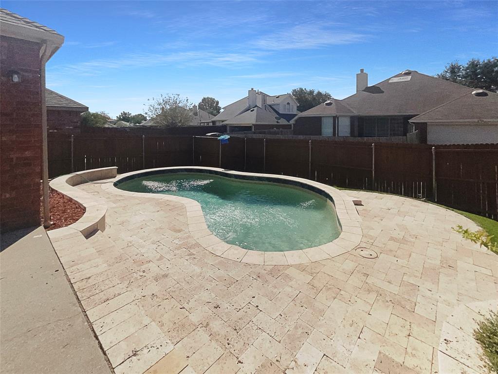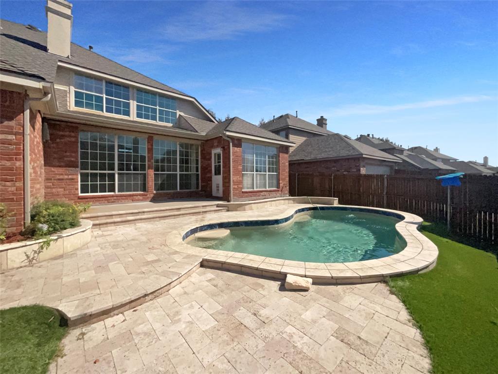 Welcome to this elegant property, featuring a warm fireplace that enhances the charm of the neutral color scheme. The kitchen island serves as a focal point, complemented by an accent backsplash that adds a stylish touch. The primary bathroom is a haven of relaxation, equipped with double sinks and a separate tub and shower. Enjoy outdoor living on the patio, take a dip in the private in-ground pool, or relax in the fenced backyard. With fresh interior paint and partial flooring replacement, this home is refreshed and ready for you. Don’t miss this unique opportunity to make this property your own! This home has been virtually staged to illustrate its potential.