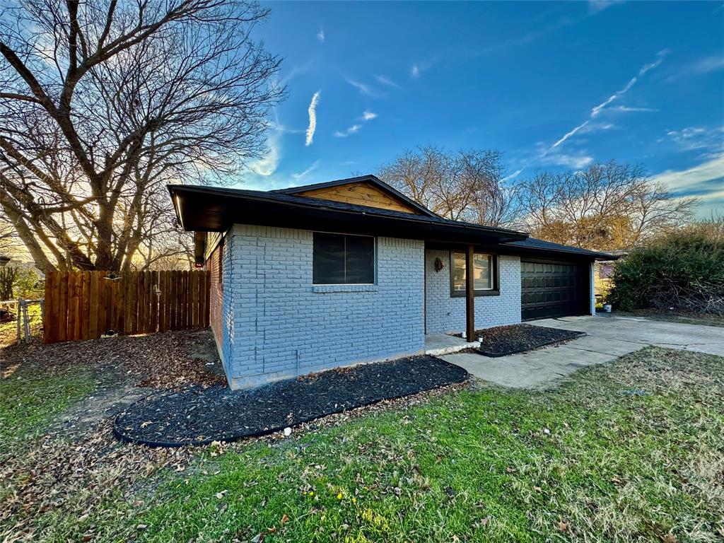 Owner-Finance available with downpayment. Contact Listing agent for more info. Seller to pay closing costs to include Seller paid title policy and lender paid appraisal fee with preferred partners and acceptable offer. Fully Renovated 3-Bedroom, 2-Bath Home with Modern Upgrades and Charming Character! Step into this beautifully updated home, perfect for first-time buyers or those looking for a turnkey opportunity! This 3-bedroom, 2-bath gem features an attached two-car garage and a sprawling covered patio that’s ideal for relaxing or entertaining. Inside, the entire home boasts luxury vinyl plank flooring and a fresh, modern aesthetic. The warm grey brick exterior, complemented by wood accents, black trim, and a brand-new in 2024 black composite shingle roof, creates stunning curb appeal. The oversized covered patio spans the entire back of the house, offering abundant outdoor living space. The interior shines with an open floor plan, featuring neutral tones, white trim, and brand-new finishes throughout. The redesigned kitchen includes custom cabinetry, stainless steel appliances, a wall mount oven, a drop-in gas cooktop, butcher block countertops, and a walk-in pantry. The shiplap accents add a touch of farmhouse charm. The layout offers three comfortable bedrooms, all with ceiling fans, and two fully renovated bathrooms. The primary suite includes a walk-in tile shower for a spa-like retreat. The backyard is spacious and ready for outdoor activities, gardening, or hosting guests, with partial privacy fencing for added comfort. Located in a desirable neighborhood close to schools and shopping, this home is move-in ready and waiting for its new owners. Bonus: All furniture is negotiable with an acceptable offer! Don’t wait—schedule your tour today and see why this home is the perfect place to make lasting memories! More photos coming soon!