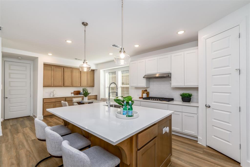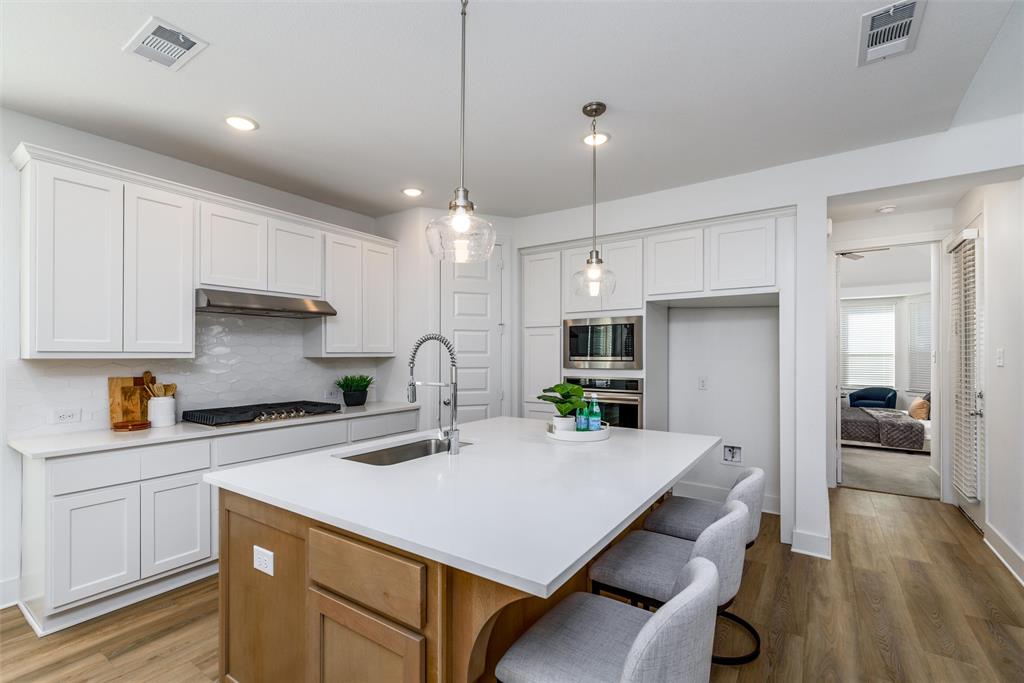 Light and bright flooring just adds to the natural reflection. Looking for natural light, say NO MORE! This home has lots of windows to let the light shine throughout. Upgrades Galore with all stainless steel appliances and the gourmet upgraded kitchen package that includes a gas 5 burner stove top and built in Kitchen Credenza with extra storage. Beautiful upgraded two tones cabinets. White quartz counter tops. All the bedrooms are oversized with a secondary room with an En-Suite full bathroom.