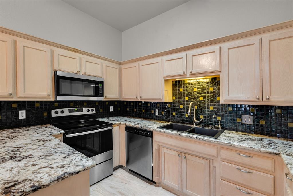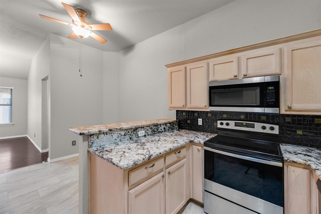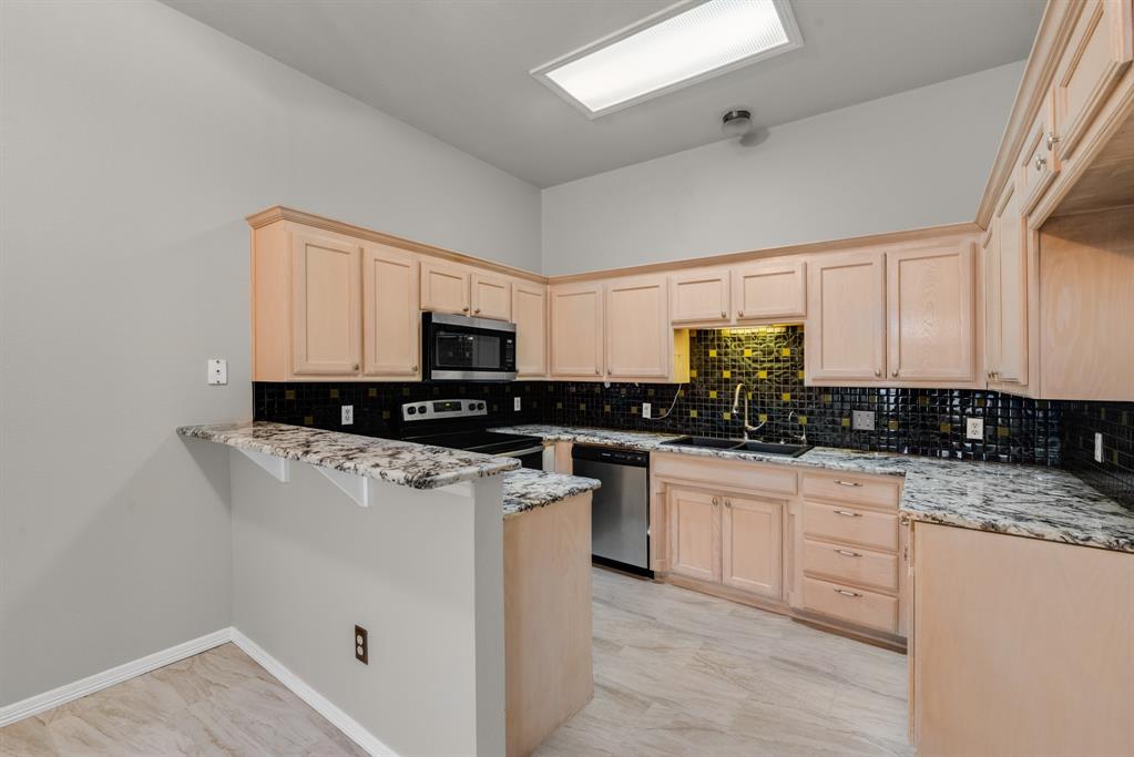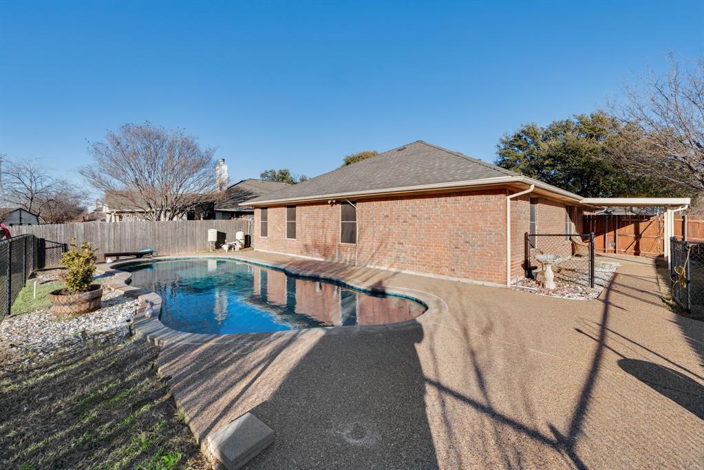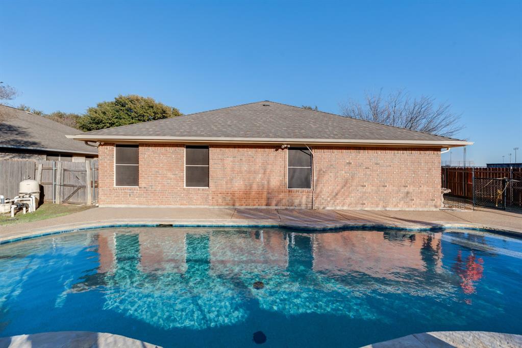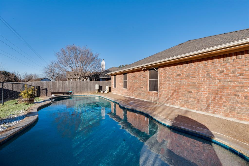 Beat the heat this summer with your new 3.2.2 and swimming pool! This home has a large living room with a gas fireplace, a flex room that could be a second living are or large dining room. Kitchen features granite countertop with peninsula countertop. New ceramic tile in the kitchen and dining area. Large primary bedroom with the ensuite including a garden tub and separate shower. All bedrooms have freshly steam cleaned carpets. A covered patio leads you to the backyard with an in-ground saltwater pool. 6 ft deep in the middle and 4 ft on the sides. Yard backs up to a green belt trail and is a corner lot. Conveniently located within walking distance to Saginaw HS and just minutes from great restaurants, shops and more! All new HVAC installed 2.15.2025