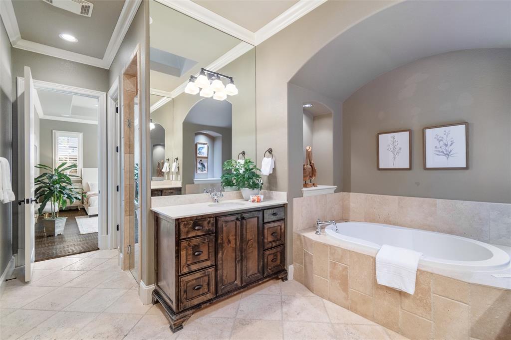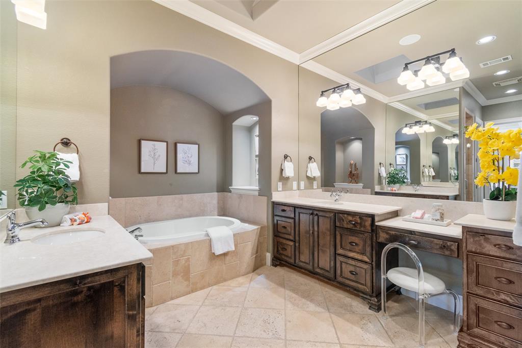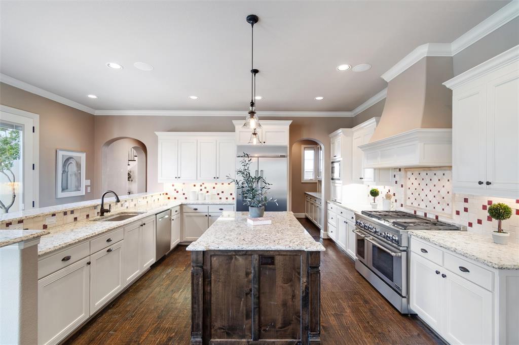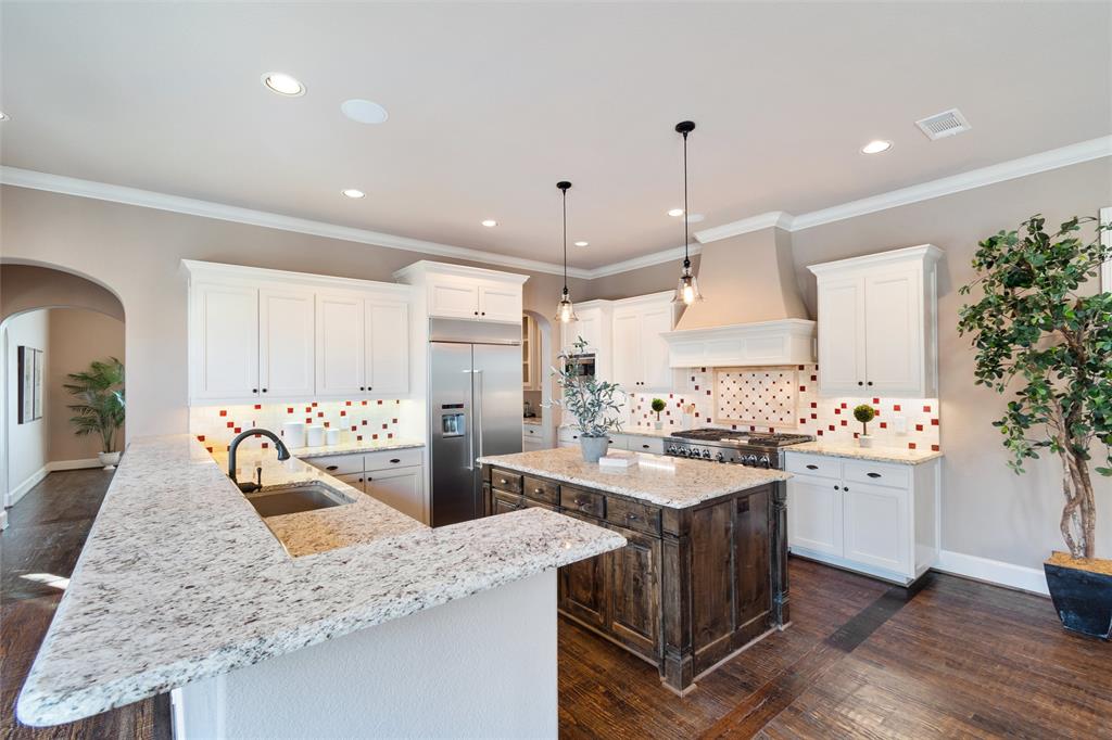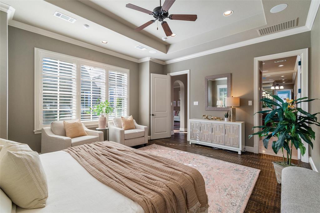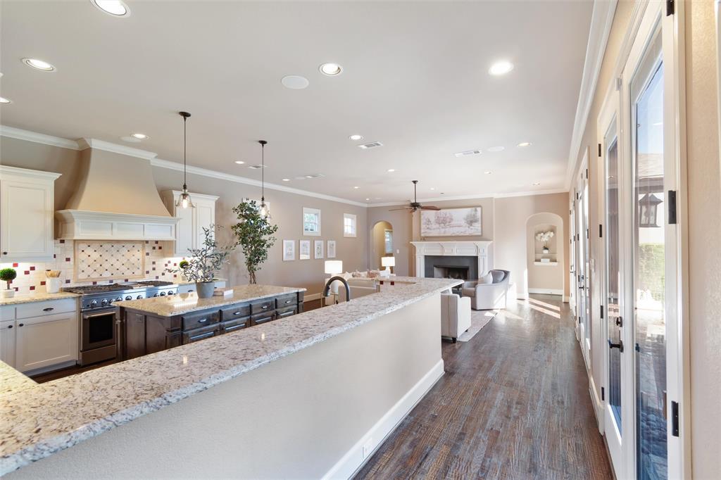 Welcome to this exquisite 3488 sqft Tuscan-style home, located on a prime corner lot in the Monticello neighborhood. Offering a perfect blend of Old World charm and modern luxury, this 2-story residence features 3 spacious bedrooms, 2.5 bathrooms, and two dedicated office spaces—ideal for today’s work-from-home lifestyle. As you step through the front door, you're greeted by the warmth and elegance of this beautifully crafted home. The main living area boasts soaring ceilings, arched doorways, and an open-concept layout, perfect for both casual living and entertaining. The gourmet kitchen is a chef's dream, featuring high-end stainless steel appliances, custom cabinetry, a large center island, and a sit up bar for those casual meals.