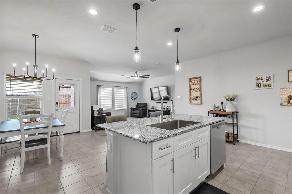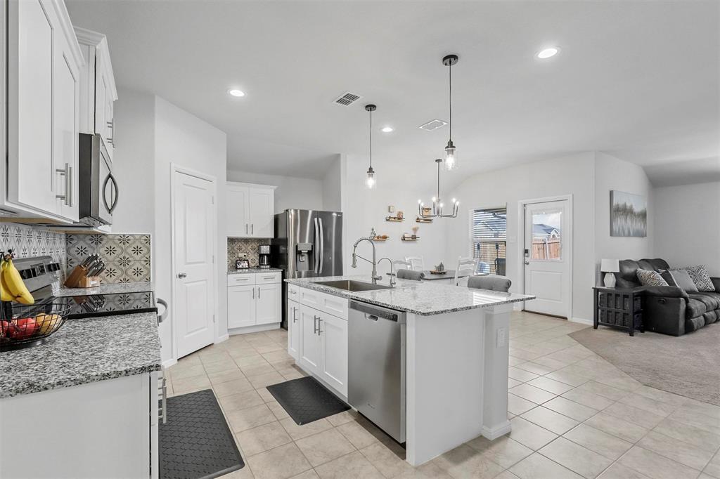 Discover this meticulously maintained home perfectly situated on an oversized corner lot. Having a picturesque front porch and a beautiful landscaped front yard. This home has an inviting and flowing floor plan from the remodeled entryway with a custom bench, gorgeous kitchen with upgraded back splash, decorative pendant lights above the large granite island with a custom farm sink, and a walk-in pantry. This gourmet kitchen opens to a spacious living room and dining area with lots of natural light. The primary bedroom is complete with ensuite bathroom, shower, upgraded faucets and spacious walk-in closet that overlooks the backyard. Split bedrooms with shared bath and 4th bedroom could be used as an office. Conveniently located to some of Cleburne's best shopping, dining, and nature trails with nearby Chisholm Trail Pkwy, Pat Cleburne Lake and State Park. Cleburne is known to be one of the top fishing spots in the region, some of the best mountain biking trails in Texas, and a thriving art scene.