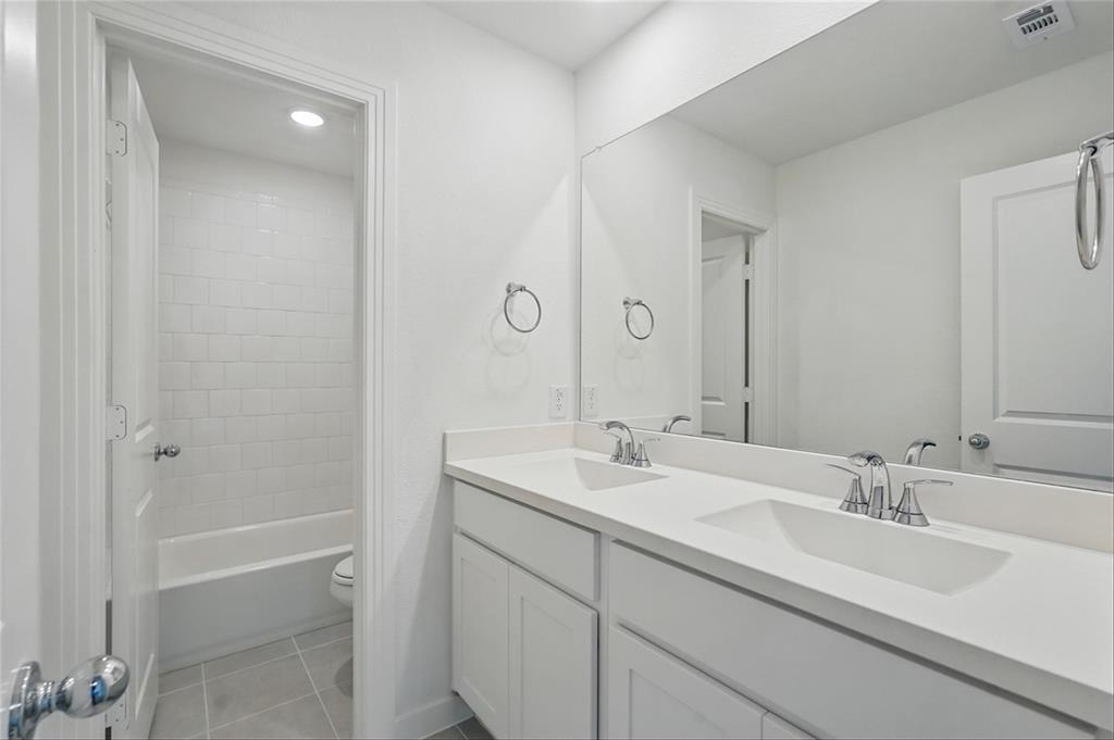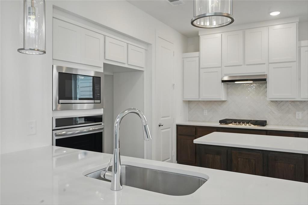 MLS# 20829855 - Built by Highland Homes - Ready Now! ~ 2 story home plan with front porch features open concept living with 2 living spaces. Kitchen features tile backsplash with gas cooktop, quartz countertops, kitchen island, pantry and separate dining space. First floor features guest bedroom and full bath. Upstairs features your Primary Suite with walk-in closet, oversized shower with dual sinks and additional bedrooms with full bath and expansive loft for entertaining. Covered patio overlooks backyard space!