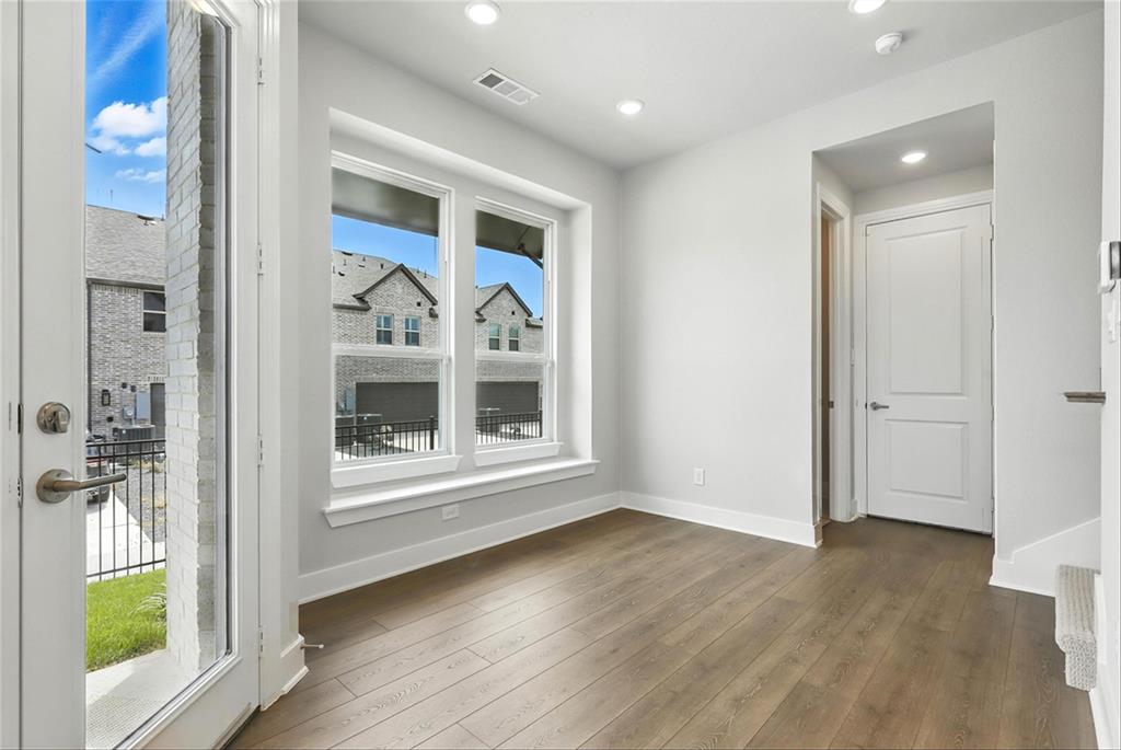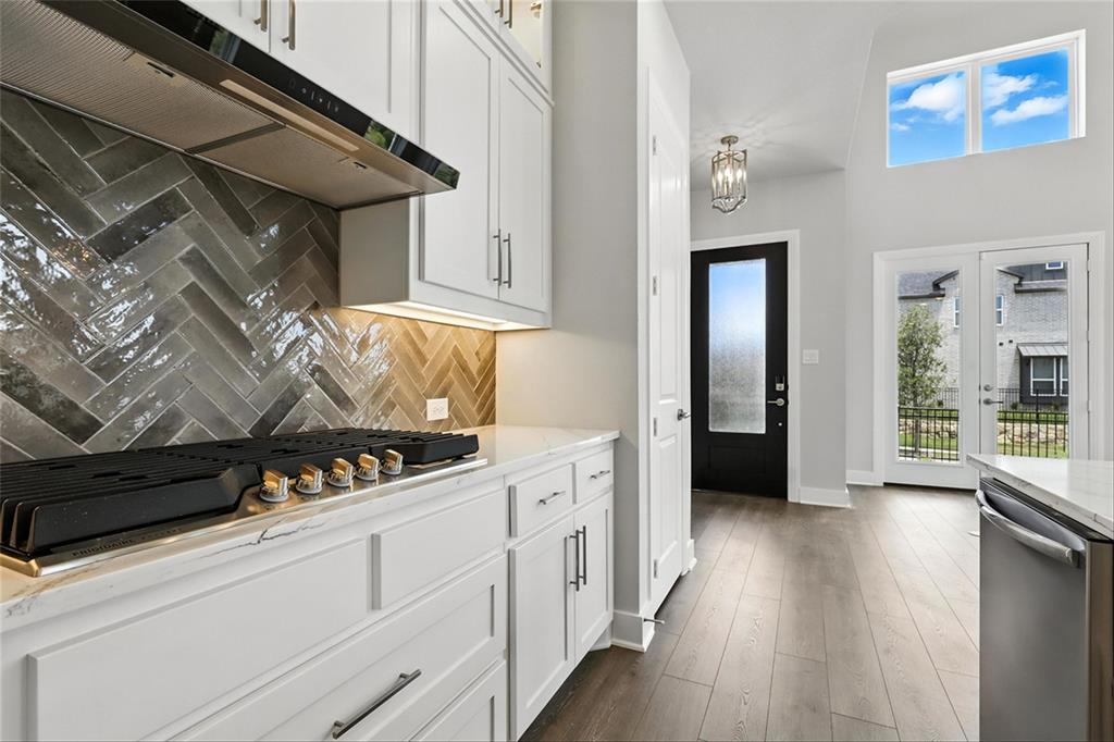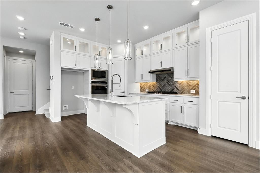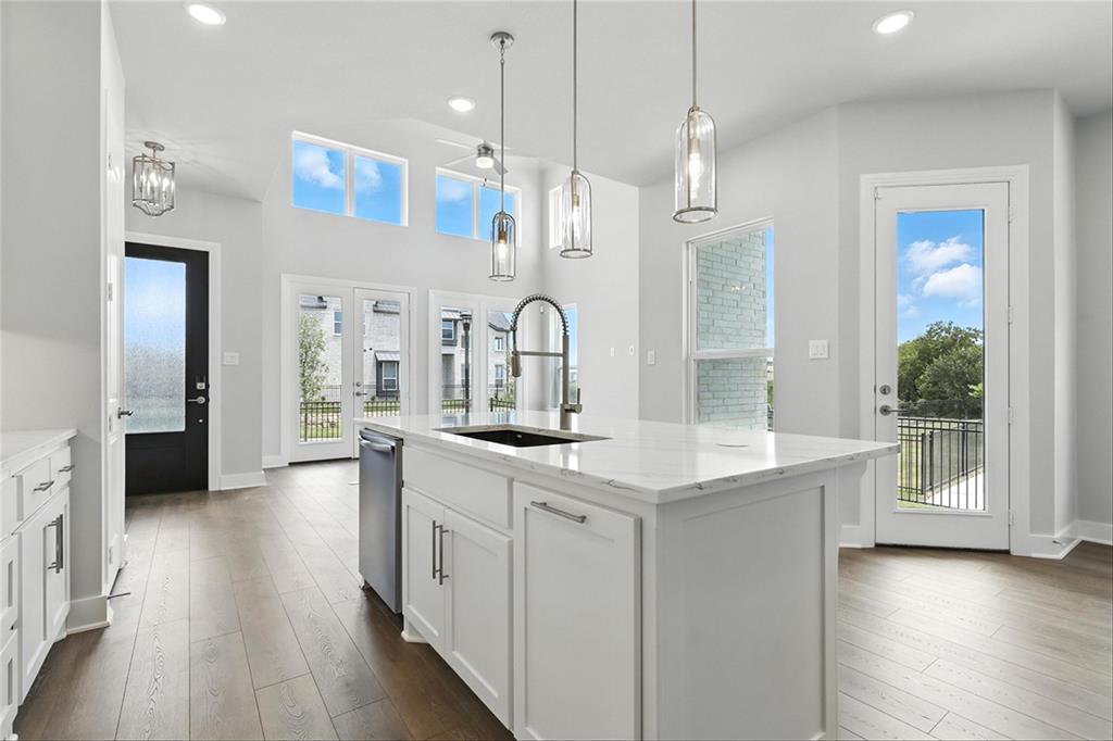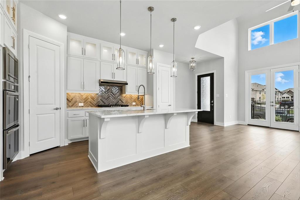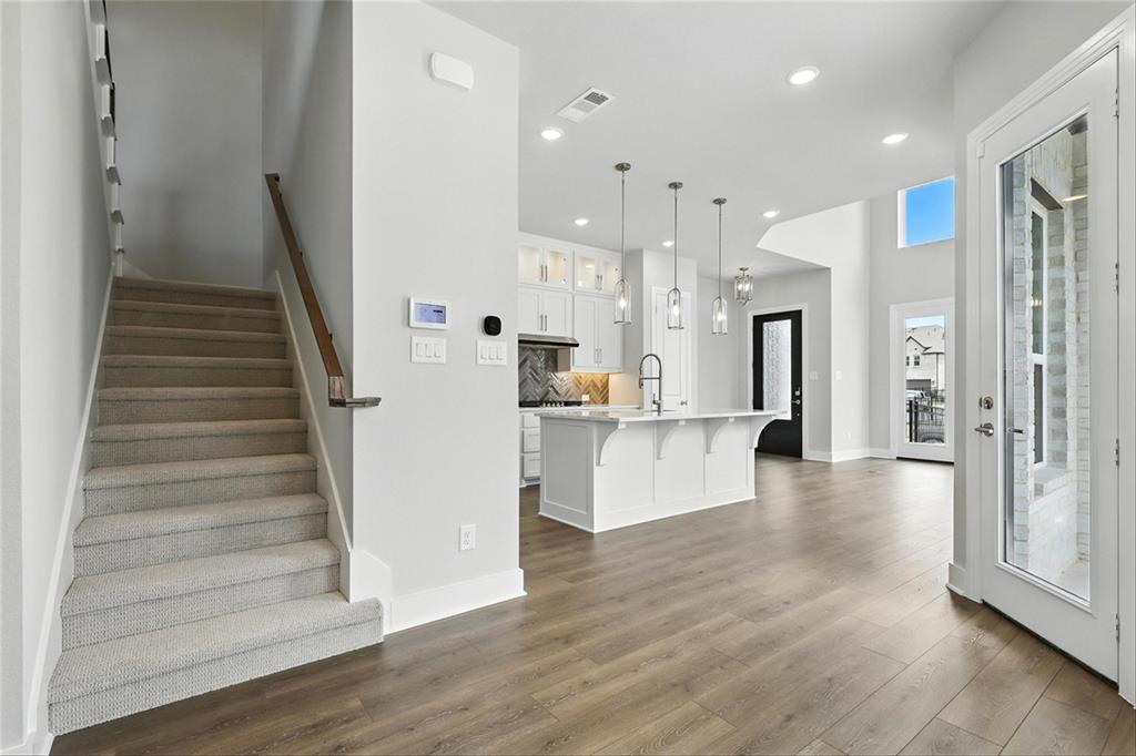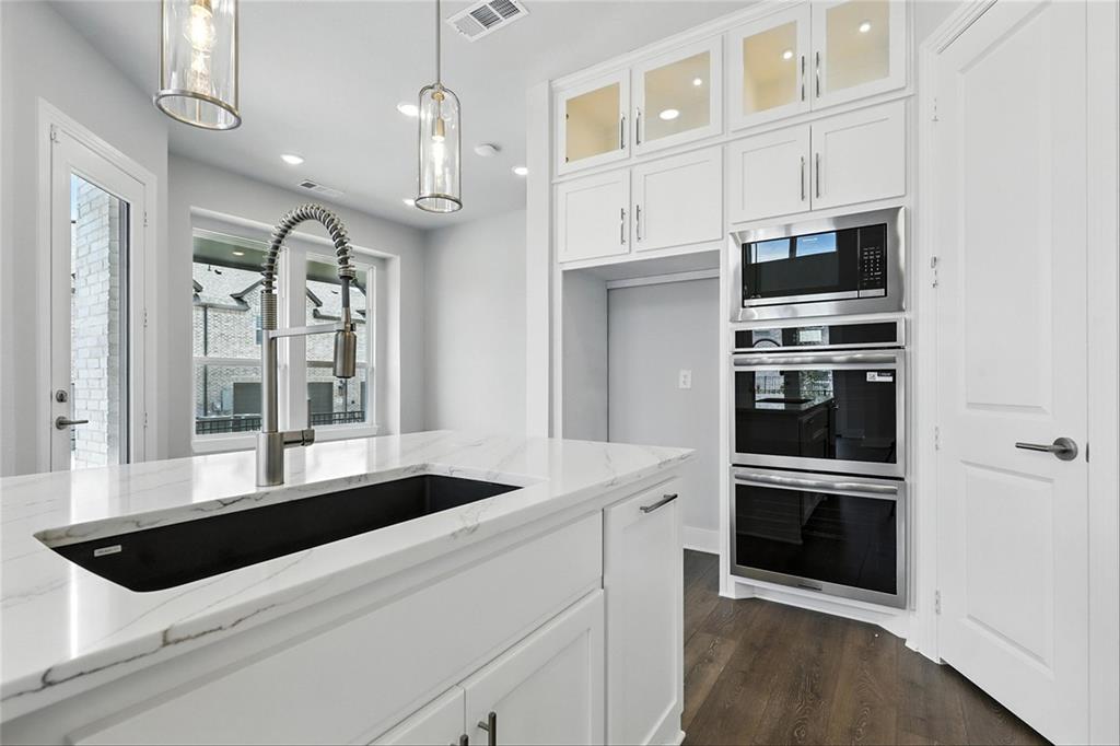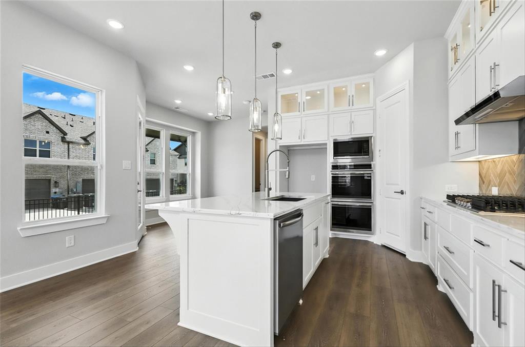 MLS# 20830296 - Built by Highland Homes - Ready Now! ~ This end unit is bathed in natural light, featuring tall ceilings, 8-foot doors and 6-inch baseboards on the first floor. The kitchen boasts elegant cabinets with quartz countertops, a gas cooktop, and spacious circular island to entertain, and a convenient wall mounted microwave oven. A walk-in pantry and additional upper glass cabinets with puck lights offer ample storage! Upstairs there are 3 bedrooms, 2 full bathrooms and a second living area with design upgrades throughout!!