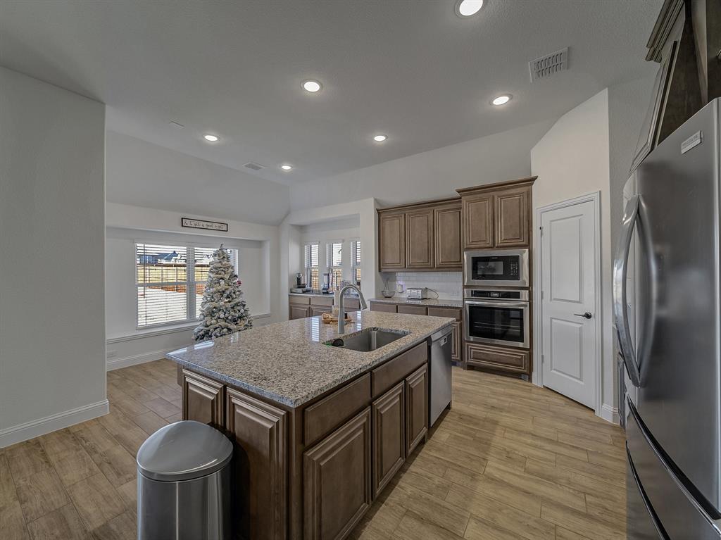 One of the standout features of this home is the extra-large upstairs living room complete with a built-in study desk, providing a versatile space for work, play, or relaxation. The upgraded flooring throughout the home enhances both durability and style, setting it apart from standard builder finishes. Step outside to enjoy the extended covered patio, a premium upgrade that offers additional outdoor living space, ideal for entertaining or unwinding in the Texas breeze. With this modern upgrades, spacious design and prime location in Godley, this home is truly a must-see!
