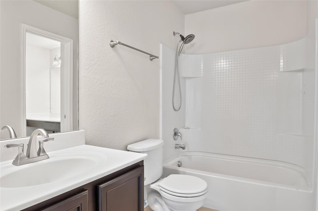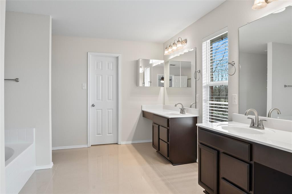 Updated home in Austin Landing! Recent improvements include fresh interior paint, decorative light fixtures, and a new kitchen farm sink with a gooseneck spray faucet. This spacious floor plan features a formal dining room with a butler’s area, ideal for a coffee or wine bar, plus a walk-in pantry. The eat-in kitchen boasts a double oven range, island, and adjoining breakfast nook. The family room offers a fireplace and views of the private backyard, perfect for entertaining. The main floor primary suite includes a private ensuite bath with dual sinks, a separate shower, and a walk-in closet. Upstairs, enjoy all new carpet throughout the oversized game room and additional living area, complete with built in cabinetry and a beverage fridge. A bonus second primary suite features an ensuite bath with dual vanities and a walk-in closet. Two additional bedrooms share a Jack-and-Jill bath. This bright and airy home offers comfortable living inside and out. The backyard features a fenced in yard with a covered patio and pergola. Additional highlights include a certified storm shelter, storage shed, and irrigation system. Retail, restaurants, and services are just minutes away! A must see.