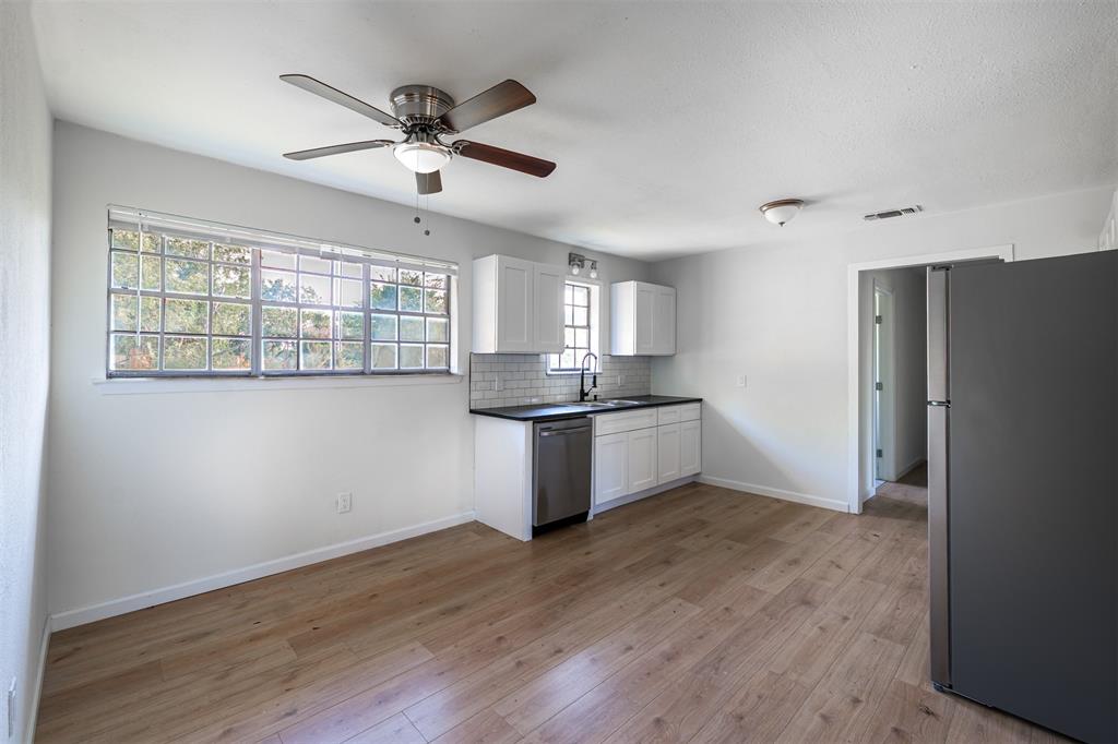 Step inside to discover a bright, airy interior with designer lighting, fresh finishes, and an inviting eat-in kitchen ideal for daily living or entertaining. The spacious living area flows seamlessly into the dining and kitchen spaces, while the private primary suite features its own full bath and generous closet space. Outside, enjoy a large backyard perfect for relaxing, entertaining, or stargazing on clear Texas nights. A 1-car garage and additional parking offer both convenience and storage, and you'll love being just minutes from downtown shops, restaurants, and community events. Buyer will need to obtain survey.